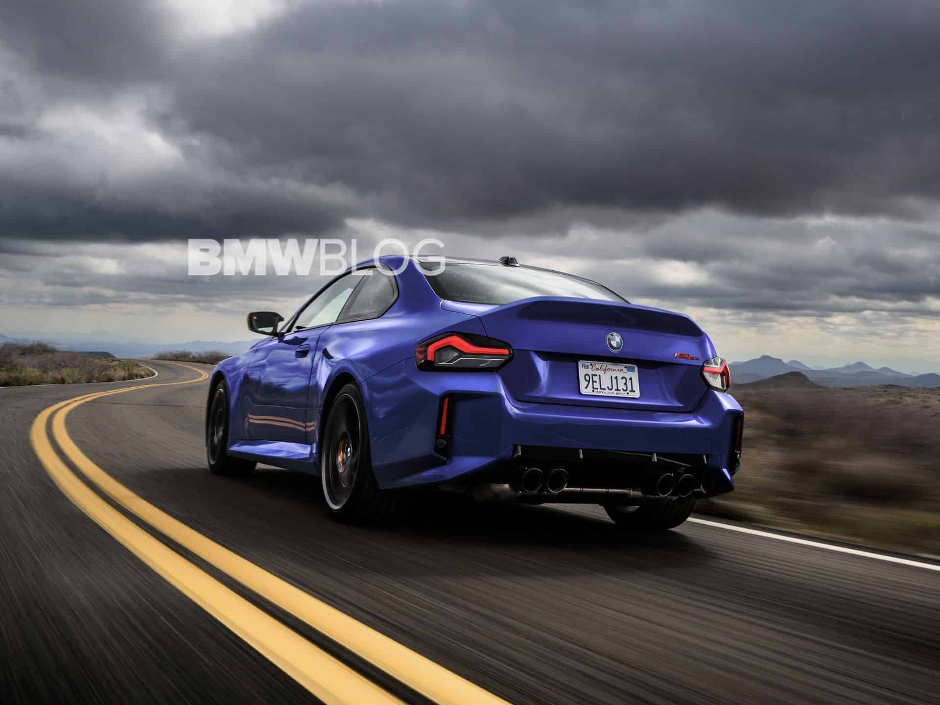 Echoing its bigger brother, the M4 CS, the hotter G87 will combine that special paint job with red accents. BMW did the same last year when it launched the M3 CS sedan. Other similarities will include yellow LED daytime running lights and a carbon fiber body kit. Beyond the look-at-me Velvet Blue color, the M2 CS will stand out thanks to a ducktail spoiler inherited from the 2022 M4 CSL. The latter’s trunk lid design was a homage to the M3 CSL (E46).