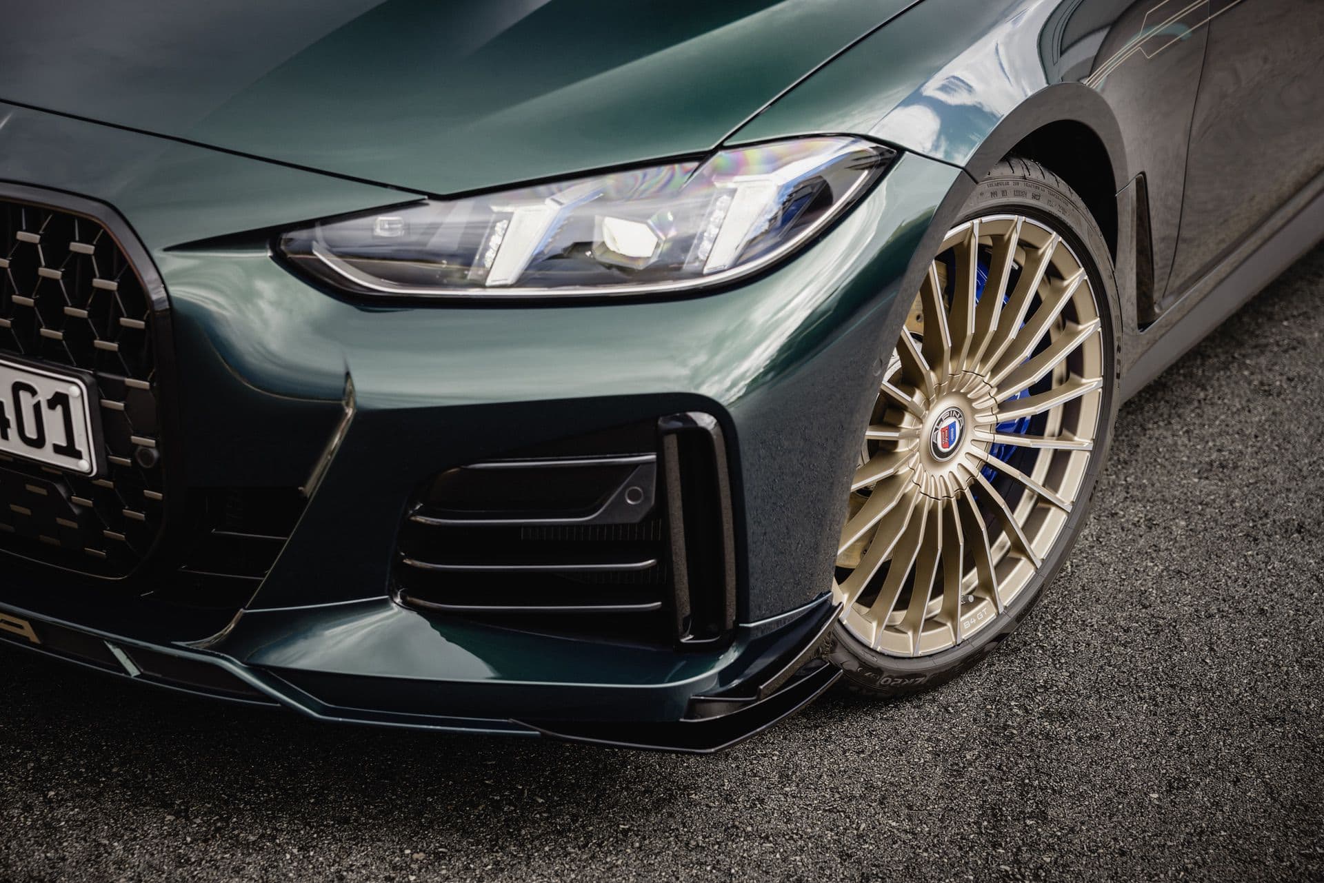 New images of the high-performance liftback from Buchloe show the B4 GT in the classic ALPINA Green finish. It’s a €1,950 option in Germany where the M4 GC substitute starts at €105,100. The classy five-door model rides on the timeless ALPINA Classic wheels. However, this 20-inch set has an Oro Tecnico hue exclusive to the GT. The same contrasting color was used for the lettering and the pinstripes. By the way, the side decals are included as standard but the car can be ordered without the retro-flavored graphics.