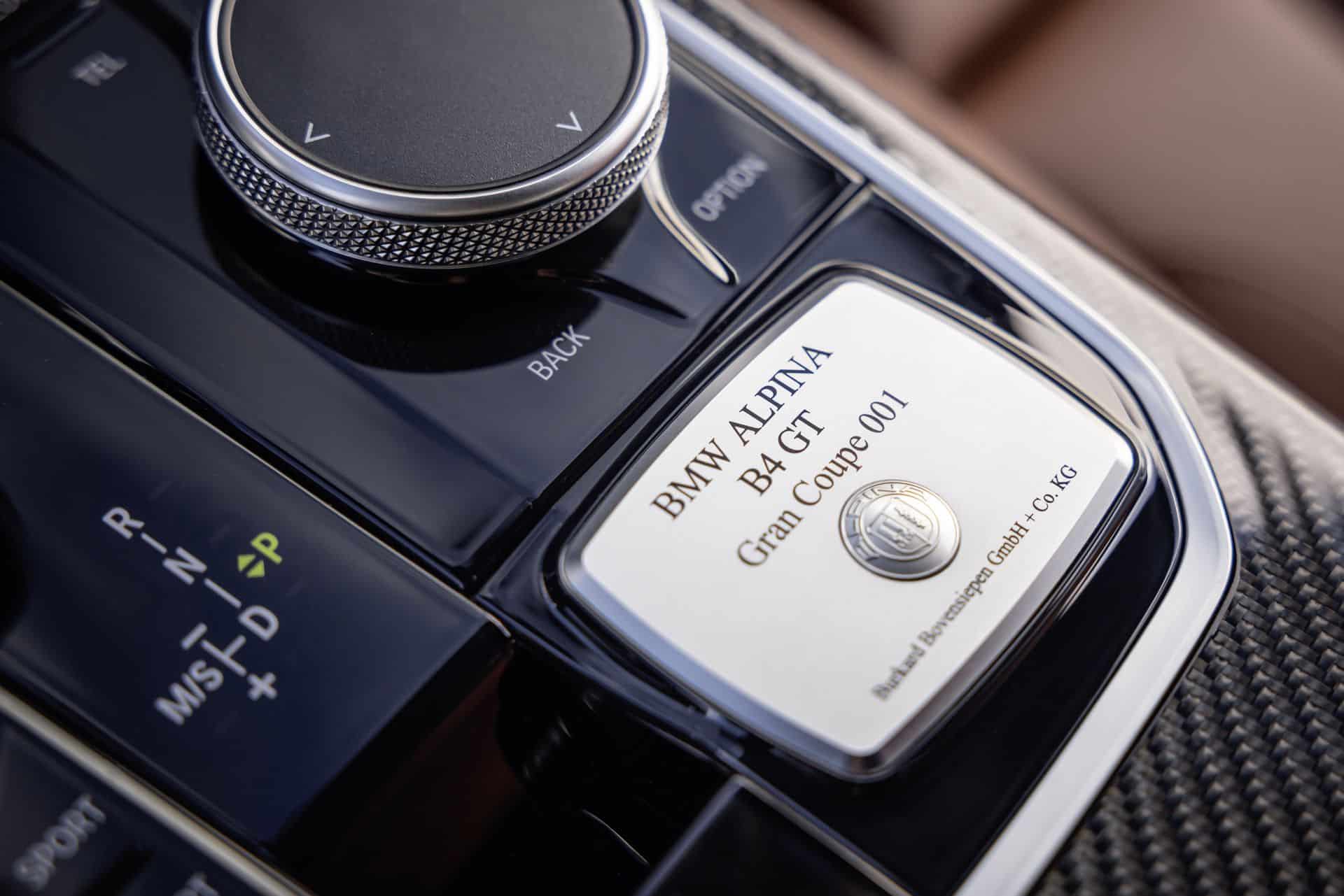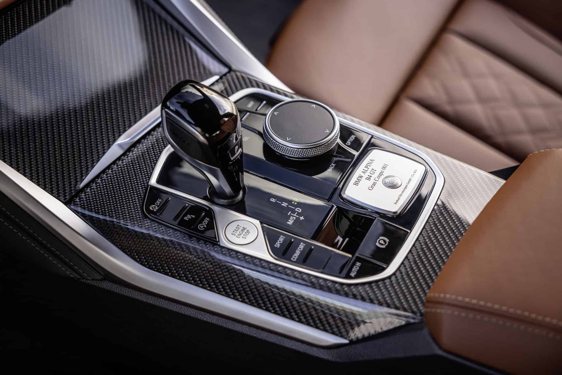 ALPINA waited for BMW to give the 4 Series Gran Coupe a Life Cycle Impulse before coming out with the B4 GT. It has the LCI’s sharper adaptive LED headlights with a matrix high beam while the taillights have laser tech with a 3D-like look. Not much has changed on the inside, where this car has the optional full Merino leather Tartufo upholstery. It’s a pricey €4,350 option since the upscale finish extends to the bottom of the dashboard.