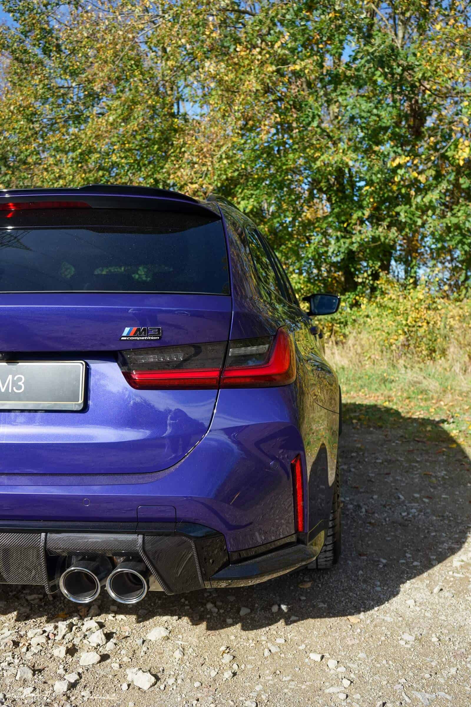 The LCI actually arrived unusually early, less than two years since production of the first-ever M3 wagon started in Munich. However, the decision to bring forward the super estate’s refresh makes sense since BMW wanted to align the Touring with the M3 Sedan. As with the G80, there are dozens of Individual hues available for its long-roof sibling. Velvet Blue is one of several color-shifting finishes, depending on how the light hits the car.