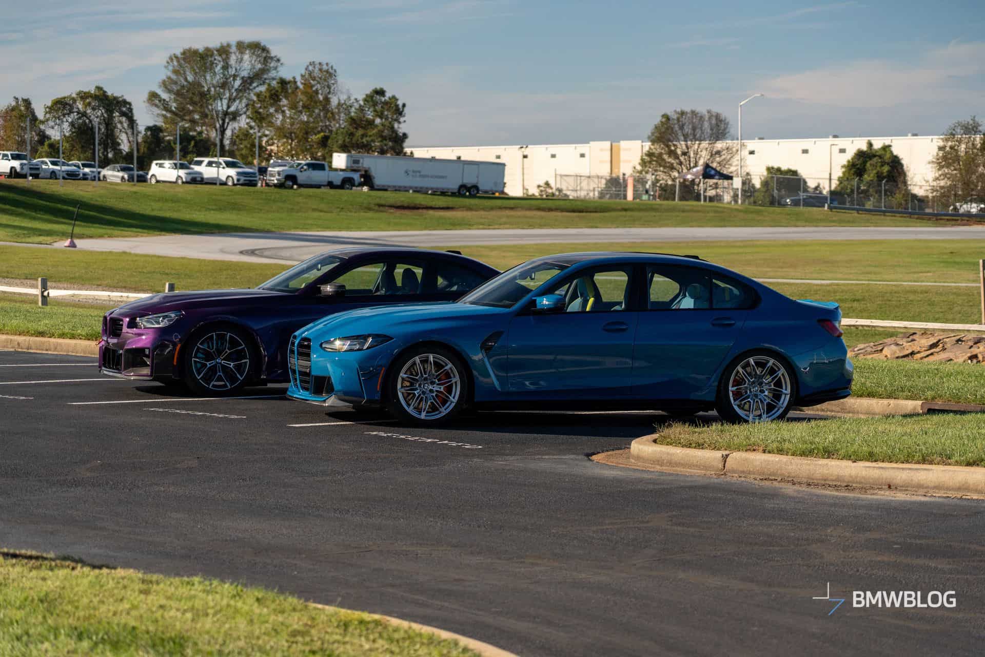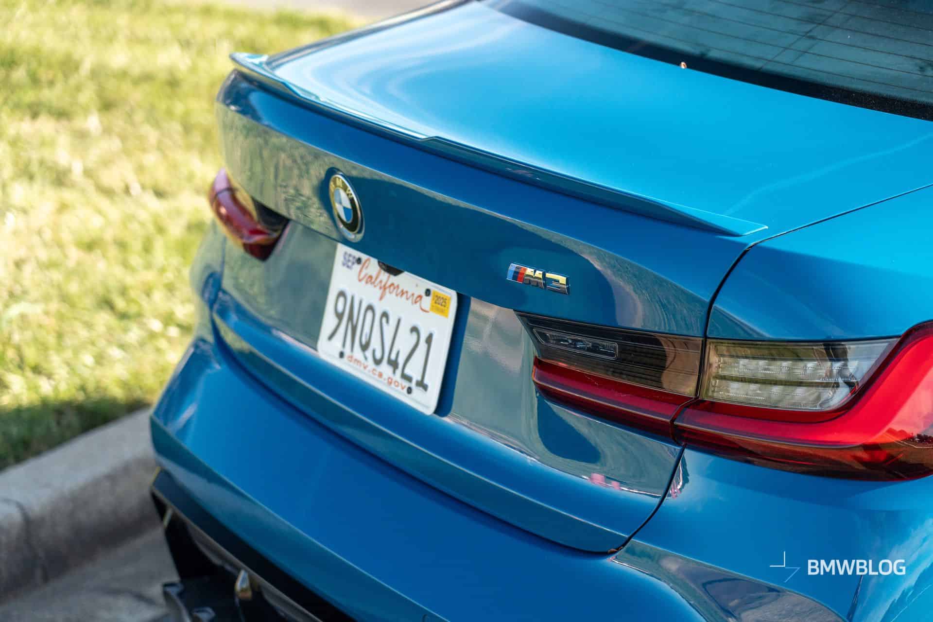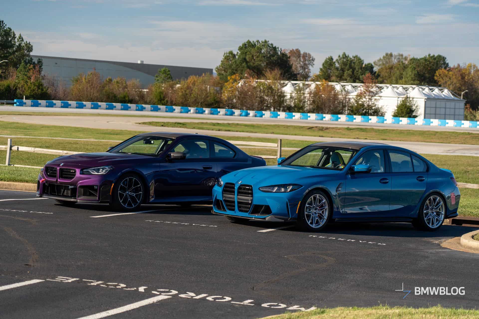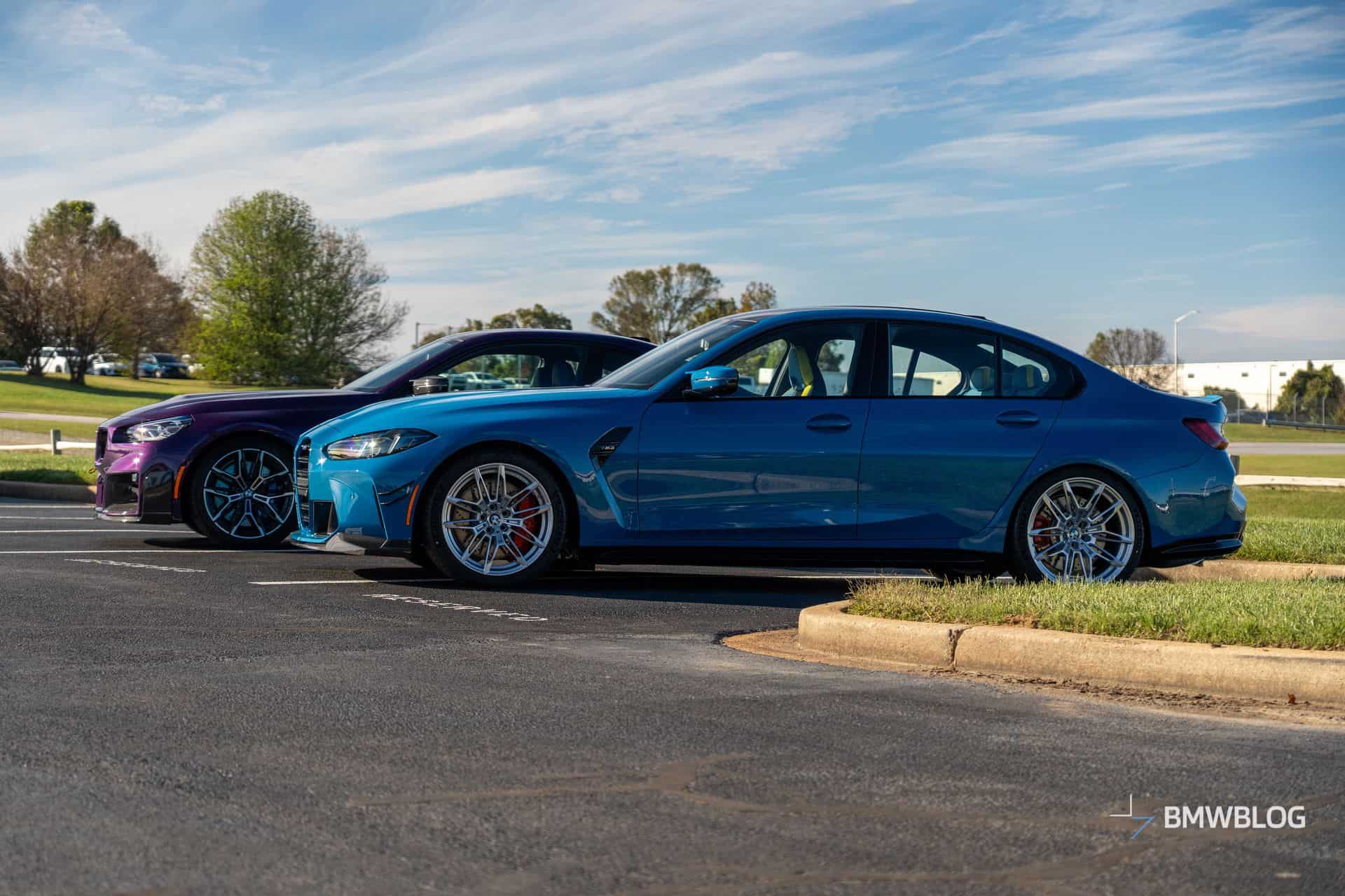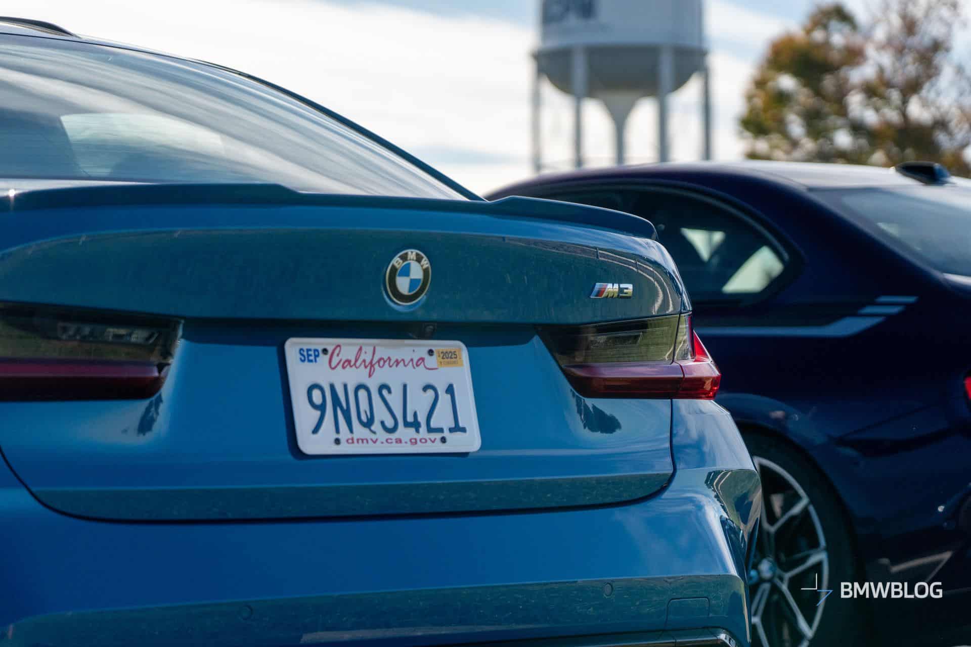 The 2025 model year brought changes for both the M2 and M3. The sedan’s Life Cycle Impulse is immediately noticeable given the new matrix LED adaptive headlights. The four-door model we had the privilege of shooting also had the silver wheels introduced with the LCI. Painted in the iconic Laguna Seca Blue, the six-speed G80 had the silver M3 badge at the back. On the Competition models, the logo is black with a silver contour – as seen on the M2 sitting next to it.
