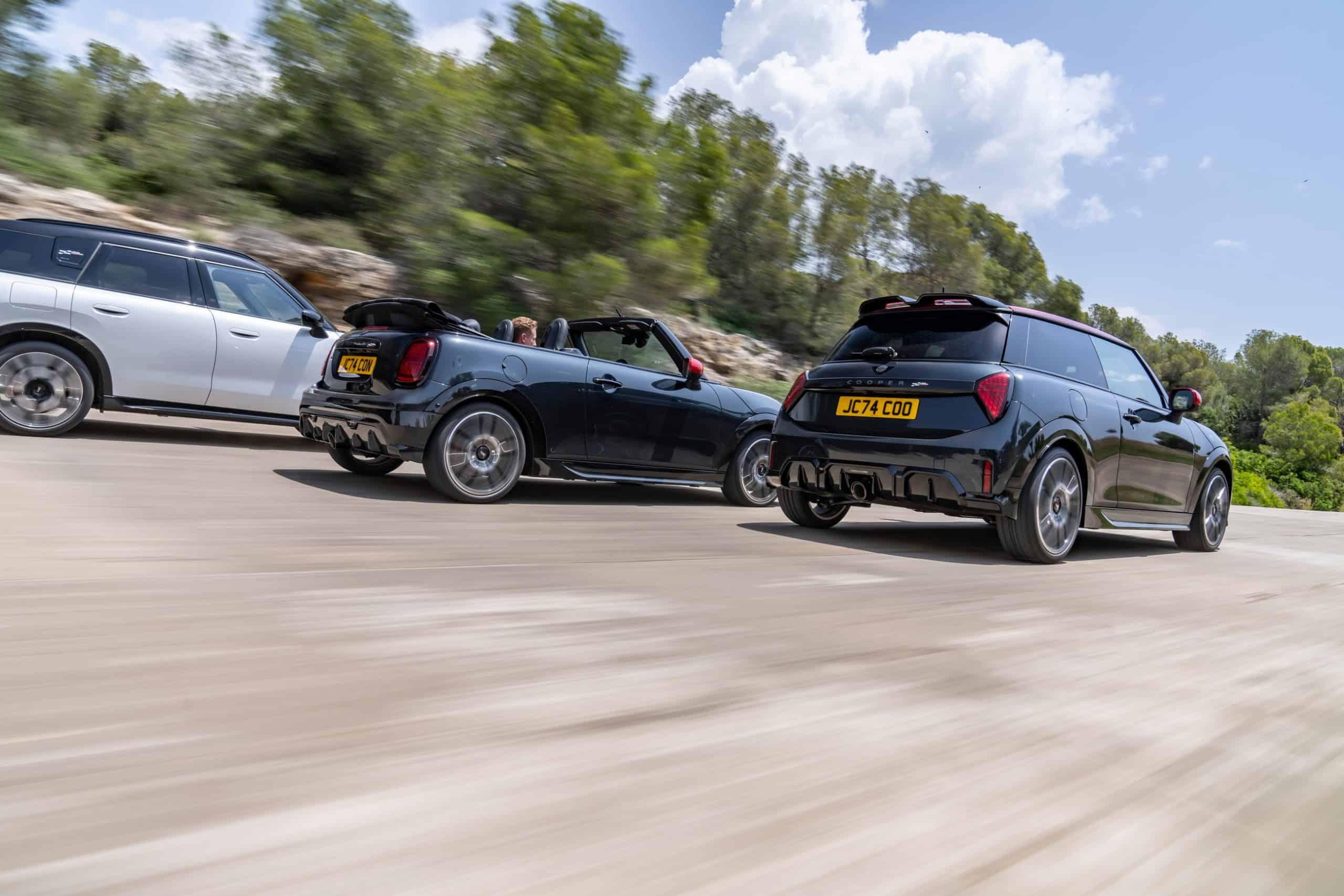 For the first time in the history of the JCW badge, you can get a fully electric model. Actually, make those two: the John Cooper Works Electric (J01) and the John Cooper Works Aceman (J05). These are offered alongside three cars powered by combustion engines: the John Cooper Works (F66), the John Cooper Works Convertible (F67), and the John Cooper Works Countryman ALL4 (U25).