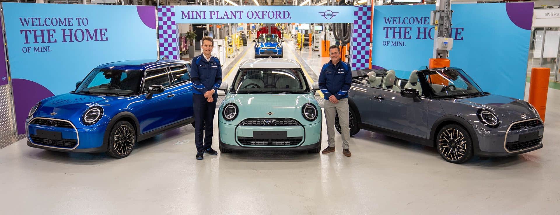This return to Oxford is a team effort. The new MINI Convertible is built with components from two other BMW Group plants in the UK. Plant Swindon provides body pressings and sub-assemblies, while Plant Hams Hall produces its four-cylinder petrol engines. Oxford brings it all together with body shell production, paint, and final assembly. In these images, you can see the first cars being rolled off the production line.