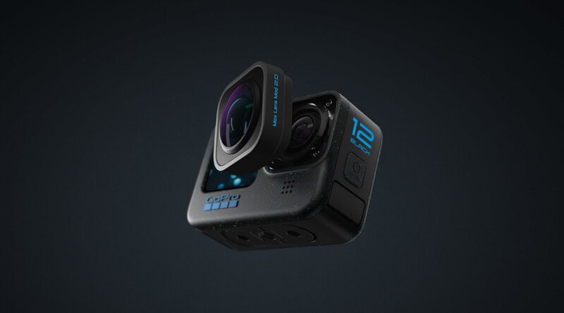 The GoPro Hero12 Black is a rugged action camera known for its durability and advanced features. It boasts a 1/1.9-inch sensor capable of capturing 5.3K video at 60 frames per second and 4K at 120 frames per second. The camera introduces HDR (High Dynamic Range) for both video and photos, delivering vivid imagery. With HyperSmooth 6.0 video stabilization and a 177° field of view when paired with the Max Lens Mod 2.0, it ensures ultra-wide, stable footage. The redesigned power management system offers improved thermal performance and up to twice the runtime compared to previous models.
