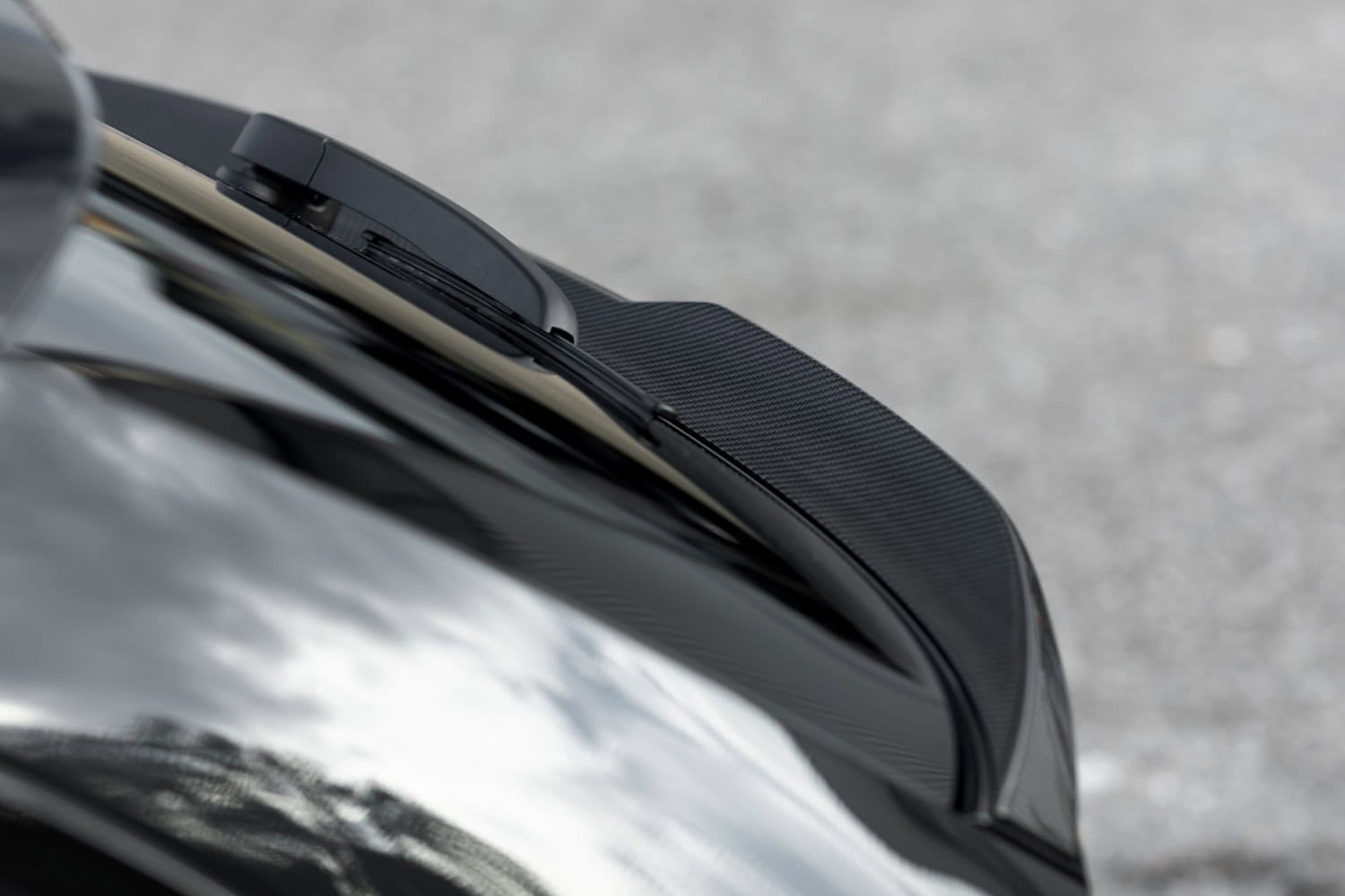 You can imagine that squeezing so much power from the six-cylinder engine wasn’t done with just a simple ECU remap. The menacing wagon now has forged pistons and connecting rods, plus carbon intake. Manhart gave the M3 a beefier intercooler and a stainless-steel exhaust along with making changes in other areas. Examples include an adjustable coilover suspension and a carbon strut brace to stiffen up the chassis.