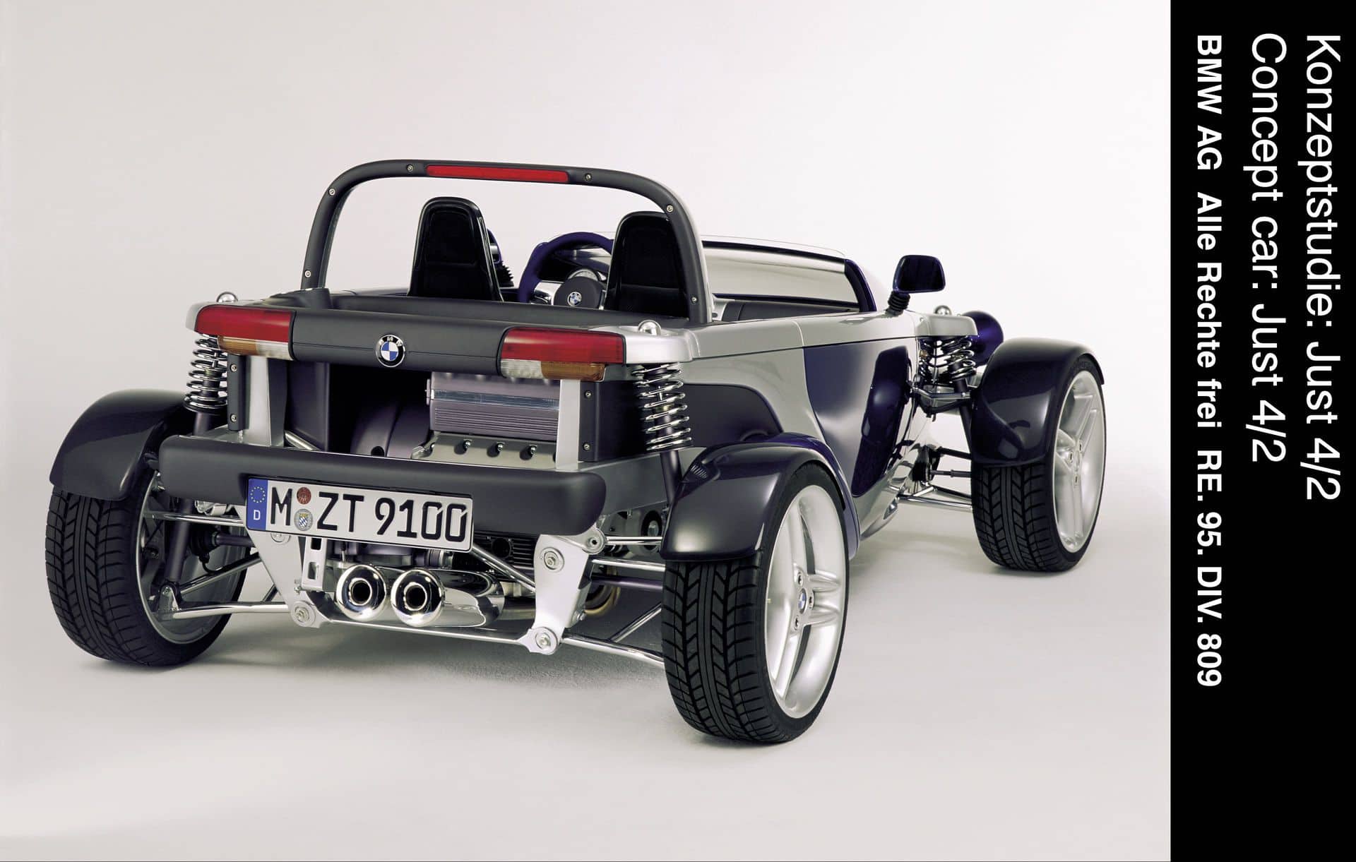 The Just 4/2’s radical design was the result of an internal design competition. Designer Robert Powell, part of BMW M-Technik, drew inspiration from the Caterham Seven and its limited luxuries. Despite merely a concept, it went through most of the steps that a regular production model would – so, the concept was clay modeled and even crash simulated. Total assembly time was just 12 weeks and the car even featured street-legal lights and bumpers.