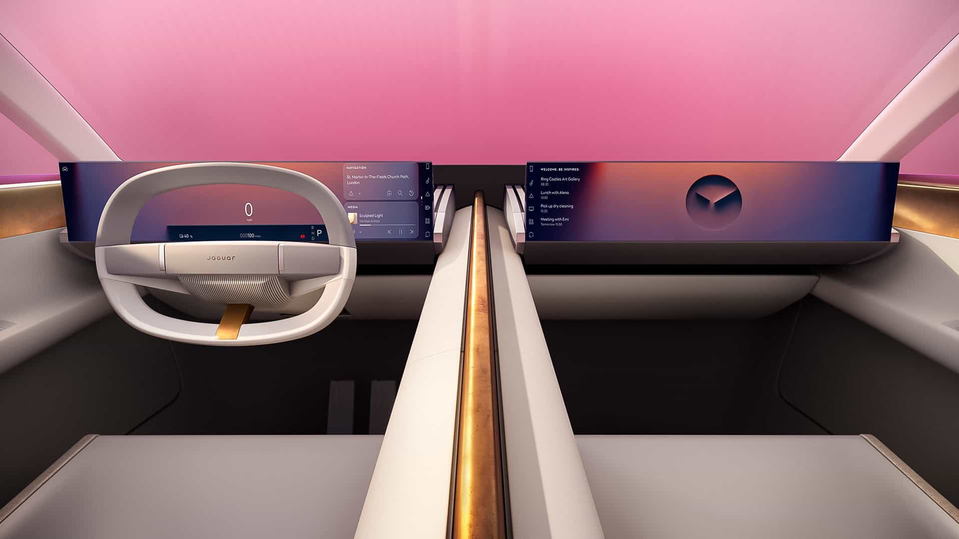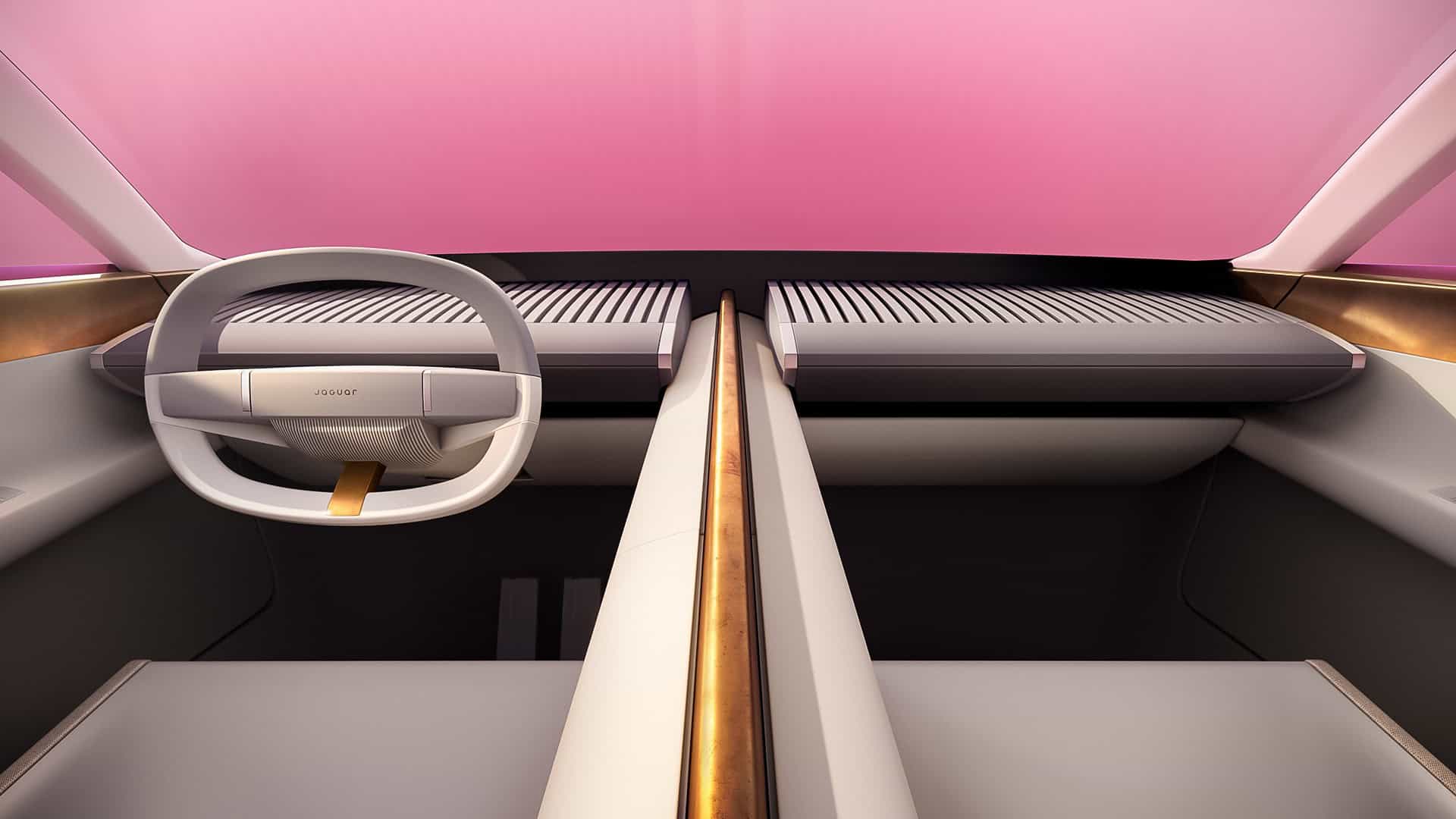 In keeping with EV design trends, the concept embraces minimalism with smooth exterior surfaces and a simplified cabin. Even the iconic leaping cat has been turned into a far more discreet motif, with a fresh Jaguar script taking its place front and rear. If it hadn’t been for the instantly recognizable logo, we honestly would’ve had a hard time identifying the Type 00 as a Jaguar.