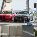 The Design Study in motion. This is one of the 150 G82 M4 Competition x Kith cars, sitting right next to the genesis of the project, Fieg’s Cinnabar Red M4. The Frozen Black paint was one of three choices – Frozen Dark Silver and Frozen Brilliant White were the other two – and hides a twin-turbo inline-six under the hood producing 510 horsepower. Atop the carbon fiber roof panel is a large Kith motorsport-inspired graphic.