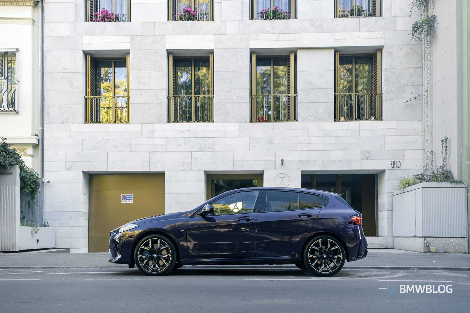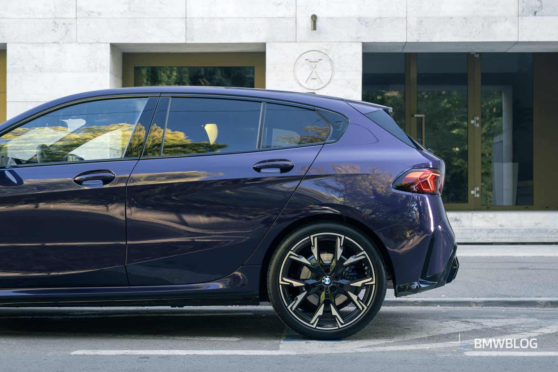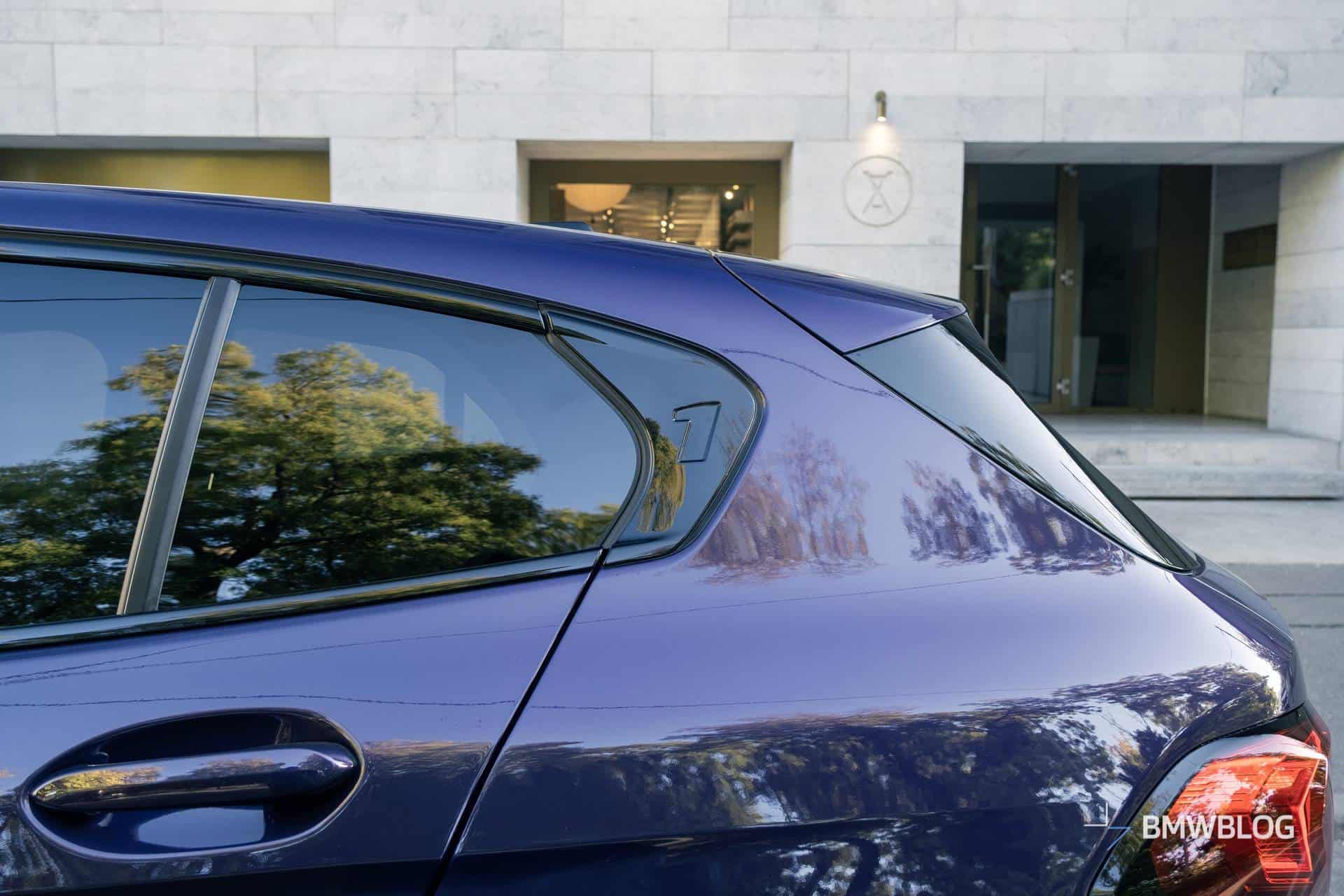 From the side, it looks almost identical to the F40, except for the new wheel designs and the new front and rear sections. You can also see that the grille appears to be slanted forward slightly, giving the car a slight shark nose look. Like all new BMWs, it has the model series (in this case 1) stamped into a piece of plastic trim on the C-pillar, which is subtle, but it also makes the car look a bit more special.