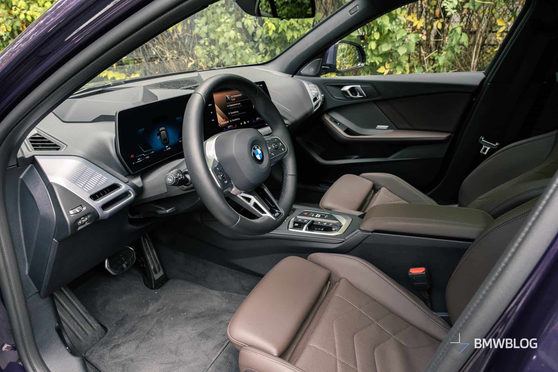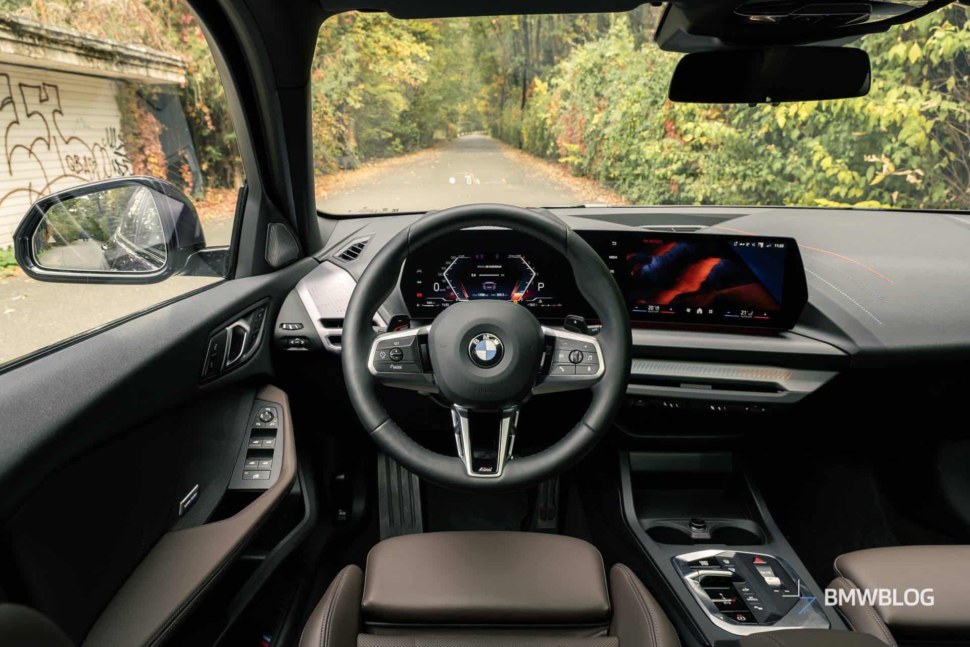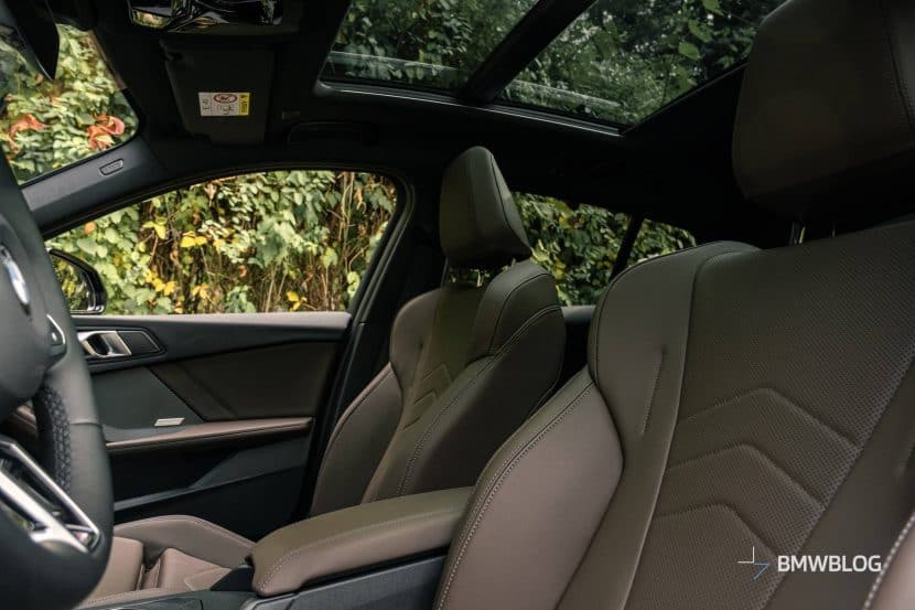 You can’t get real leather in the 1 Series anymore. Base cars have fabric seats with a material partly made out of recycled plastics. Higher trim level cars get Veganza faux leather upholstery, which is what my tester had, and it’s about as close to real leather as you can get without harming animals. The same material also covers the steering wheel, and it feels great there too—let’s see how it looks after 100,000 miles, though, and how well it handles wear.