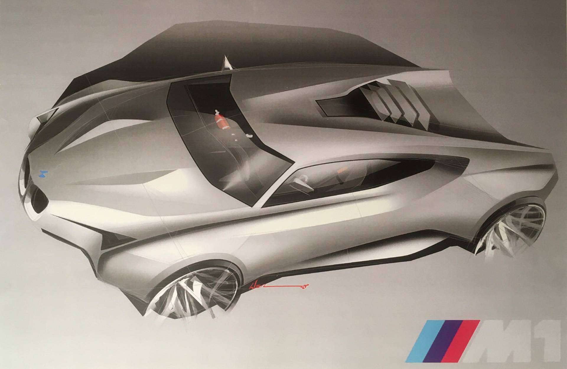 An unseen design sketch of an abandoned mid-engine supercar appears in a new video from Joe Achilles. The Youtuber had the opportunity to chat with Steve Saxty about his “BMW by Design” book. At one point, we get to see this flagship performance car sketched back in 1988. Japanese designer Joji Nagashima worked on “one of the many M1s that never happened,” according to the book’s author.