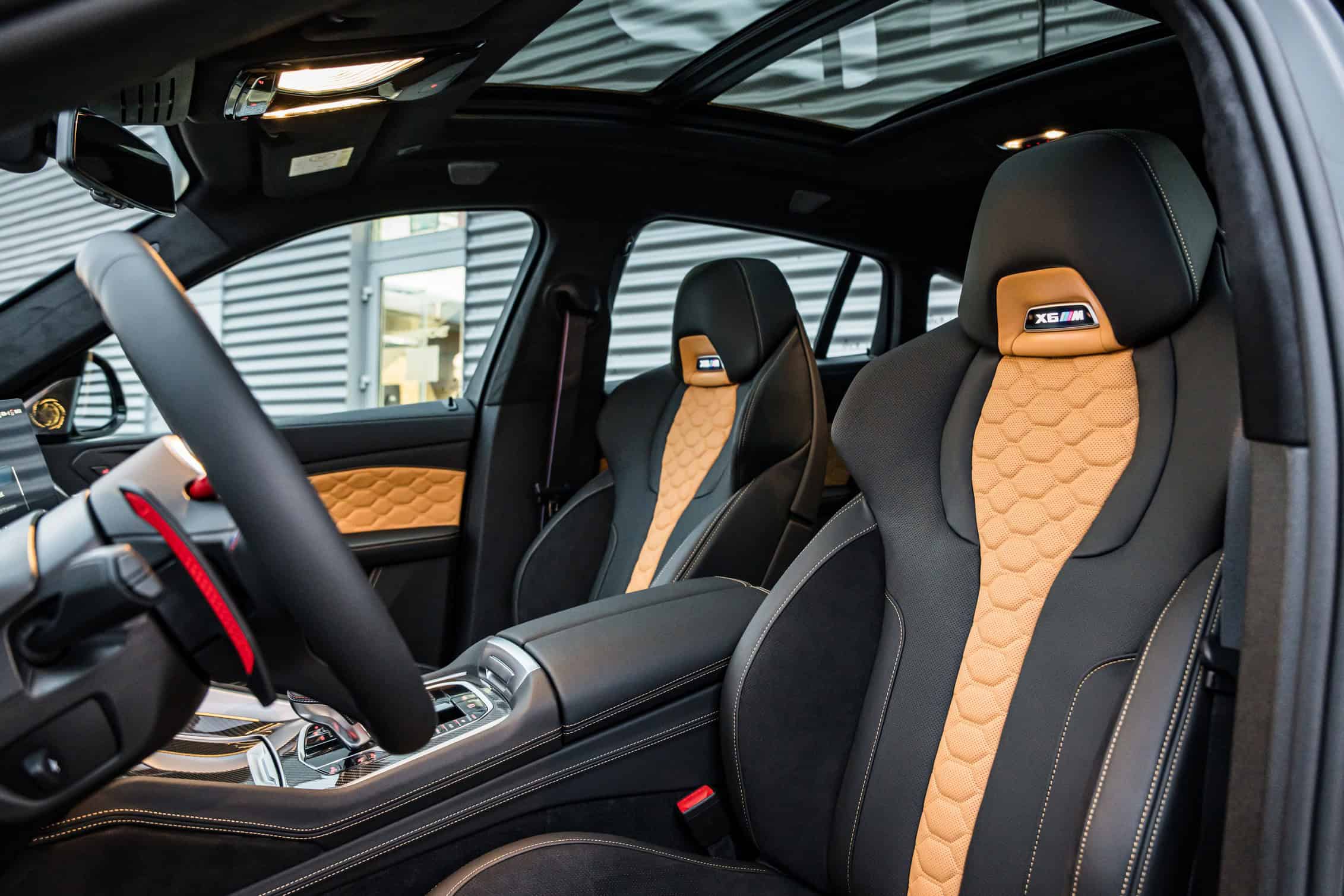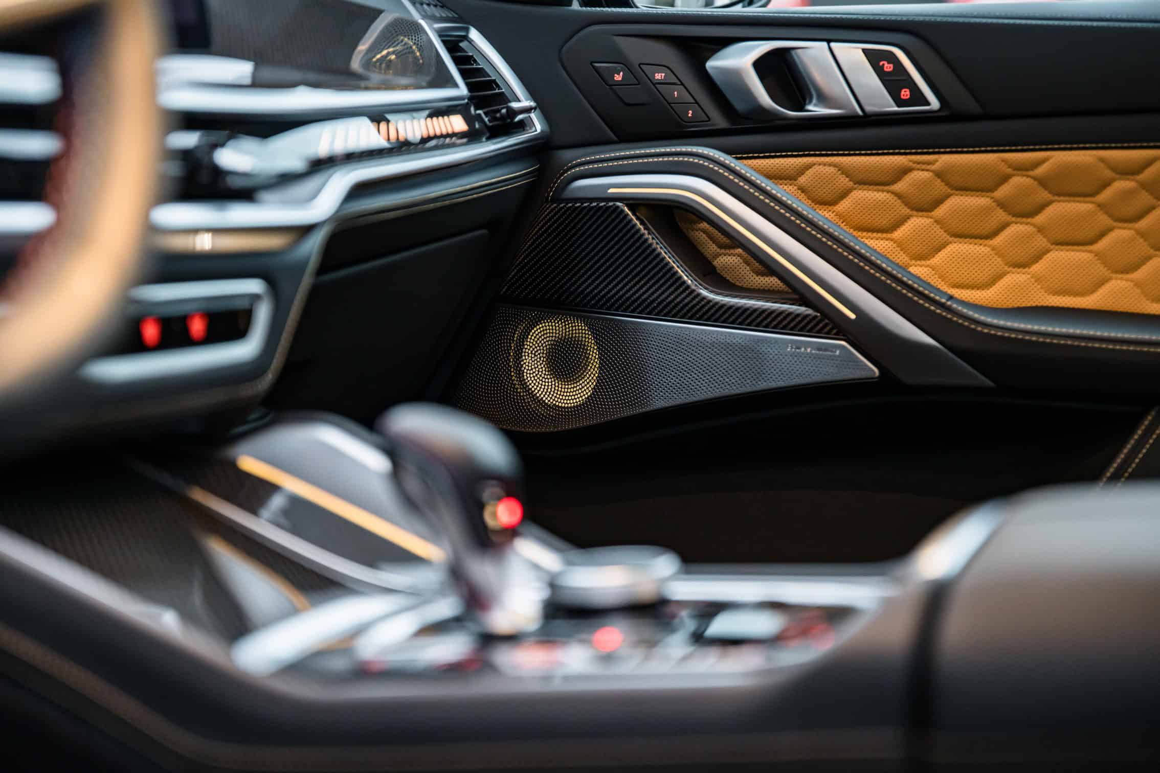 Notable upgrades include a carbon fiber air intake and a quad-pipe stainless steel exhaust system. The X5 M and X6 M can be fitted with sportier springs or a coilover suspension, both developed in-house. If you opt for the more sophisticated setup, you can adjust the stiffness of the compression and rebound damping. You can also change the ride height.