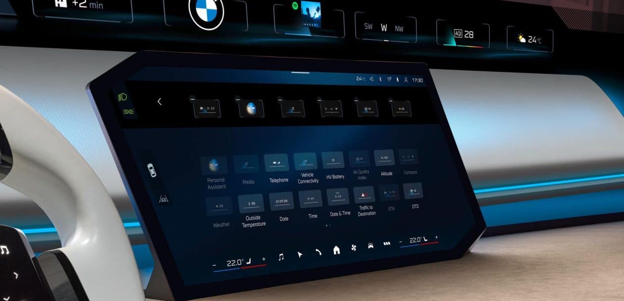 In the video, Christian Bauer walks us through some of the most impressive parts of iDrive X. He starts by explaining that iDrive X relies on four key components: the Panoramic Vision Display, the central display, the 3D head-up display, and the steering wheel. Bauer dwells first on the central display. He emphasizes that it’s not a form-following-function affair – or the other way around. It’s canted forward, to ease driver engagement, and just the right size – no tablets here. From the dimensions of the screen – intentionally “dynamically” shaped – to the size of the icons and typeface, BMW has paid attention to every detail, according to Bauer.
