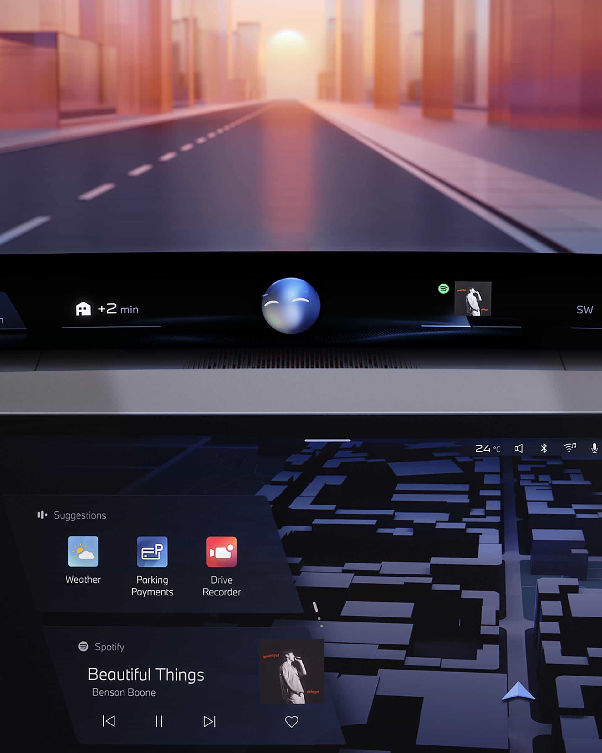 As the adjacent images show, cars with iDrive X will not be limited to the central screen. An upper-mounted projection stretching from pillar to pillar will be standard, and a 3D head-up display will also be offered in the driver’s line of sight. Despite the obvious focus on screens, not all controls will be integrated. Accessing some functions will be done through the usual stalks and haptic buttons/switches.