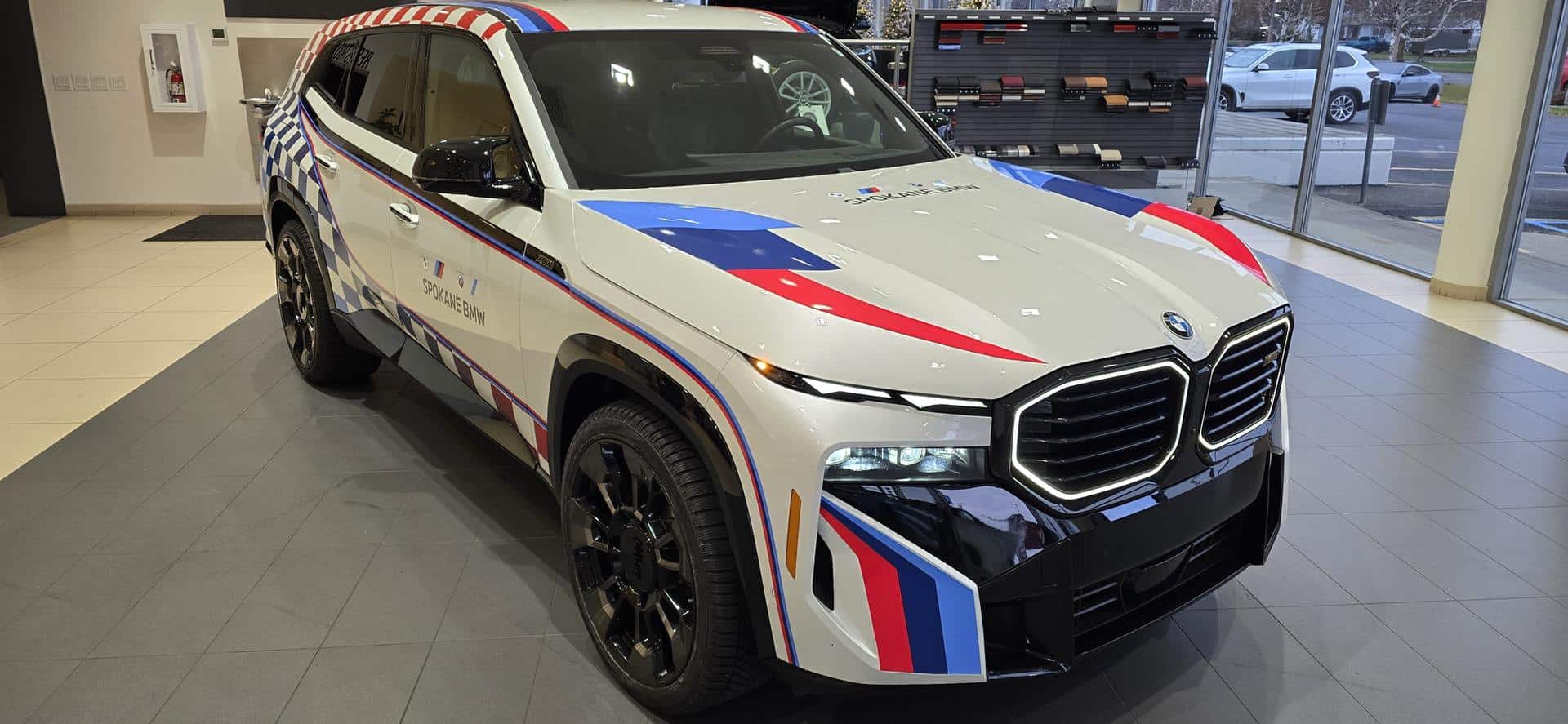 Ostentatious? Outrageous? Shameless? “Yes, to all” will be the answer you get from Chris Marino at Spokane BMW, in reference to a BMW XM he has commissioned in a truly unique BMW Motorsports livery-wrap. It’s fair to say the XM has been a lightning rod for automotive journalists and with good reason. Its stark, angular, and somewhat jarring design has sparked divided opinions among both customers and critics. With its massive, illuminated, louvered grilles and a rear design missing the roundel in its usual spot, the XM stands out as one of the most distinct SAVs BMW has ever created.