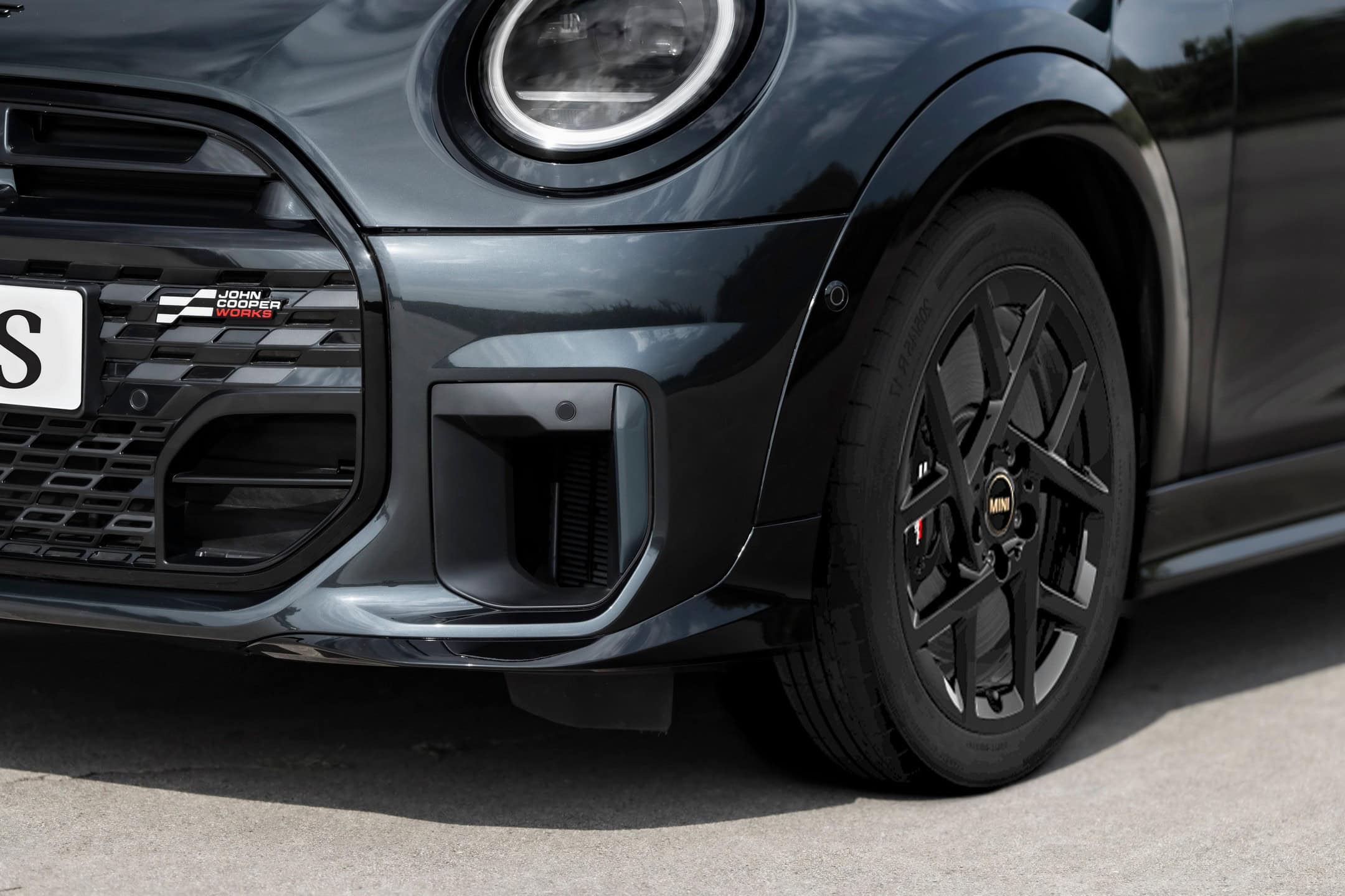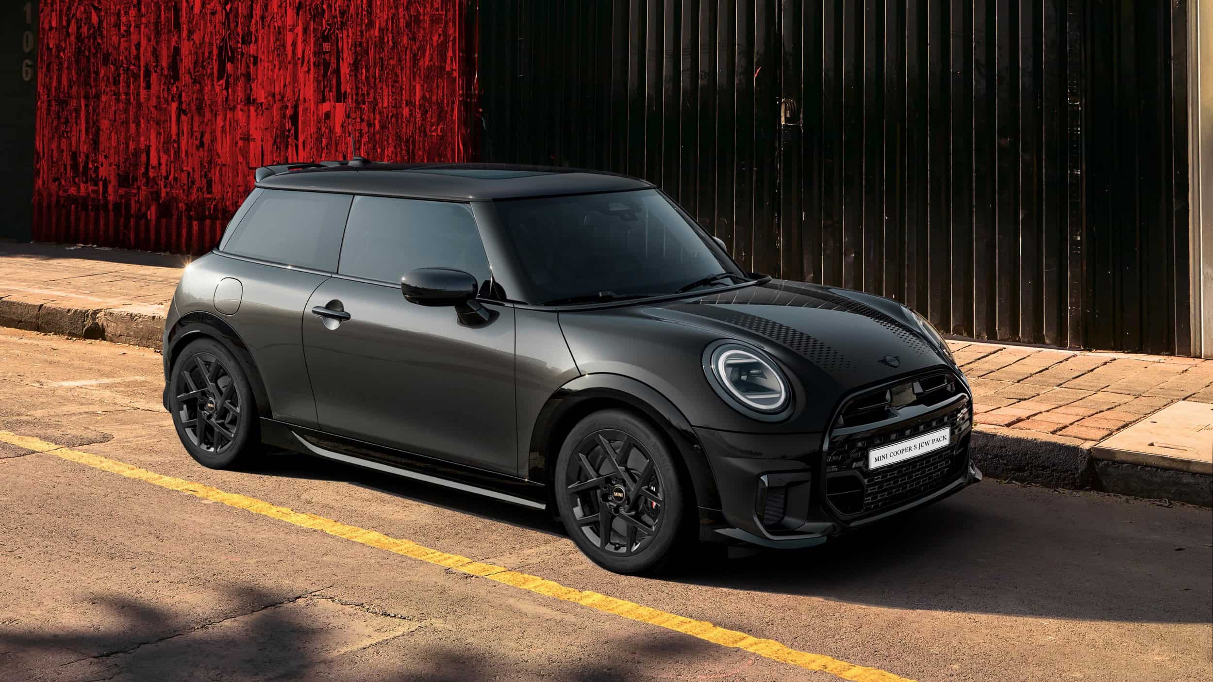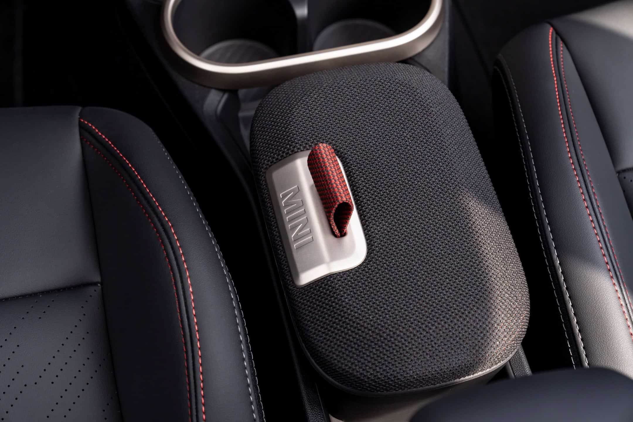 MINI intends to sell the feisty city car in either this Midnight Black paint or Legend Grey. Regardless of choice, the Cooper S with JCW Pack gets the side mirror caps and roof in black. Those 17-inch wheels also have a dark look, as does the vegan leather used inside the cabin. Despite the JCW branding, this is merely a cosmetic package since the car doesn’t have a more powerful engine.