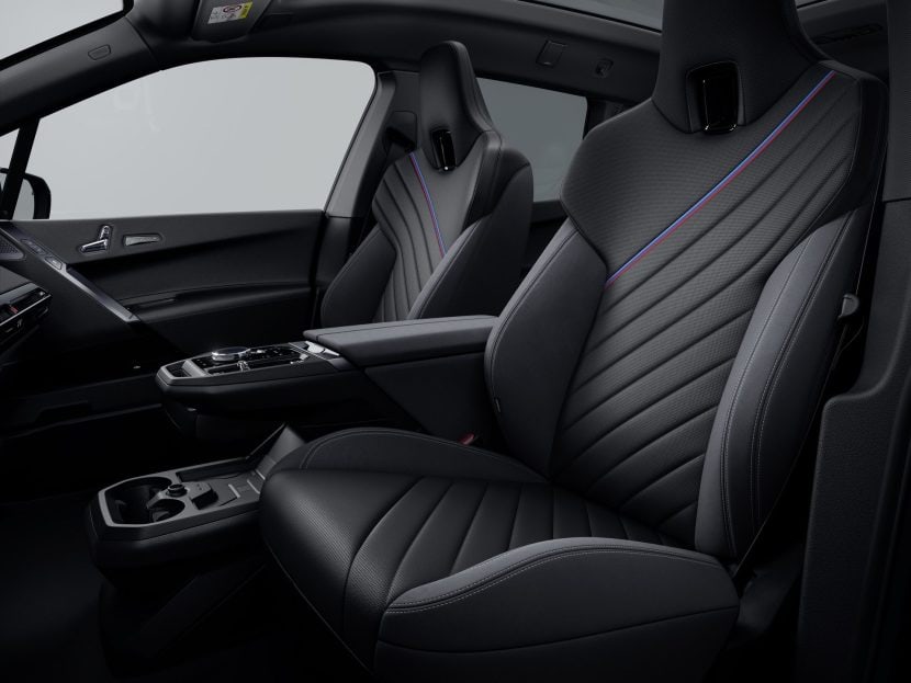 Speaking of the seats, this is, in our opinion, the most significant upgrade in the new iX. Not only they offer more bolster support, but they also fix one of our pet peeves: they seat was actually too short for tall people with very little thigh support. The still feature extensive adjustment options, including backrest width and lumbar support, along with pronounced contouring. They can be upholstered in Atlas Grey/Black microfibre/Sensatec with M-specific stitching and BMW M tri-color accents. Optional finishes include Amido natural leather or Castanea natural leather. The M Multi-Function seats come as part of the M Sport package for the iX xDrive45 and xDrive60, while being standard equipment on the high-performance BMW iX M70 xDrive.