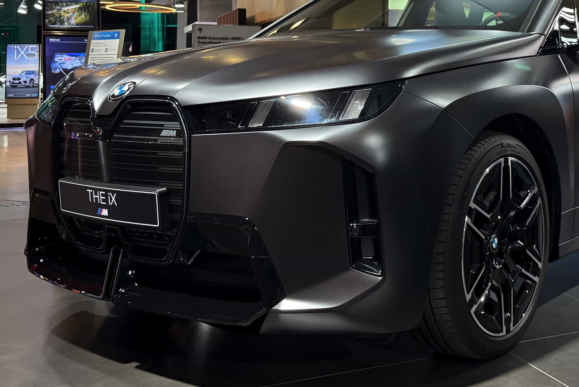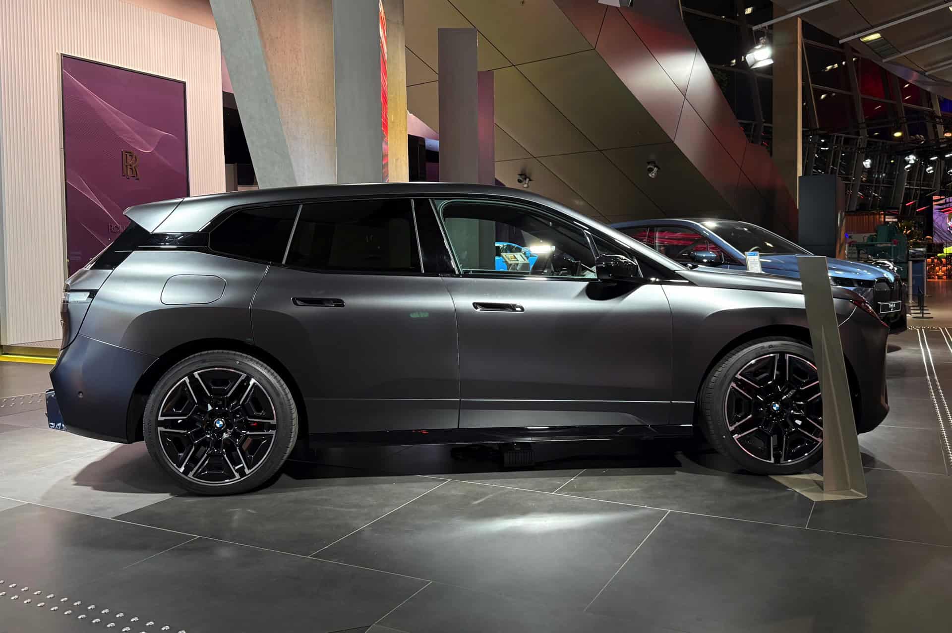 The BMW Welt, which was closed for five weeks to undergo renovation work, is now again open for business. Not only is there a 2025 M3 Touring in a striking Ruby Star color at the exhibition center but so is this iX M70. It, too, has an Individual color, but it flies under the radar compared to the wagon’s eye-catching pink shade. The electric luxobarge is finished in Frozen Deep Grey metallic, where “Frozen” is marketing jargon for a matte look.