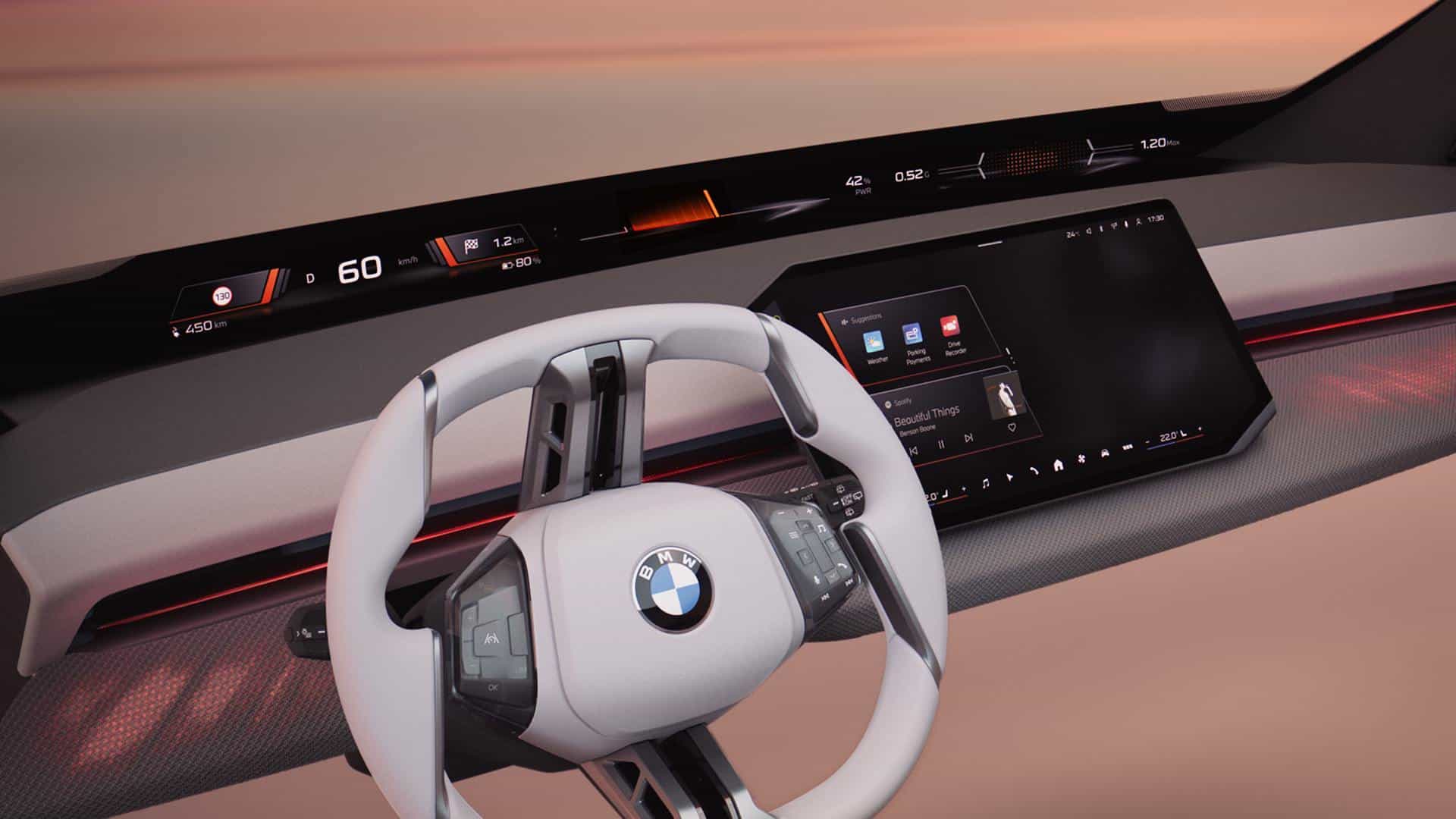 BMW hasn’t revealed the interior yet, but it’s easy to predict the direction. The facelifted M5 will feature a completely redesigned cabin centered around the recently unveiled Panoramic iDrive display. At its core, BMW’s new 17.9-inch central screen acts as the command hub for the next-generation iDrive powered by Operating System X. This display streamlines control over Panoramic Vision’s widgets, navigation, and more. Additionally, BMW will likely equip the facelifted M5 with the new steering wheel design previewed at CES 2025 in the latest iDrive X demos.