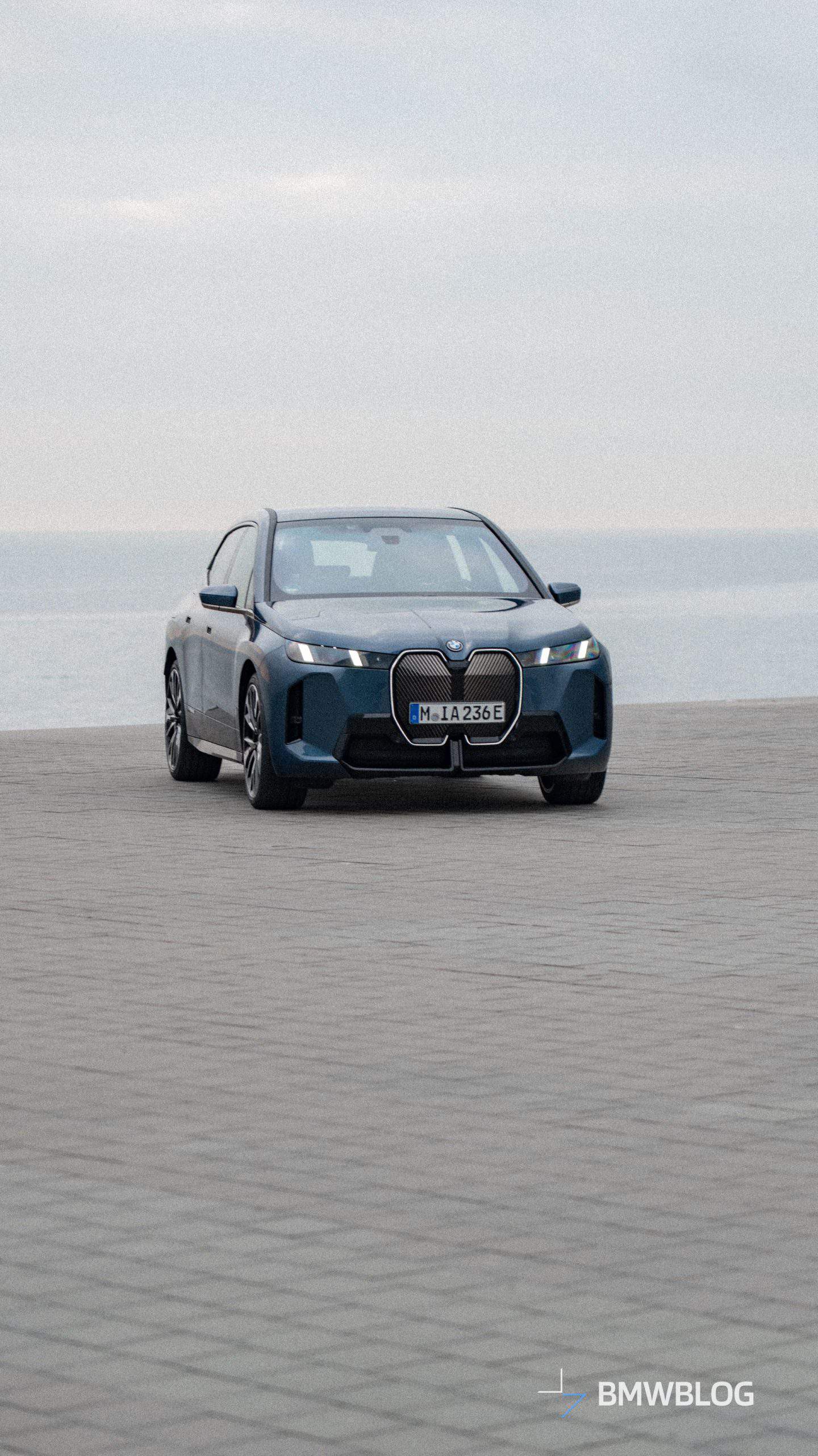 Come to think of it, this is not really a base model since BMW configured the car with a few options. By far the most noticeable is the M Sport Package – a first for the iX. Even this lesser flavor of the big electric SUV gets the more aggressive bumpers of the hot M70. However, it lacks the M Performance model’s distinctive kidney grille pattern with horizontal slats and the M logo.