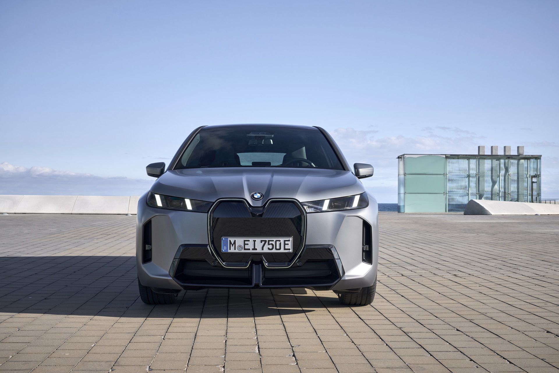 The iX was one of the last BMWs without an illuminated grille option. BMW is making things right by introducing the pompously called Iconic Glow option. Since this iX xDrive60 has the M Sport Package Pro rather than the non-Pro version, the jumbo-sized kidneys are darker here. Both packages borrow the front and rear bumper designs from the flagship M70.