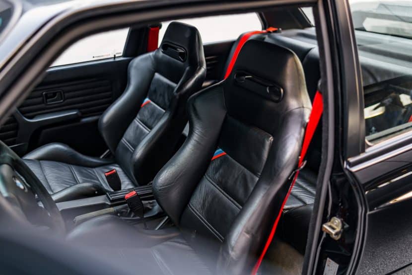 Fun fact: Most amenities were deleted to cut weight, but customers could add them back. Goodies included a sunroof, air conditioning, power windows, grab handles, map lights, and a trip computer. The M3 Sport Evolution had M Cross seats as standard, but at an additional cost, buyers opted for these black Recaro seats wrapped in leather.