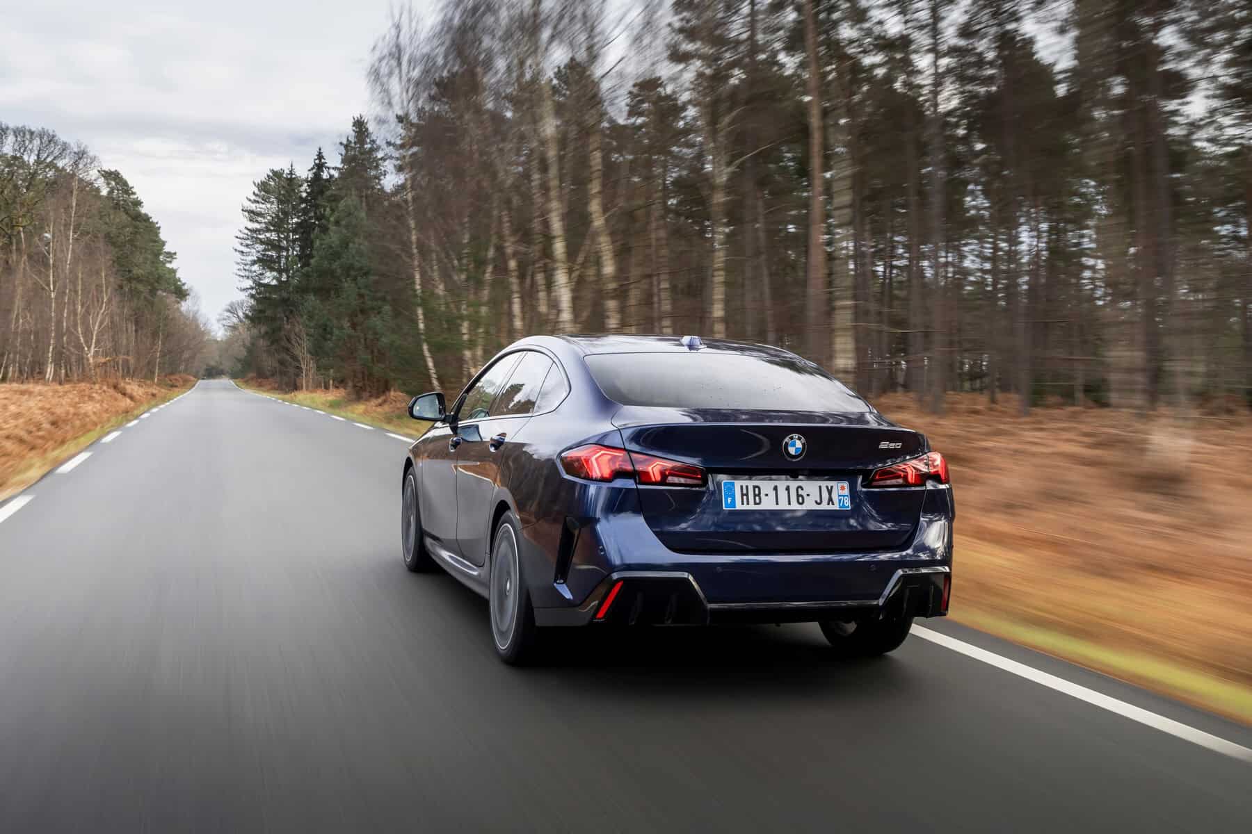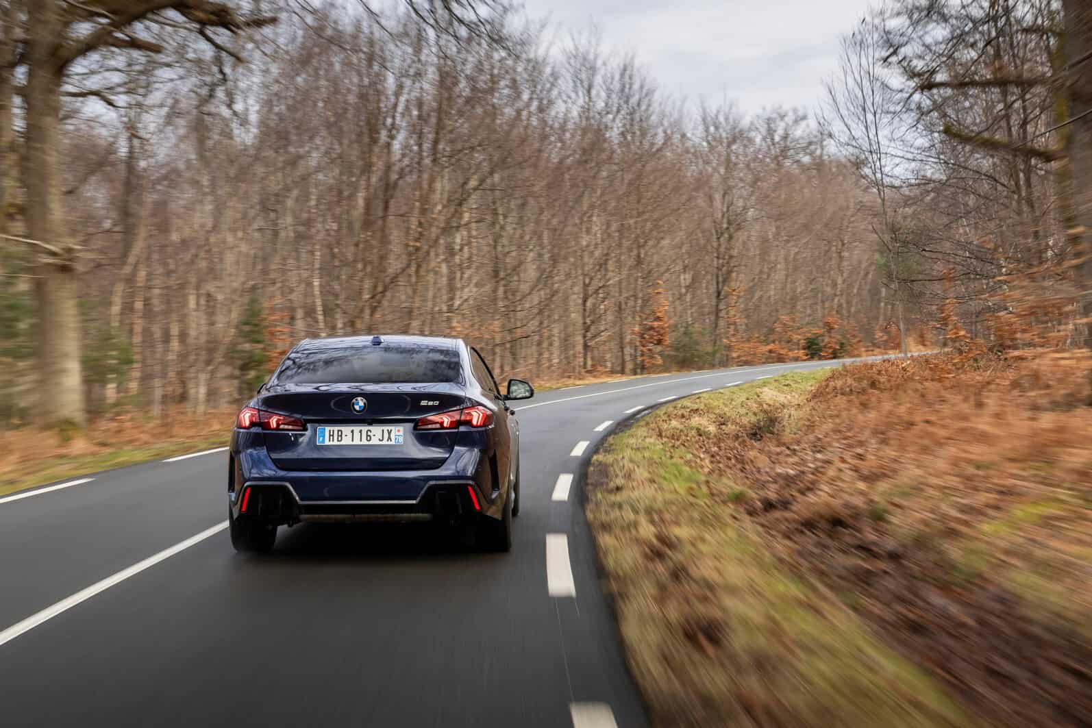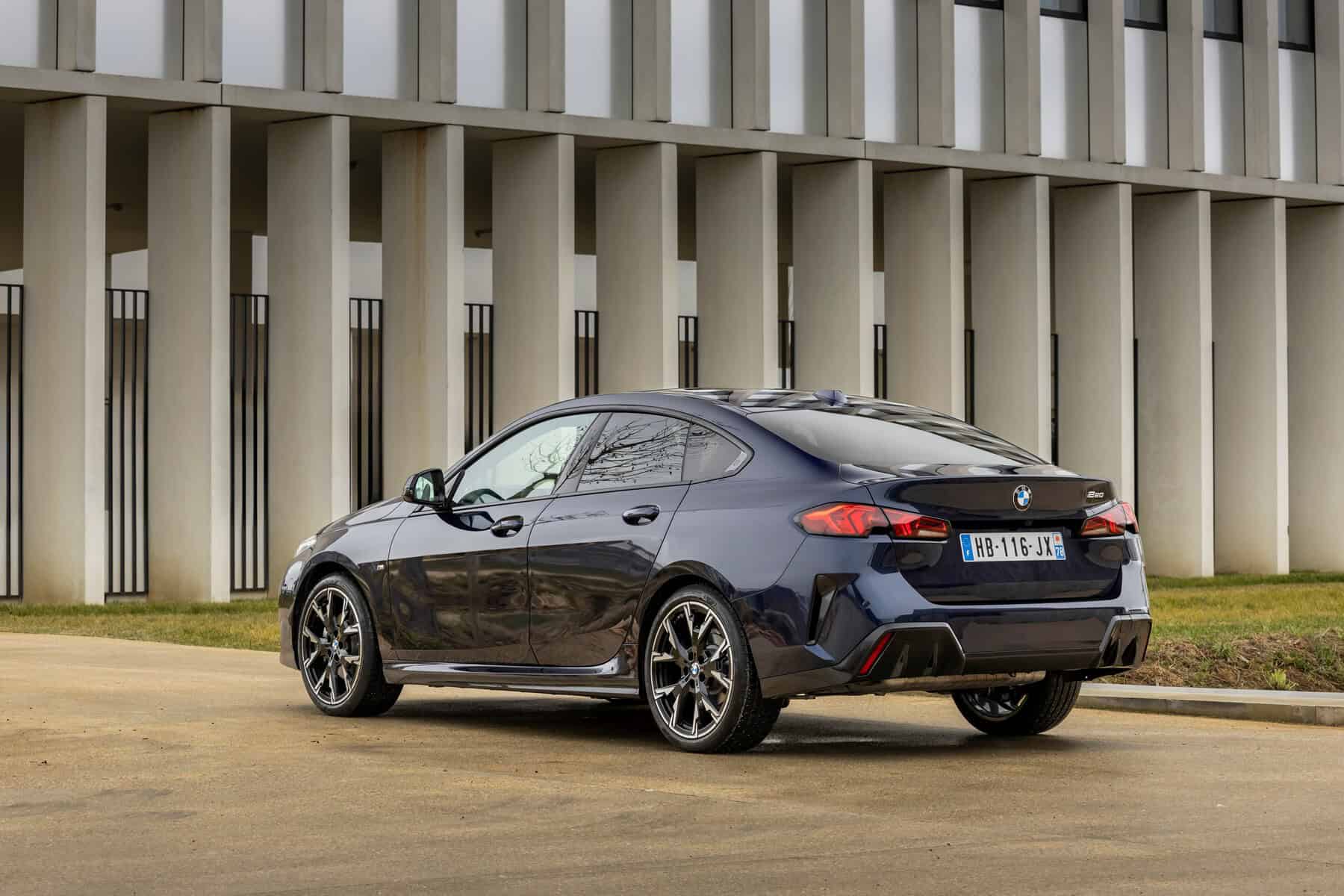BMW France kept things relatively simple rather than focusing on the M Performance model. Although it’s not a spicy M235, this 220 is not completely standard either. It has the M Sport Package and an optional Individual paint—Tanzanite Blue Metallic. The new 2 Series Gran Coupe skips the standard wheels in favor of a larger 19-inch set. These 976 M alloys have the two-tone finish we’ve come to expect from BMW.