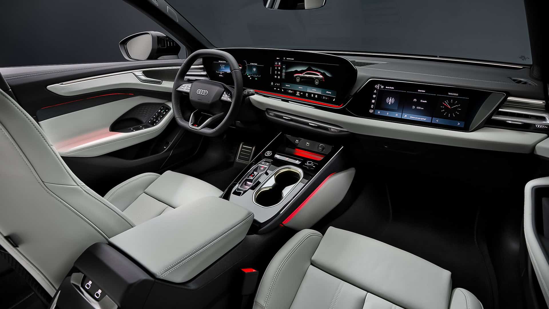 The interior is a spitting image of the A5’s cabin. Before BMW puts a passenger screen in the 5 Series facelift in 2027, the A6 features an optional 10.9-inch display for the person sitting next to the driver. The central touchscreen measures 14.5 inches, while the Audi Virtual Cockpit has an 11.9-inch diagonal. A new and configurable head-up display with an 85% larger visible image is offered at an extra cost.