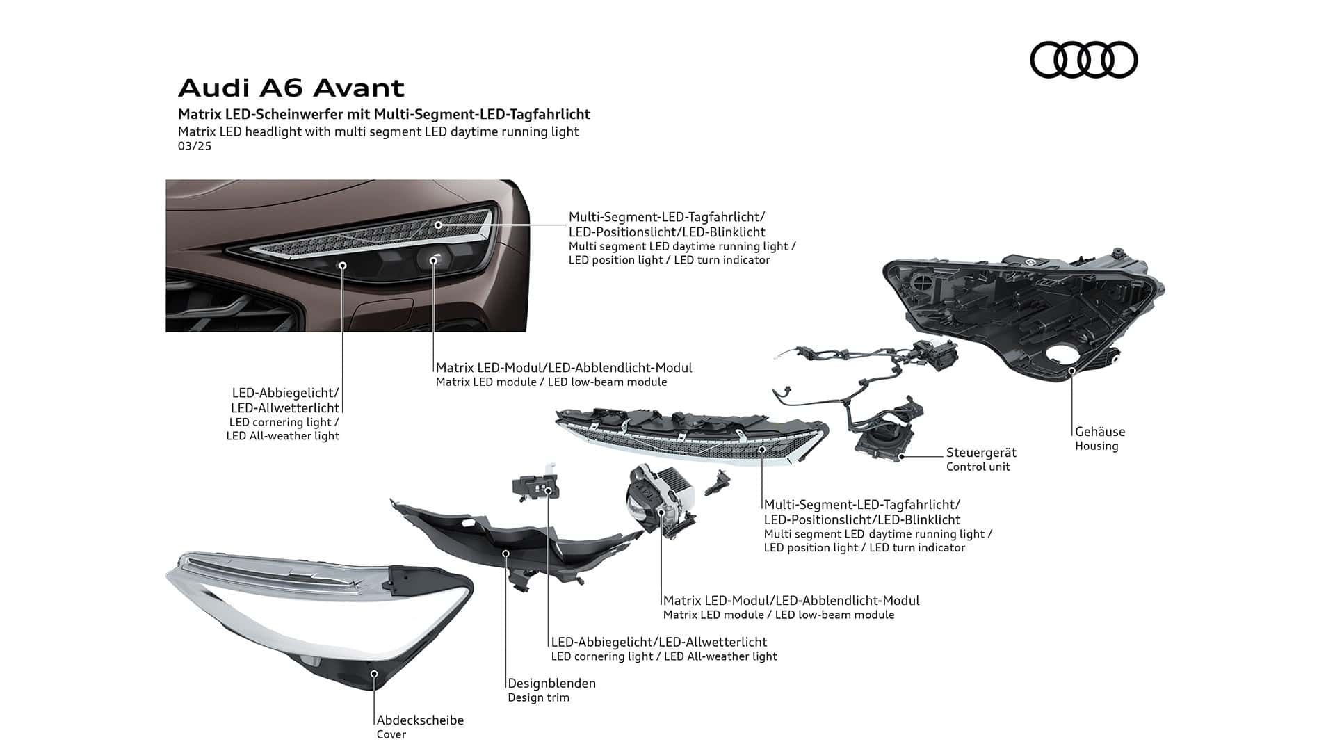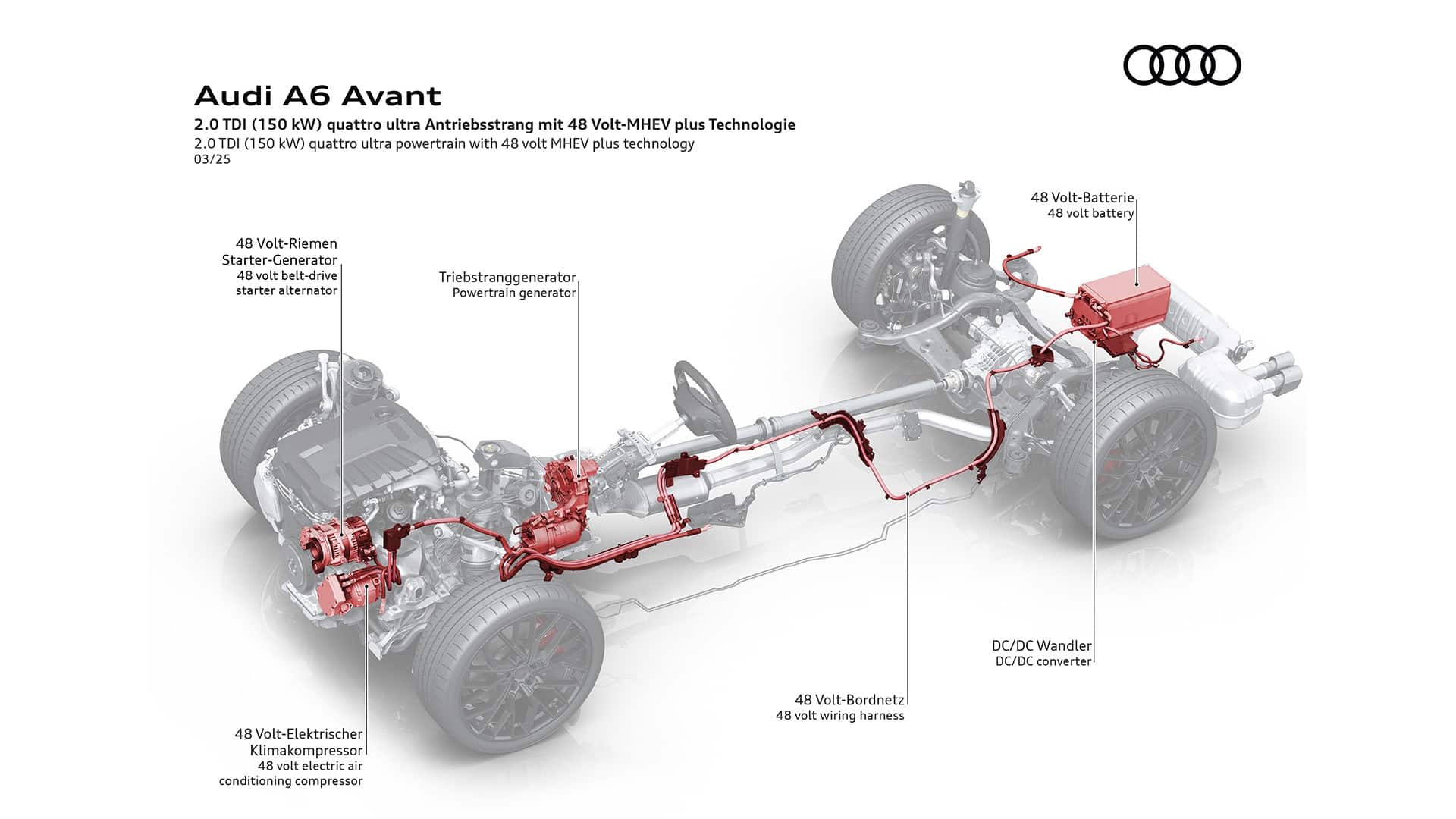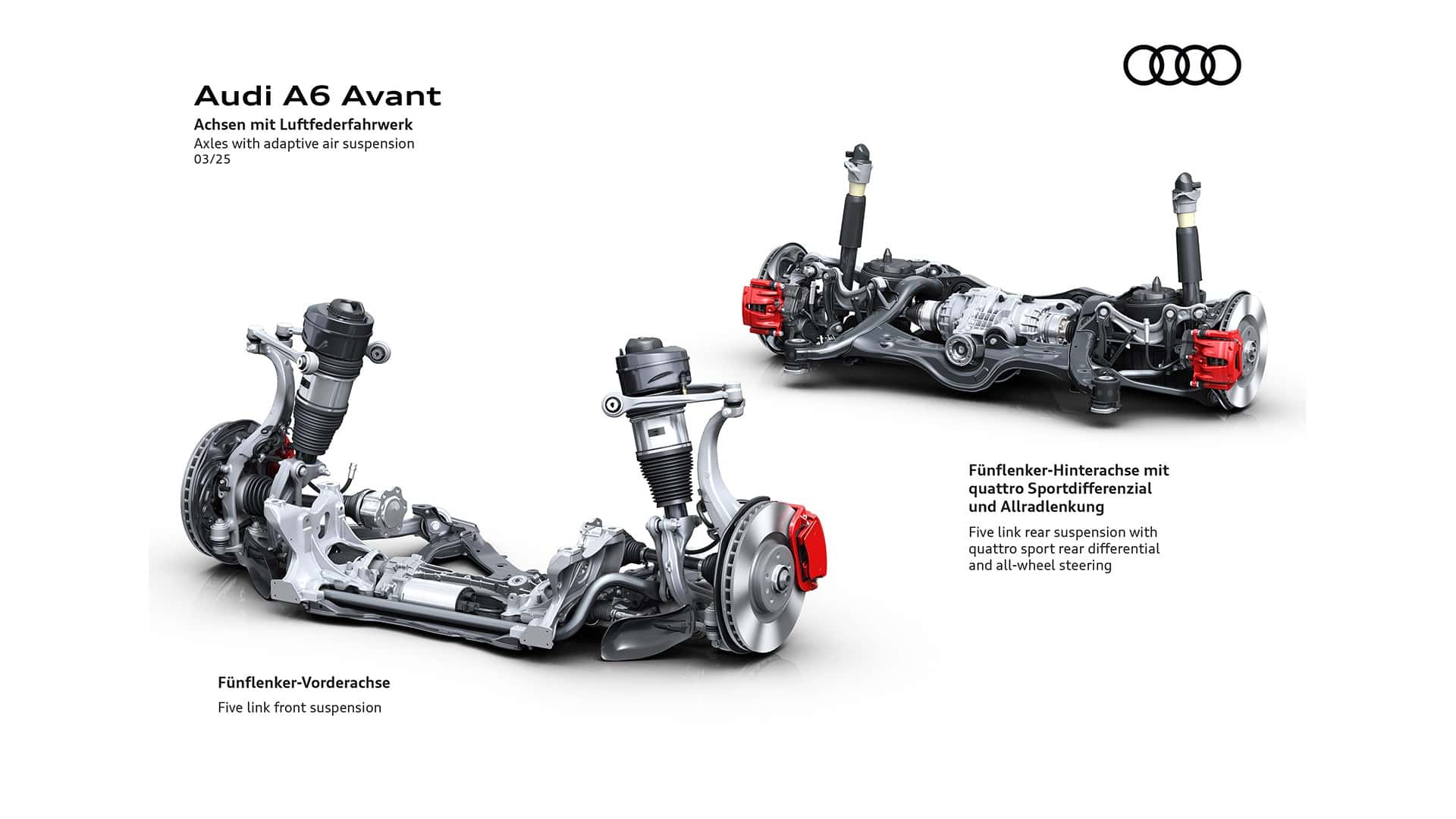 Audi has engineered the next-gen A6 Avant with lots of high-end equipment. The wagon is chock-full of fancy stuff, from all-wheel steering and air suspension to forged wheels and a V6-only Quattro Sport differential. A first for the A6, the latest model also boasts brake-by-wire tech, where the brake pedal and brake hydraulics are completely decoupled.
