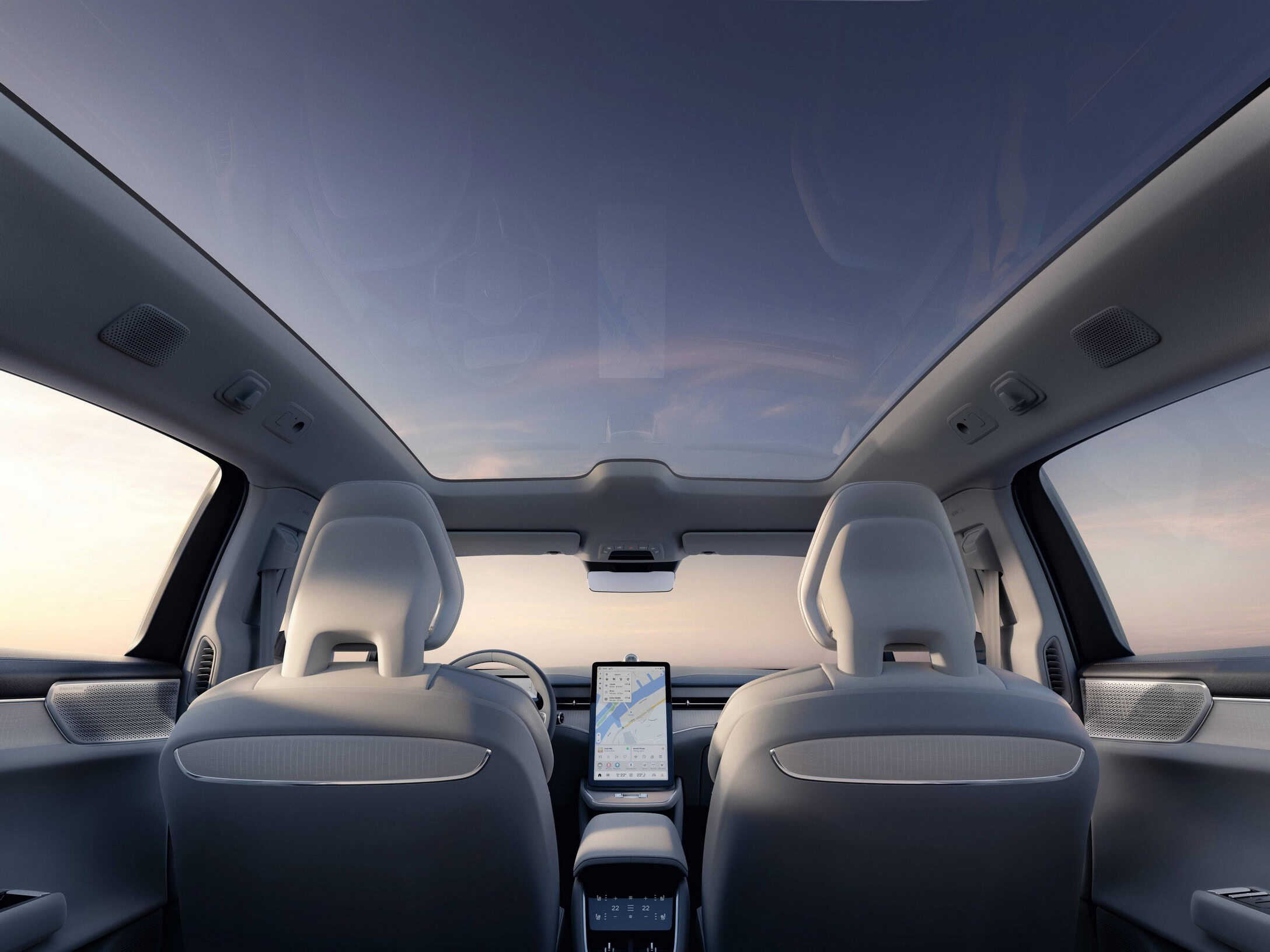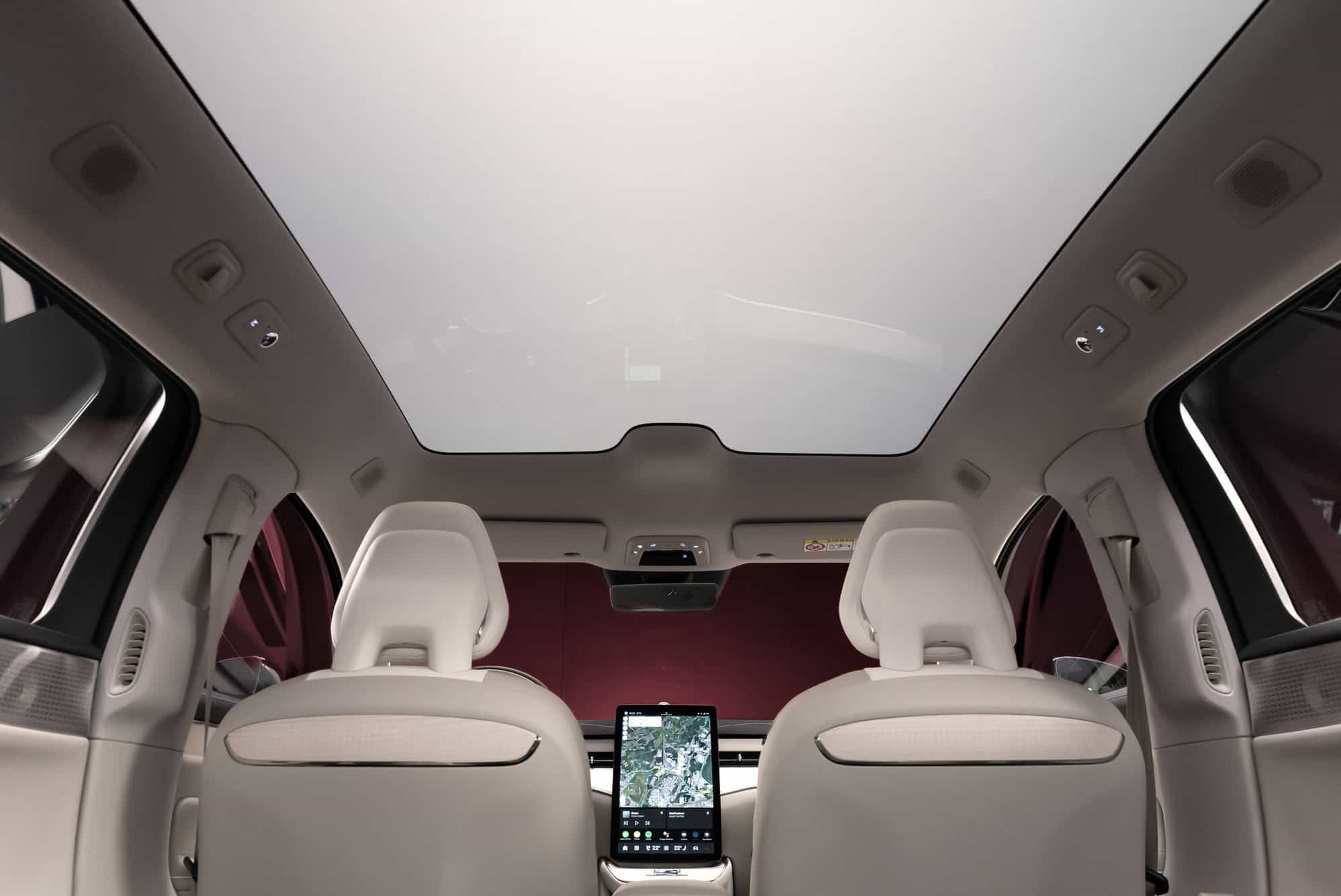 The interior follows the trends of an electric car launched in recent years. By that, we mean a big screen swallowing nearly all conventional controls. The jumbo-sized infotainment has a 14.5-inch diagonal, and thankfully, the driver still has a separate 9-inch instrument cluster, plus a head-up display. The cabin sends a cozy vibe, and a massive sunroof floods the interior with light. An electrochromic version of the panoramic glass roof lets you adjust transparency.