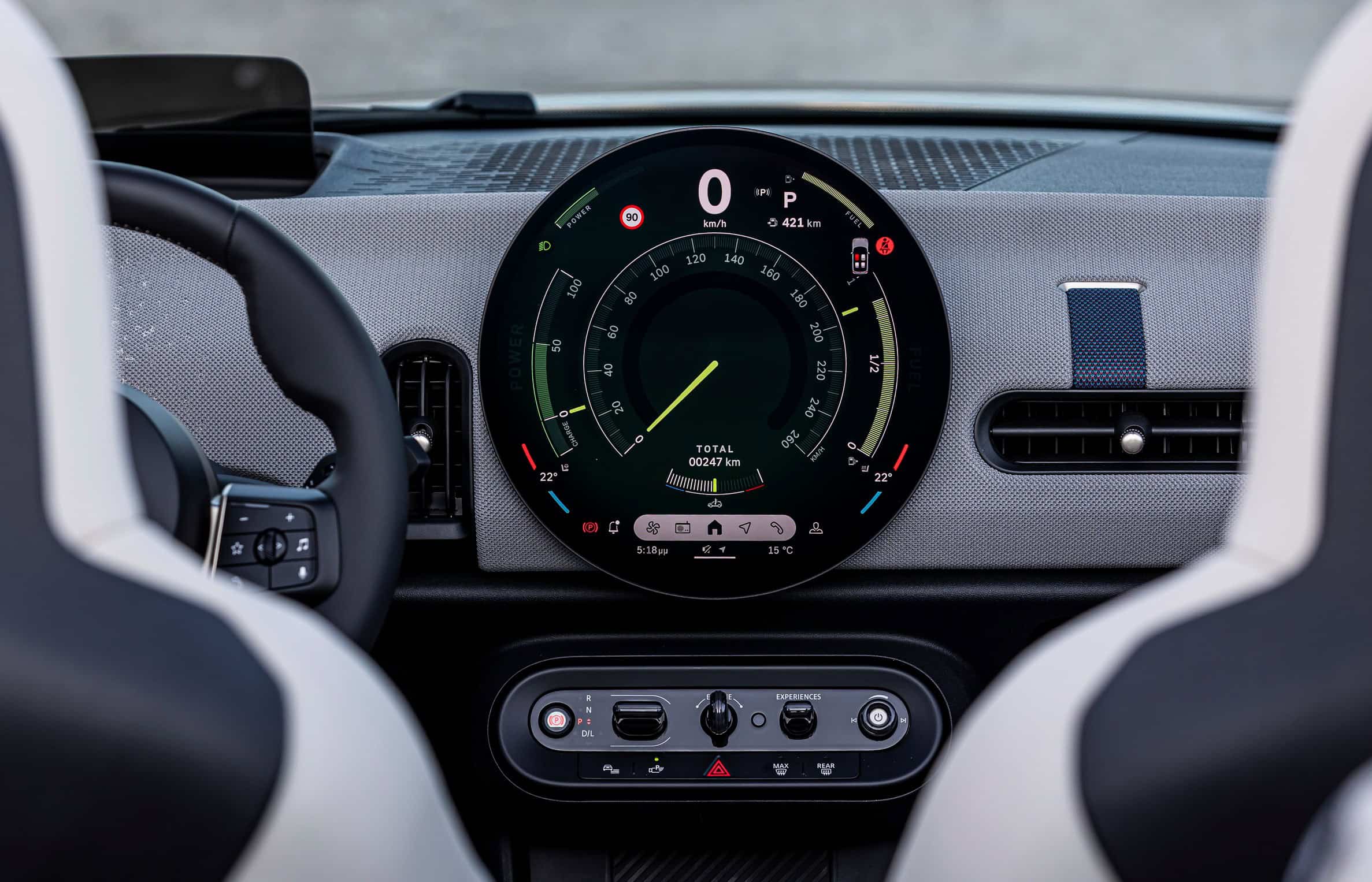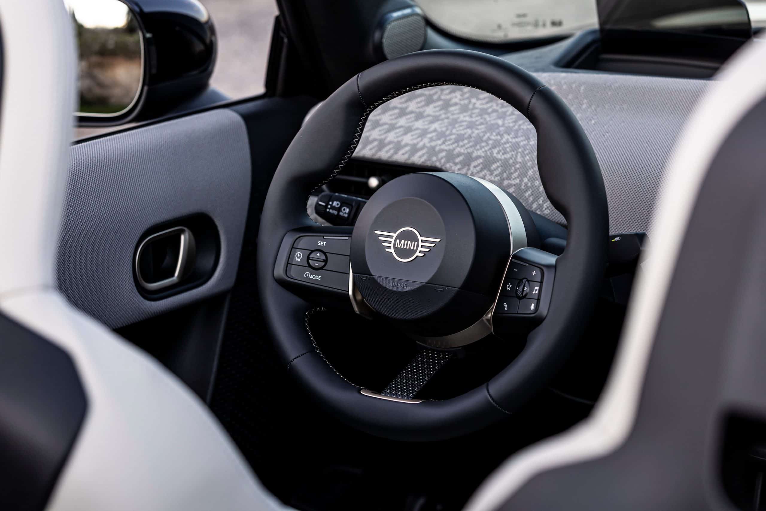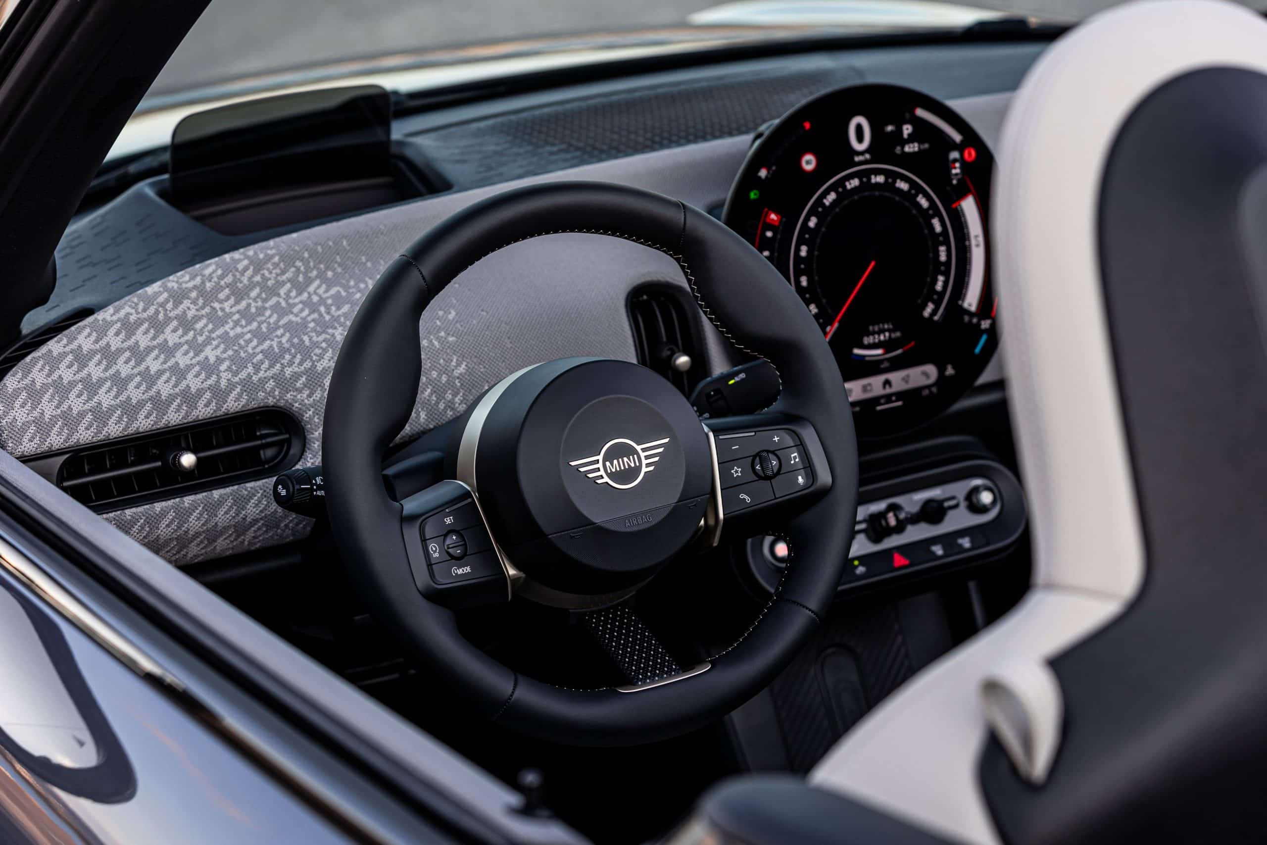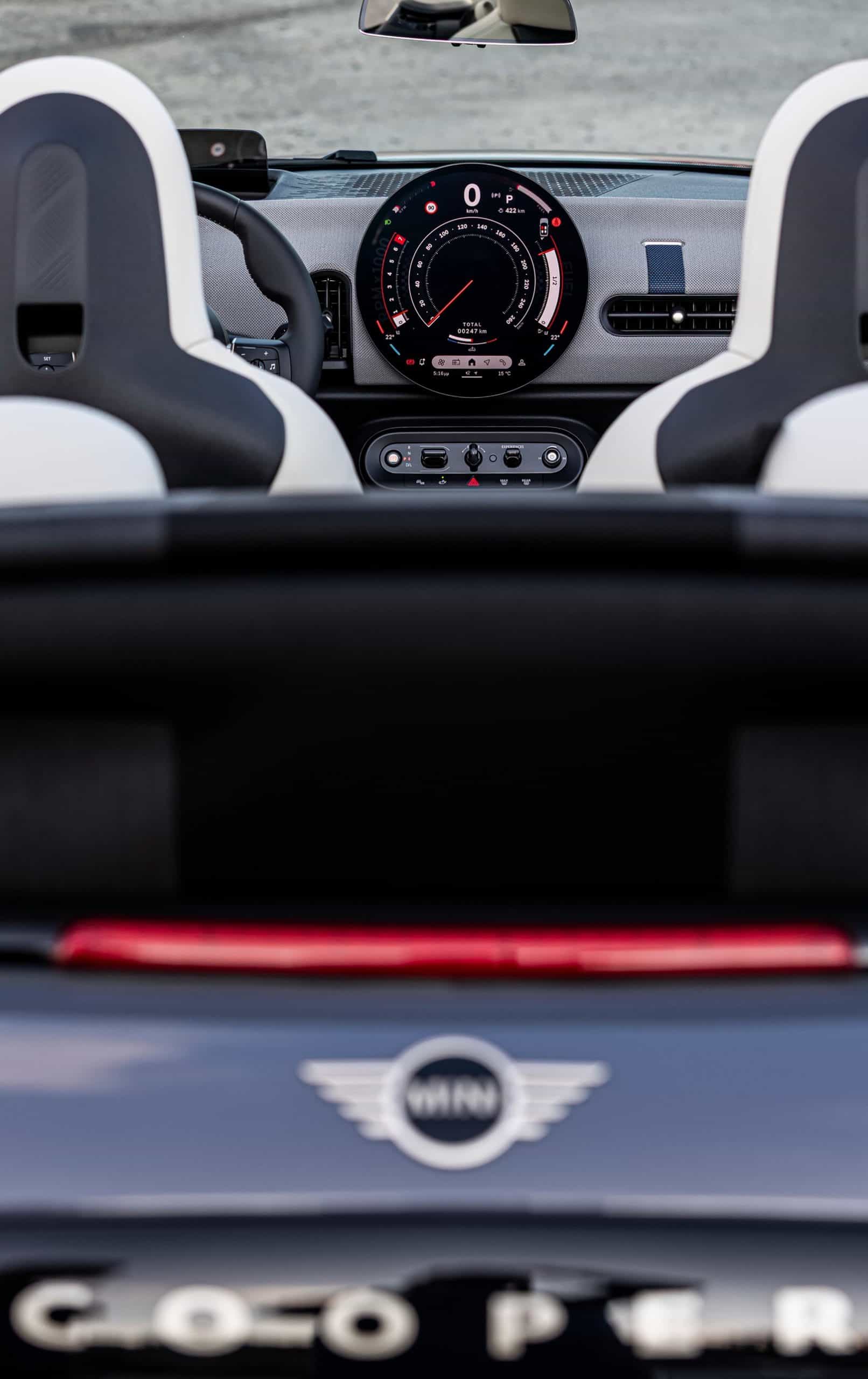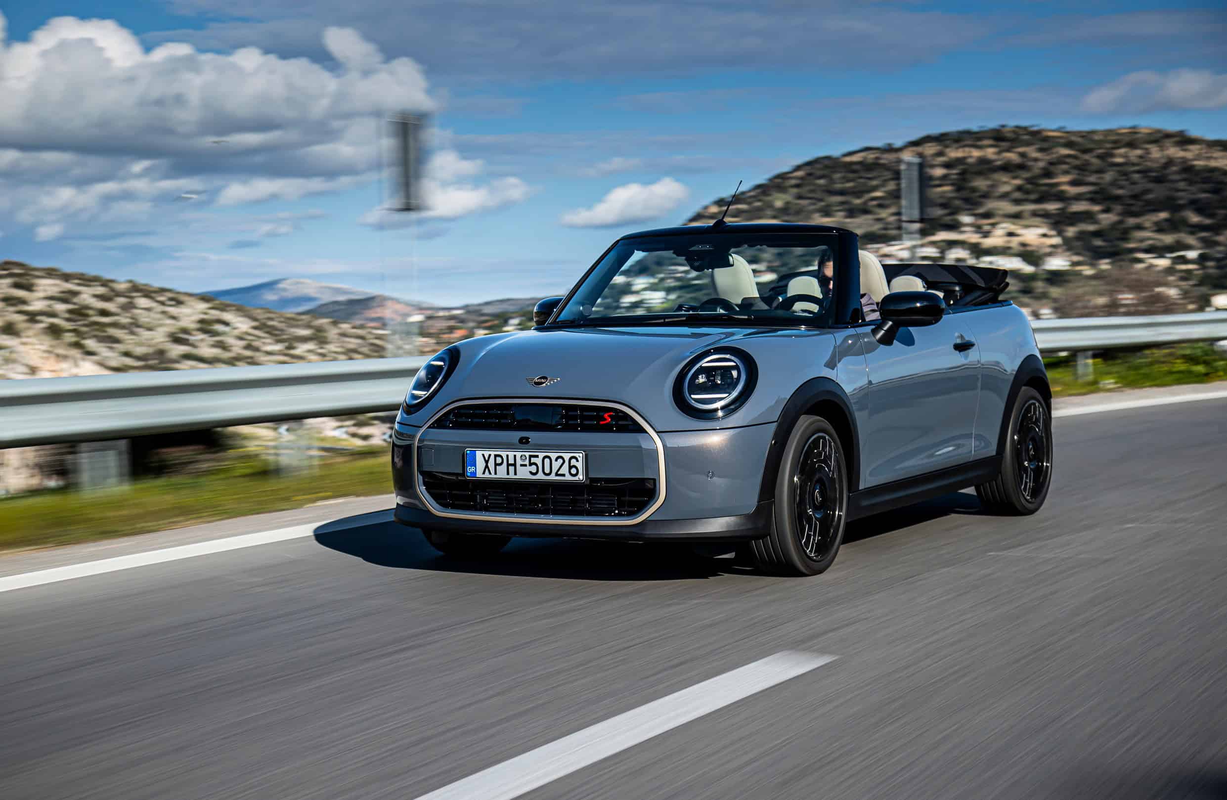 Although MINI Greece played it safe with the body color, it did opt for the glitzy 18-inch Night Flash two-tone wheels. It also ticked another box on the list of options – the Union Jack motif on the electrically retractable soft top. Inside, the Vescin Beige upholstery has a classy look, but we’re concerned about how the lightly colored seats will withstand the test of time.