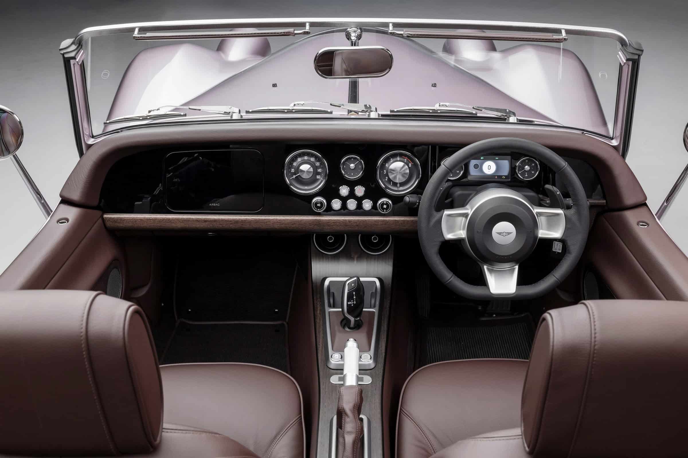 The new aluminum platform is 10% stiffer or even 20% with the carbon roof. Additionally, the engineers have increased steering speed by 13%, while the rigidity of certain suspension mounting points has nearly doubled. Morgan sells an optional limited-slip differential and adjustable Nitron dampers for those willing to splurge. There are also 19-inch wheels, which are actually slightly lighter than the smaller 18-inch set you get as standard.