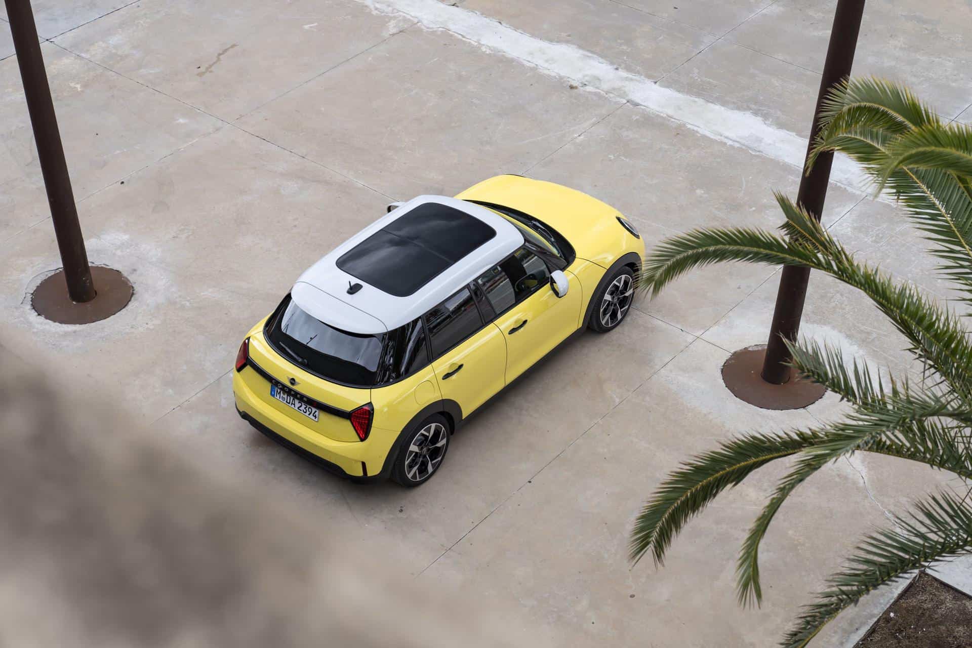 The new MINI Cooper 5-Door tries to maintain the cheerful character of its predecessor. The “F65” offers joyful colors like this Sunny Side Yellow in a sea of white, black, or grey cars. It’s a non-metallic finish combined with a white look for the mirror caps and roof. Alternatively, the secondary color can be black, or you can just stick to the body color. There’s also a Multitone option with a gradient effect to make the chic hatchback stand out even more.