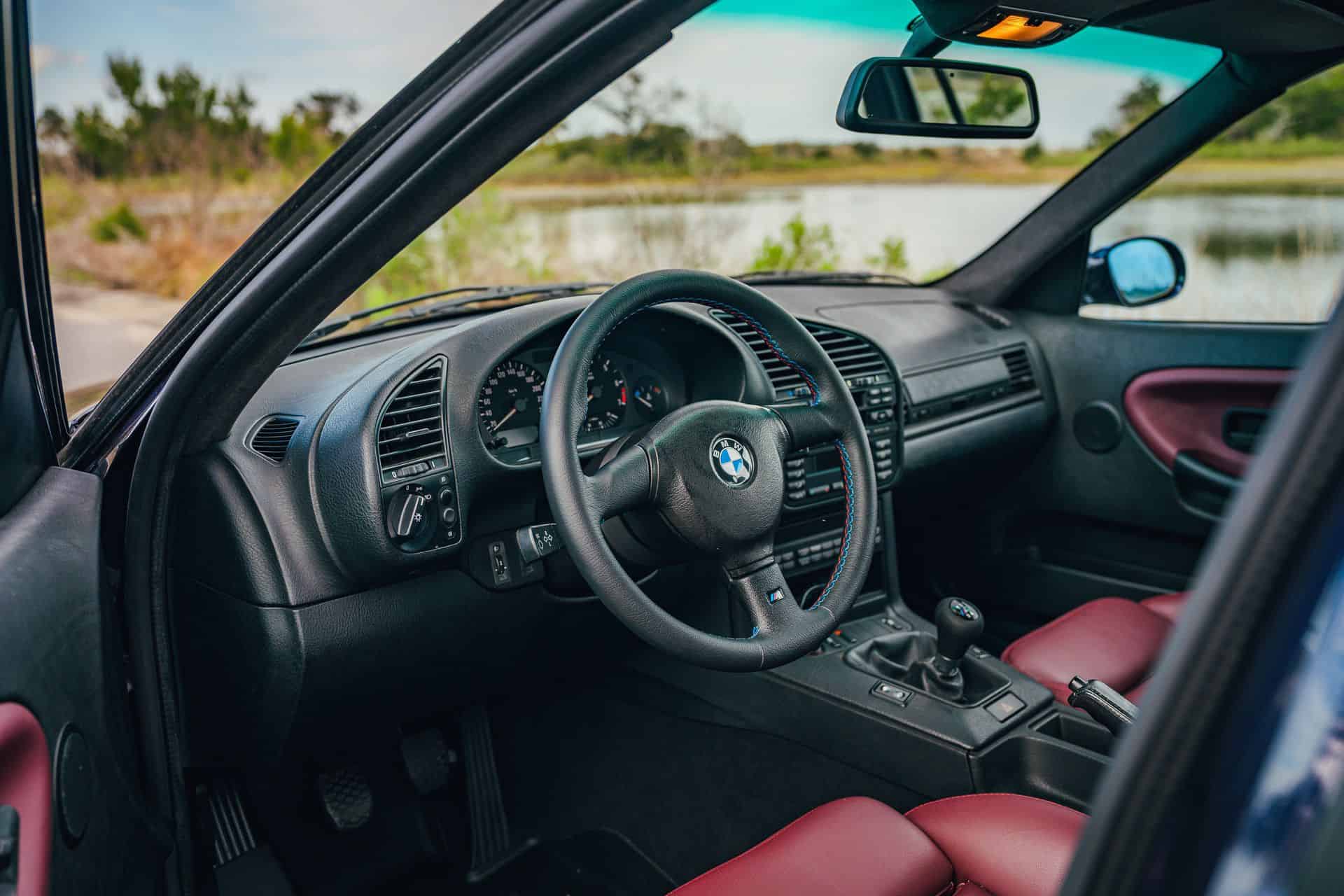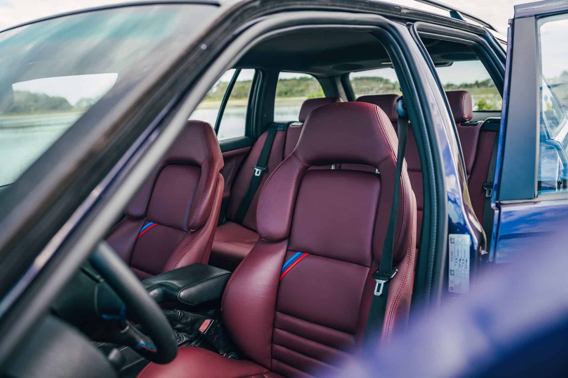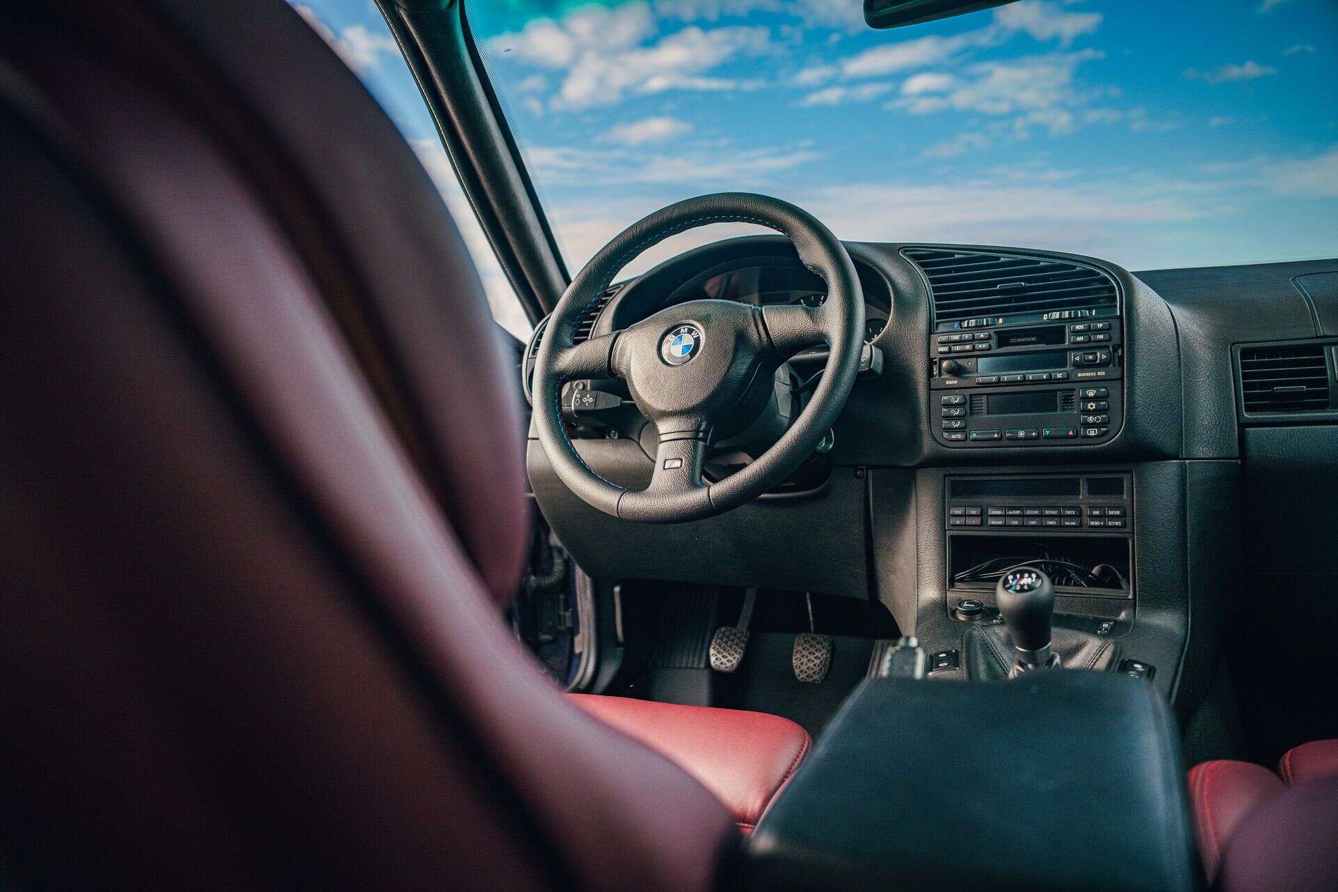 But this E36 Touring so more than just a restoration. Sean sought out quality OEM replacement parts as needed. You can’t replace the originals in some cases, so you’ll spot components like an M Tech II steering wheel, original black plastic and rubber exterior trim, and OEM windshield and rear hatch glass. A glass-out respray in the car’s original Techno Violet, a custom interior with “Vader” seats lifted from an M3, and an anthracite Alcantara headliner bring a little bit of an OEM+ look that’s just the tip of the iceberg.