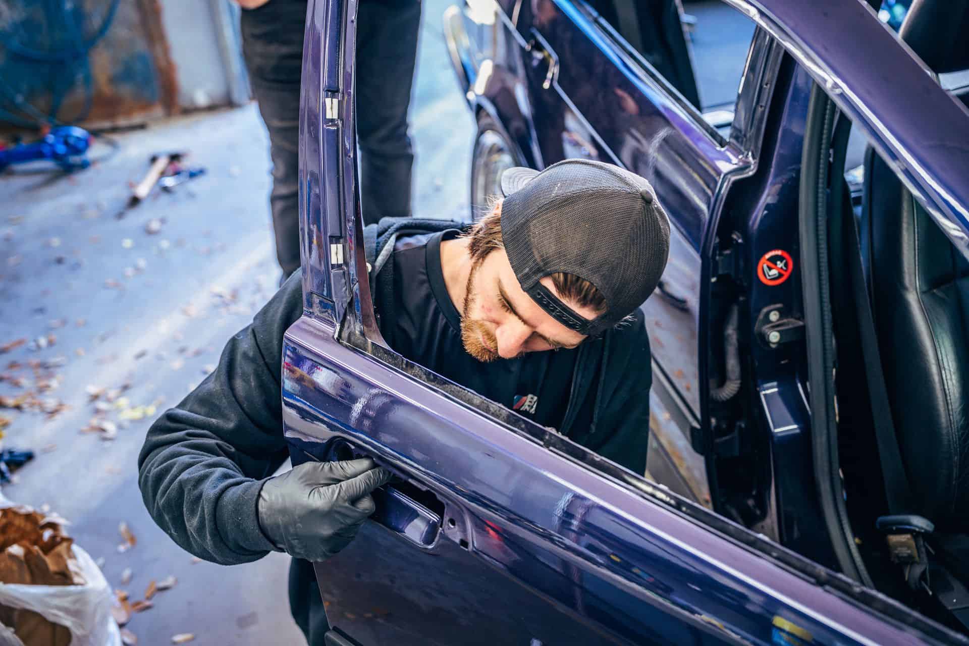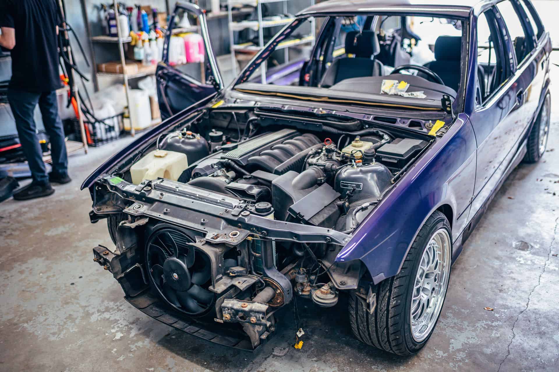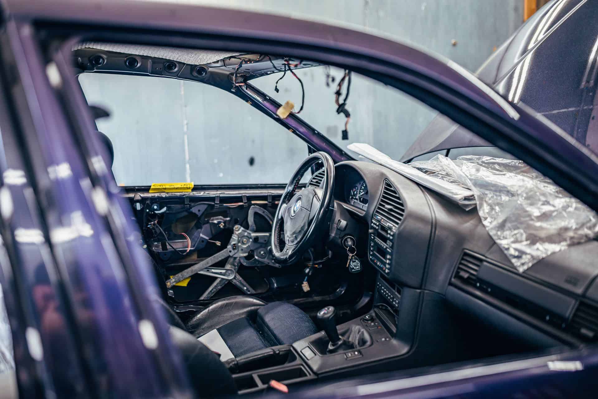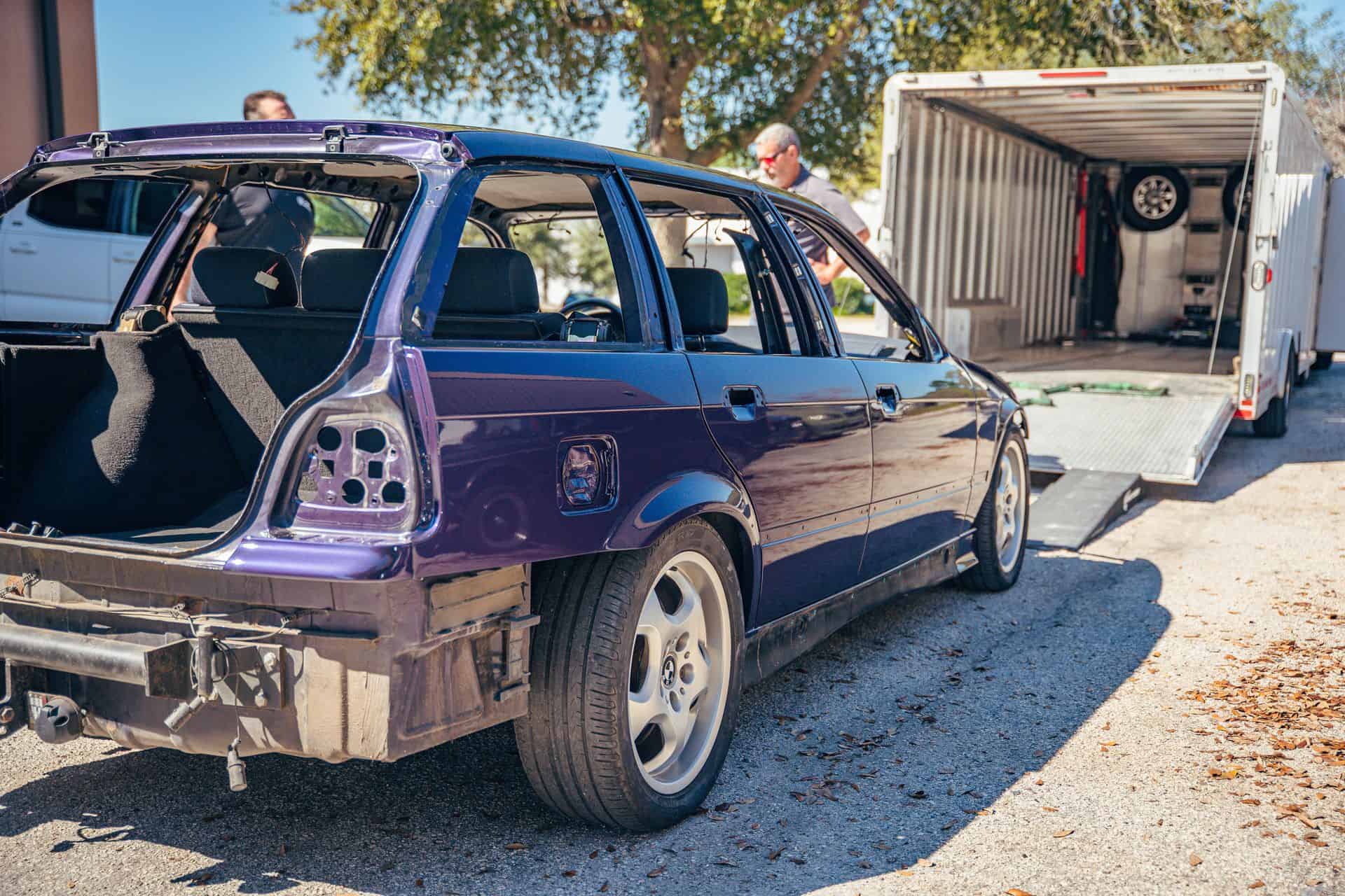 This 328i Touring—VIN EV09078—left the factory on November 30th, 1996. Initial delivery occurred on December 3rd, 1996, at Autohaus Buder-Hubatsch in WeiĂźwasser, Oberlausitz, Germany. It came from the factory in quintessential “enthusiast spec:” Techno Violet metallic paint with black leather/cloth upholstery, no sunroof, a manual transmission, and the M Sport Package. The original owner(s) used the car as intended. As a result, the vehicle has seen the full force of the elements, suffering heavy rust. But 25 years later, it has taken on a new life. It was shipped to its new owner in the US, Sean (President of Precision Sport Industries), in 2022. It sat for a little bit more time while its new steward collected parts to bring his restoration vision to life.