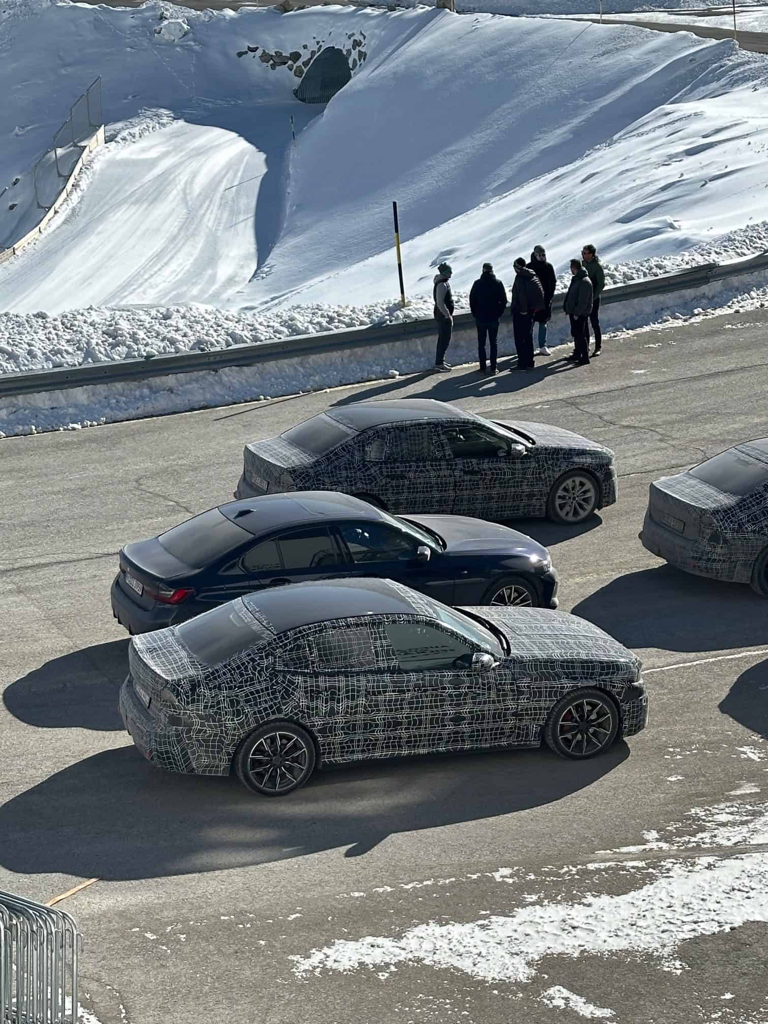 Ok, which is which? The 3 Series “G50” is the car closer to the camera, with two-tone wheels. It also possibly has an M Sport Package, judging by the red brake calipers. The fully electric i3 “NA0” with its silver wheels has a German license plate ending in “E” – a telltale sign it’s electric. A closer look at the i3 reveals it has a shorter nose, which makes sense, considering there’s no engine underneath the hood. BMW has already confirmed it will keep the inline-six alive for the next-gen 3er, which will definitely have a longer nose than the i3.