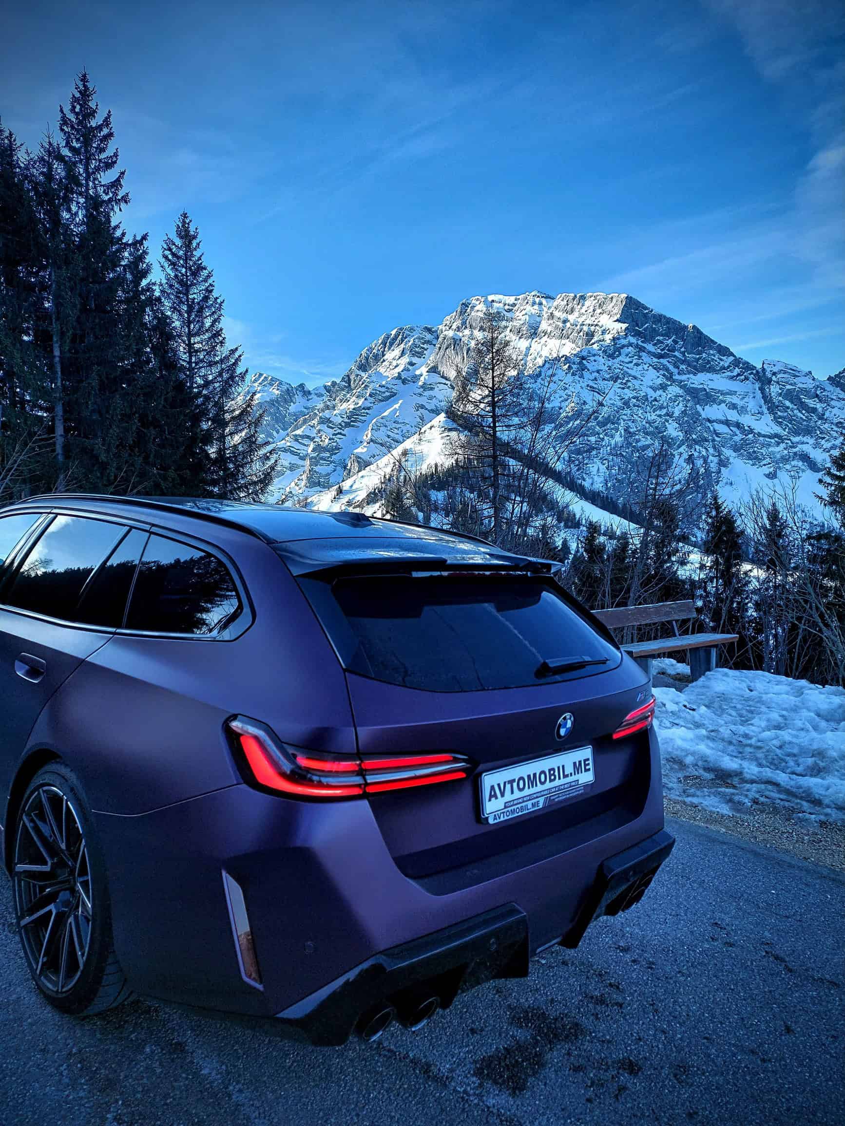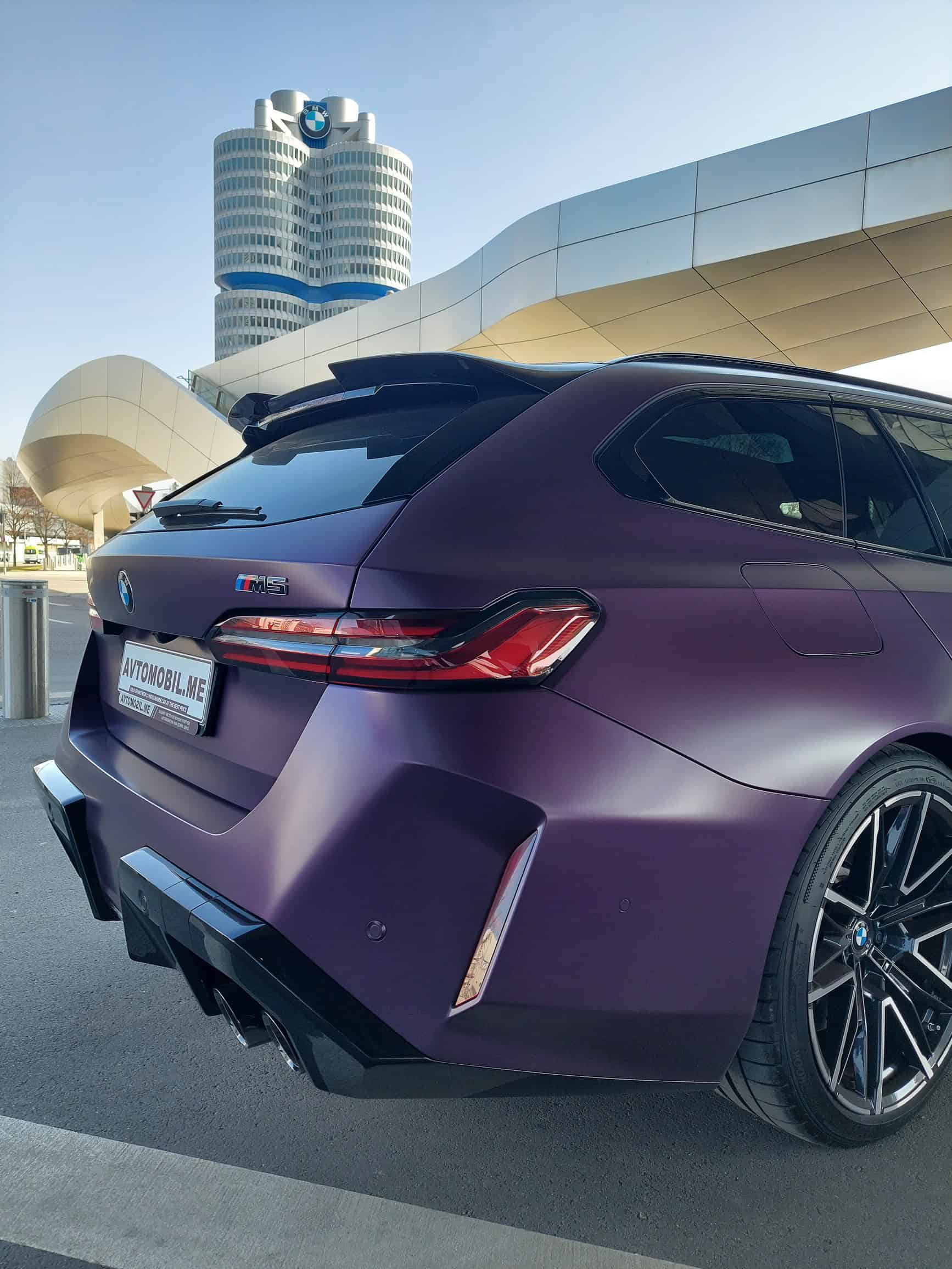 With 150 colors to choose from, configuring a new BMW M5 is like a kid walking into a candy store. If you’re tired of the usual black and white shades and everything in between, here’s something completely different. Carrying the “P9A” codename, Frozen Purple Metallic is an eye-catching matte finish from the Individual catalog. We saw a Daytona Violet G90 sedan a few months ago but this G99 wagon stands out even more.