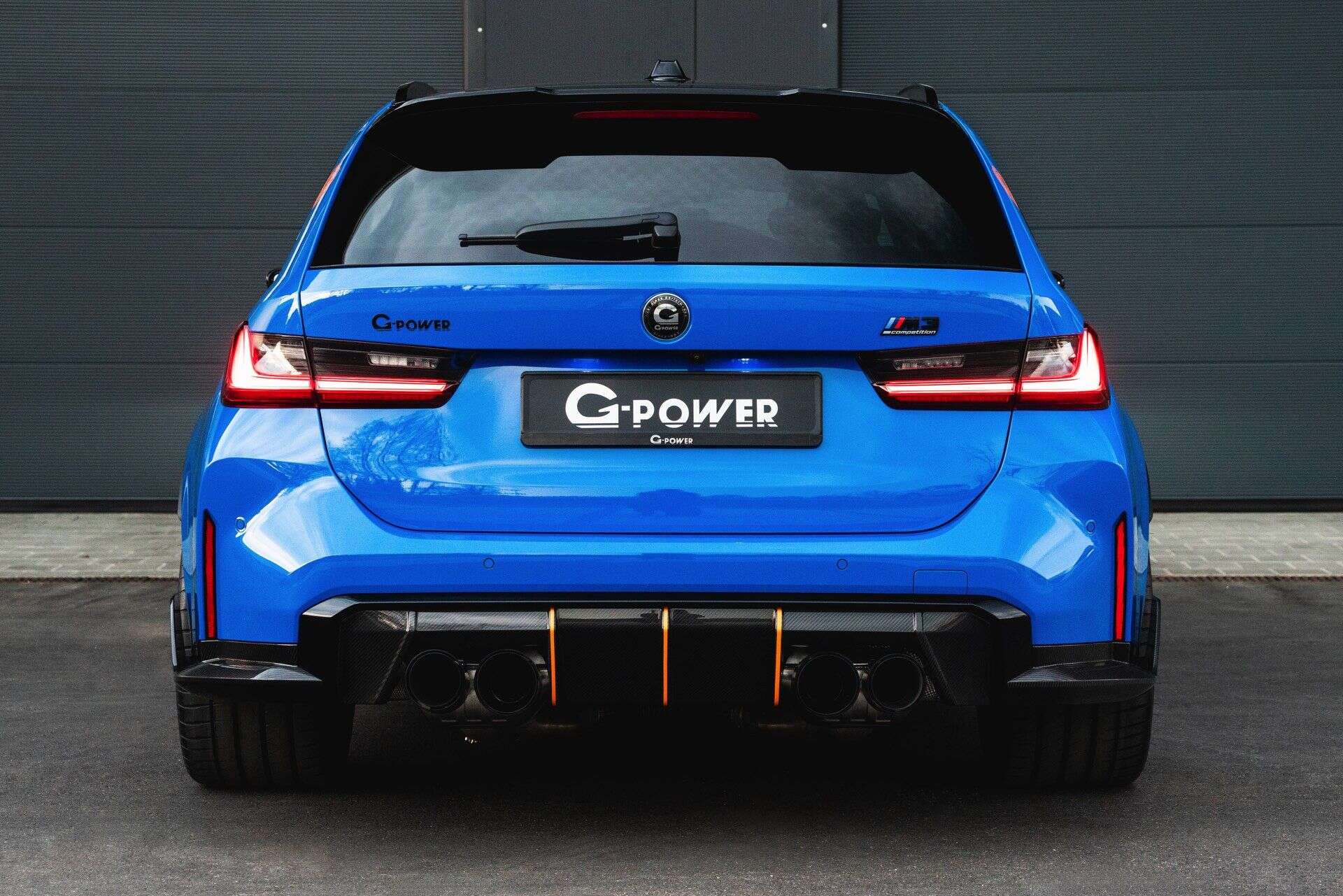 The system includes both a center and rear muffler, culminating in quad carbon-coated tailpipes — two measuring 100 mm and the other two a larger 110 mm. With the electronic speed limiter removed, the G3M Bi-TURBO Touring is capable of reaching a top speed of 330 km/h (205 mph).