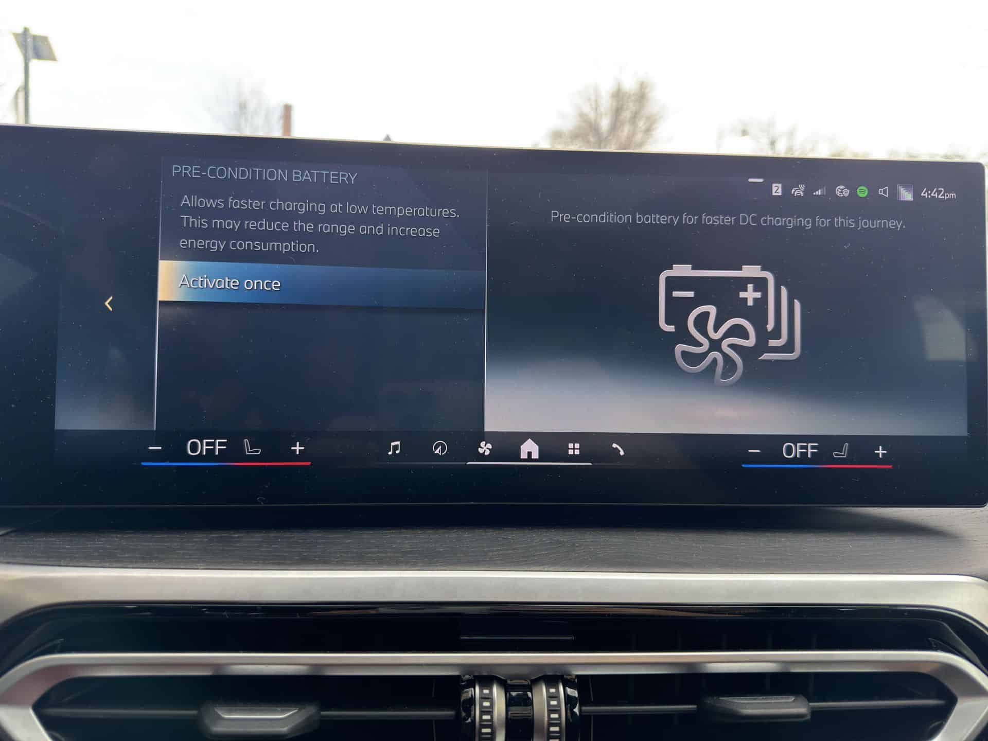 If your BMW is a newer model with a dedicated preconditioning option in the charging menu, make sure to enable it before you arrive. This gives you more control and guarantees that the battery will be properly warmed up by the time you plug in. Warming up the battery usually takes around 20–25 minutes, so give your vehicle enough time to reach the right temperature en route.
