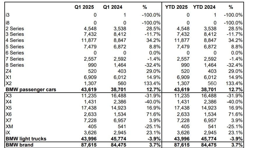 BMW USA Q1 2025 SALES