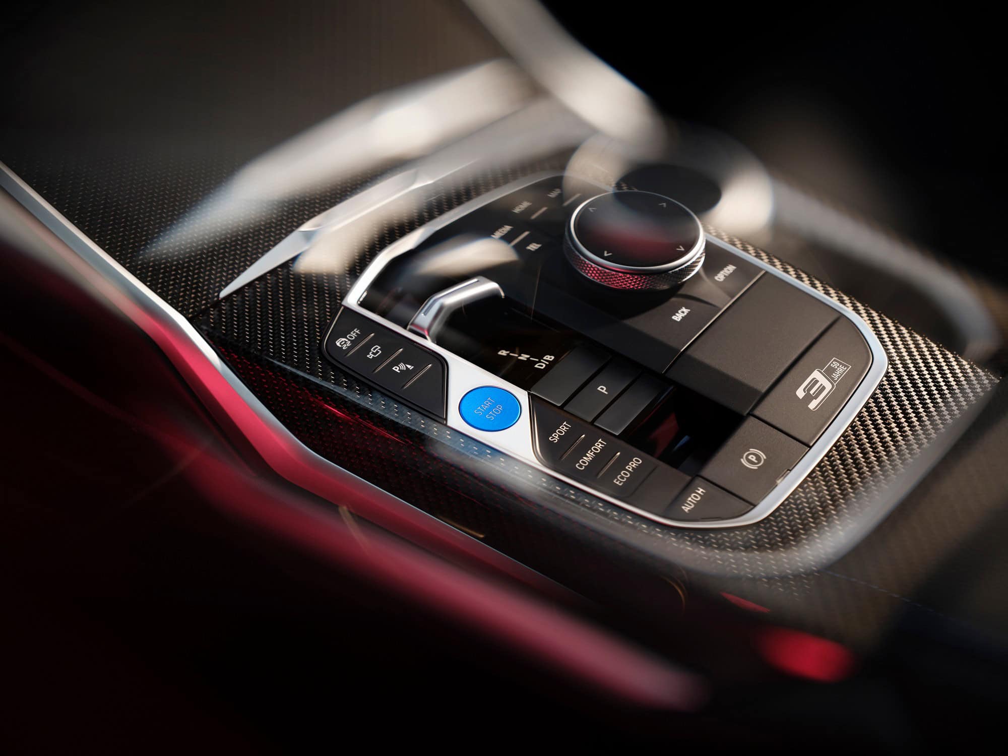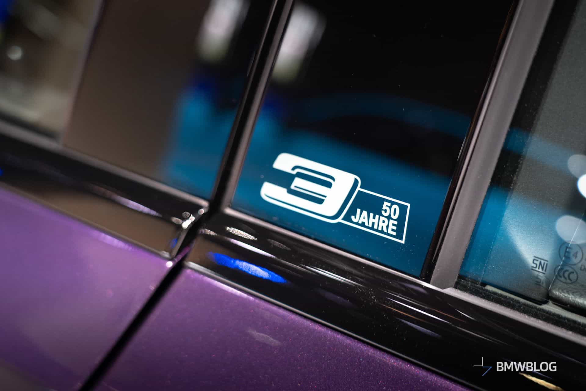 The 3er’s golden jubilee ushers in a new 19-inch wheel design featuring a two-tone finish and a Y-spoke layout. Look closely at the B-pillars and you’ll spot a white “50 Jahre” logo celebrating half a century of BMW’s best-selling car. That same graphic reappears inside, next to the iDrive rotary knob on the center console.