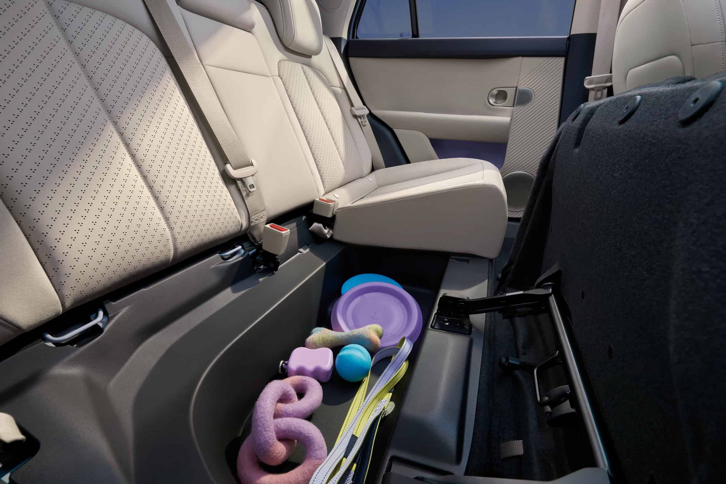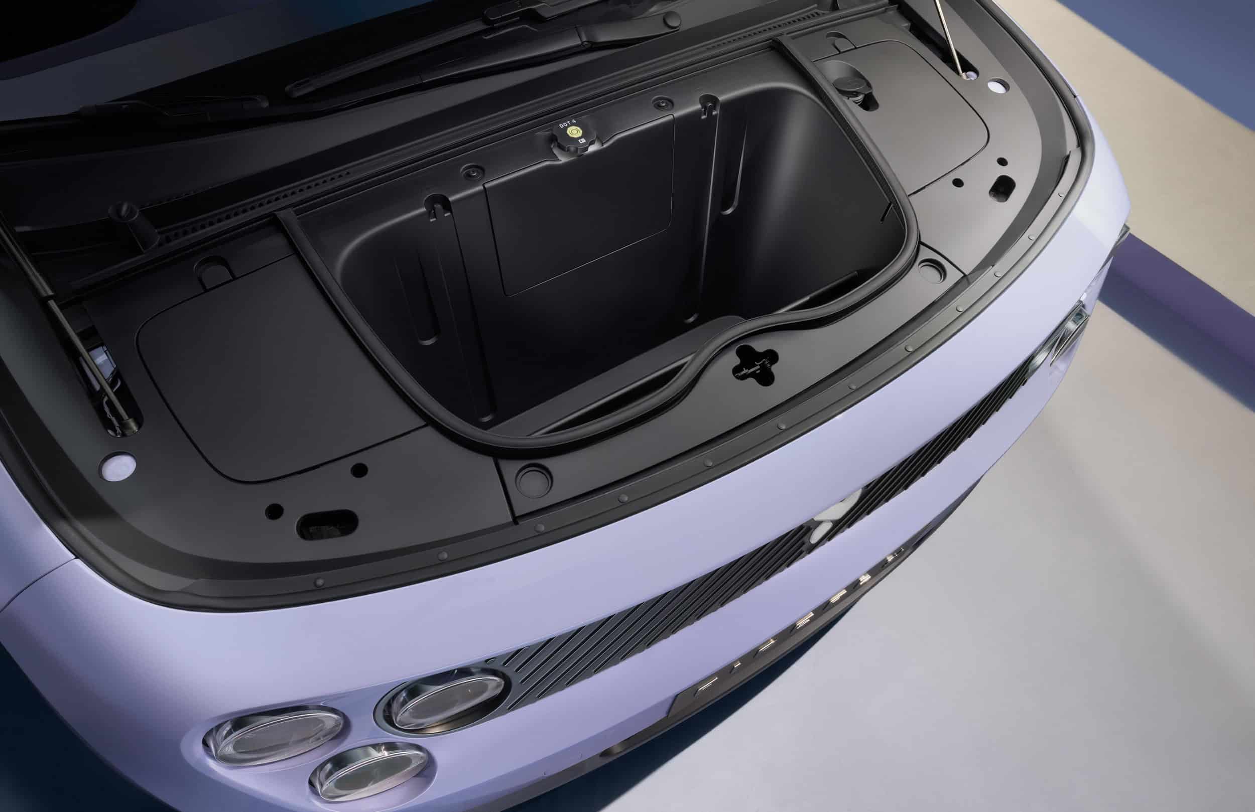 Despite its compact size, the NIO Firefly is equipped with fairly large 18-inch wheels, wrapped in black-arched fenders. The car rides on a dedicated EV platform, which gives it short overhangs and a 95-liter front trunk. In the back, it offers 335 liters of cargo space, or 1,235 liters with the rear seats folded. NIO also carved out a hidden 29-liter compartment under the right rear seat for added practicality.