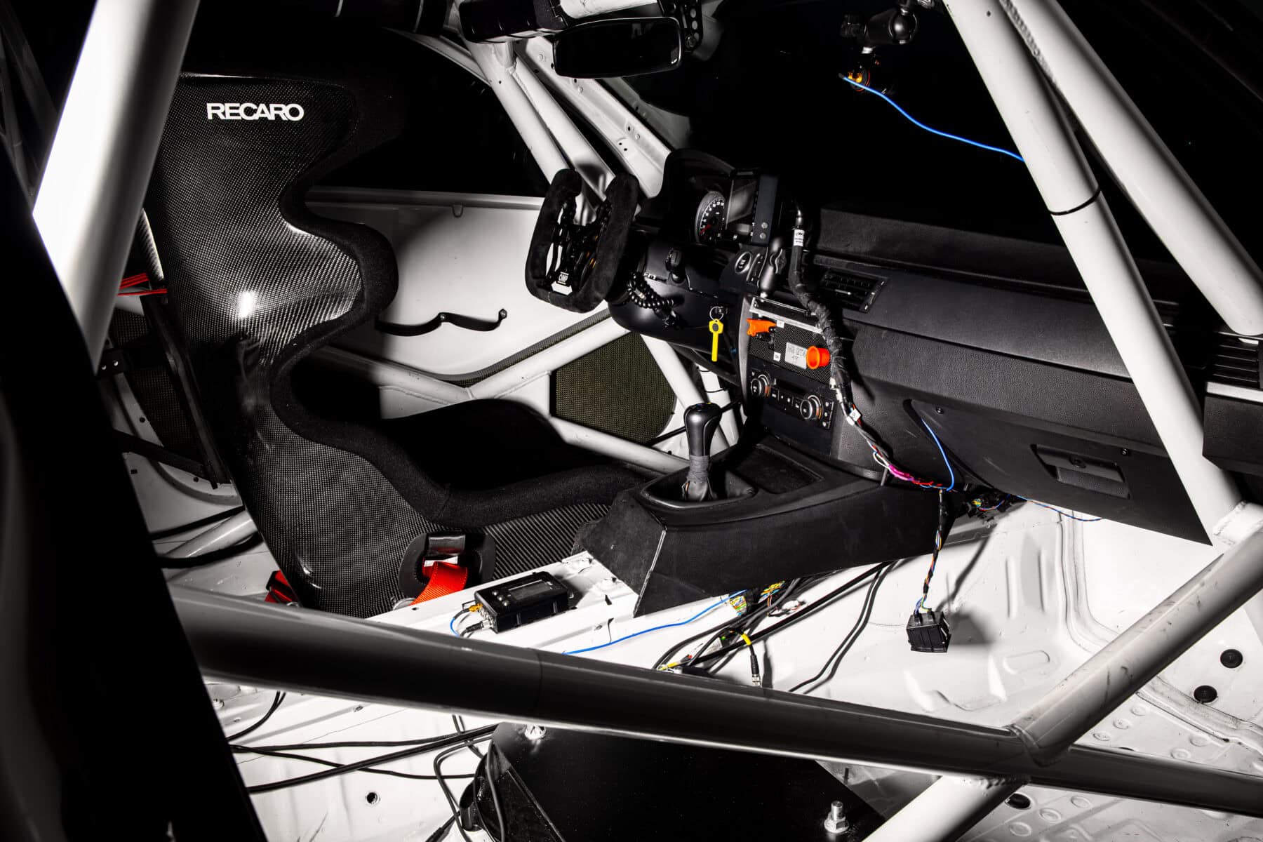BMW also fitted adjustable shocks, BBS wheels, and Makrolon side and rear windows to reduce weight. The welded roll cage and quick-release steering wheel are hard to miss. Other special features include an air jack system and a Recaro racing seat with a head and neck support (HANS) device.
