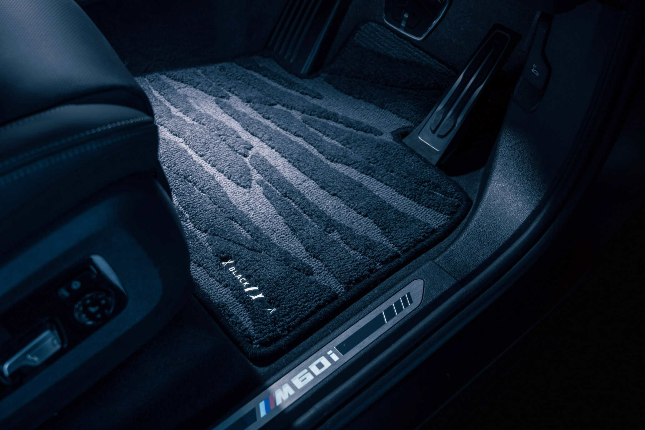 Other special touches include hand-made wool floor mats crafted from dyed yarn, featuring a BLACK-α logo also found on the dashboard and door projectors. On the outside, BMW Japan equips the xDrive40d with 22-inch Jet Black wheels, while the M60i gets a larger 23-inch set in the same finish. The M model’s mirror caps and rear badge also feature a glossy black treatment.