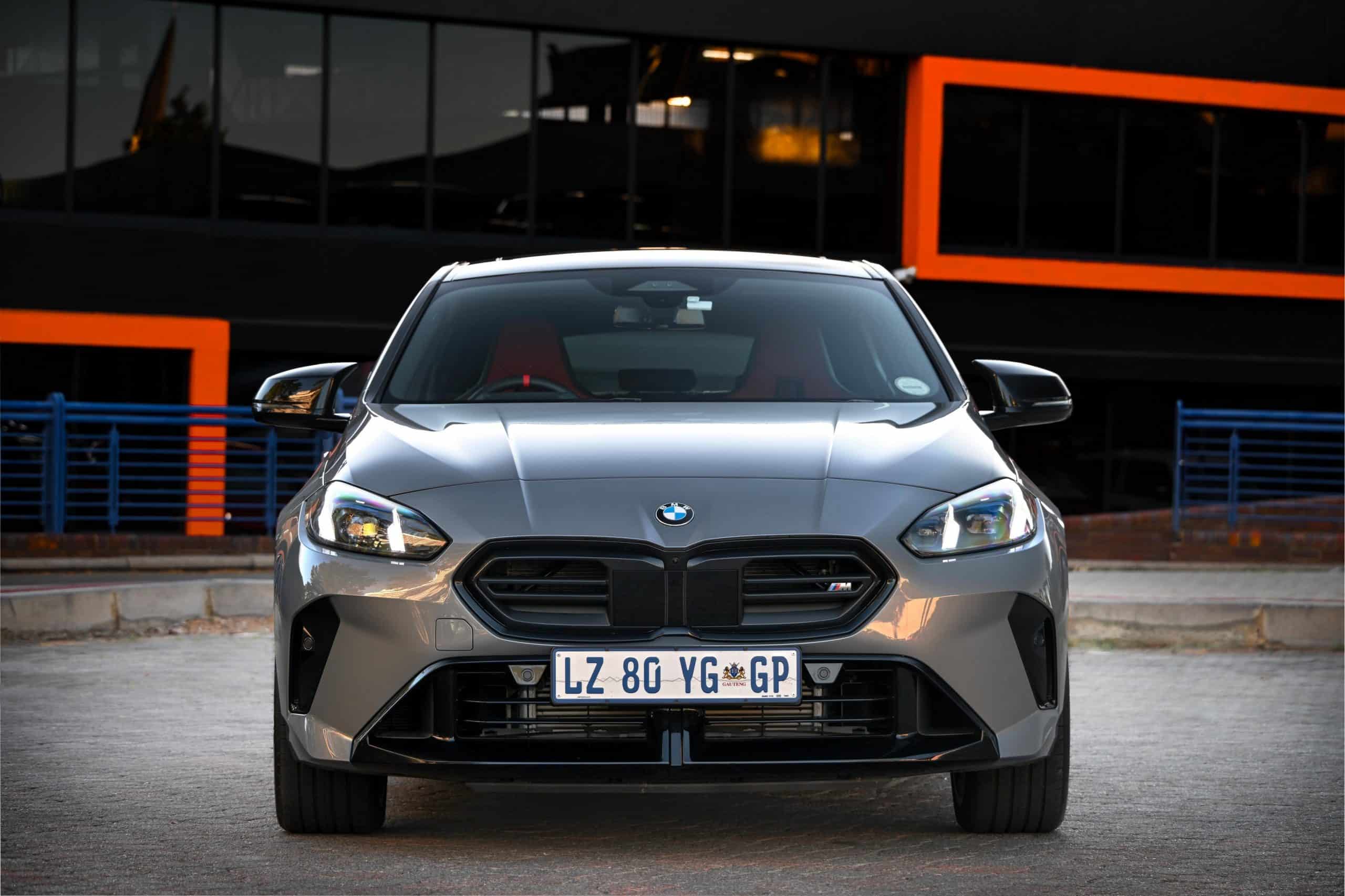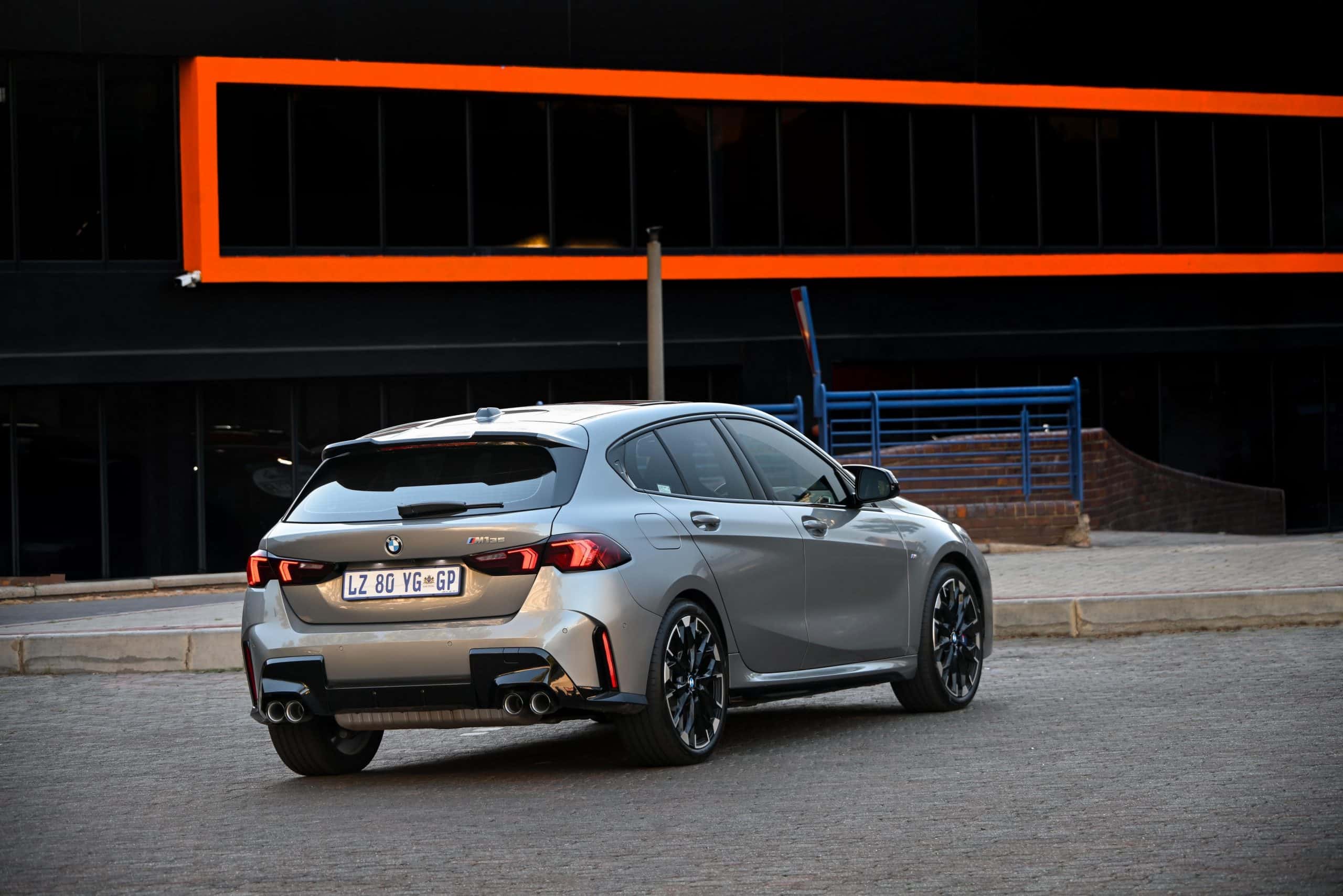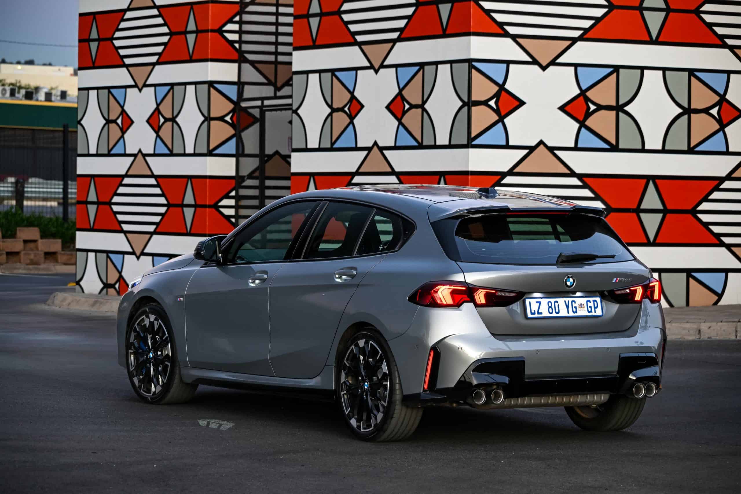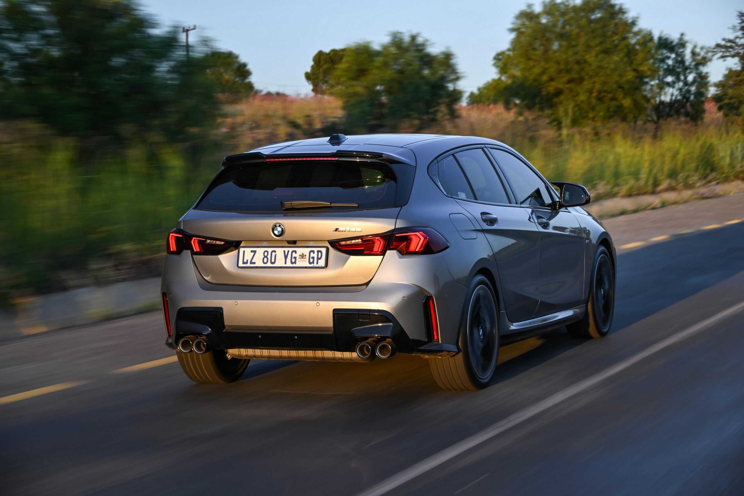 The right-hand-drive 1er shows off its Skyscraper Grey paint, one of several colors offered in South Africa. Those willing to splurge on customization can opt for Individual hues like Storm Bay or the matte Frozen Portimao Blue. BMW installed the optional 19-inch wheels to upgrade the standard 18-inch set, consequently making the M135 look more substantial.