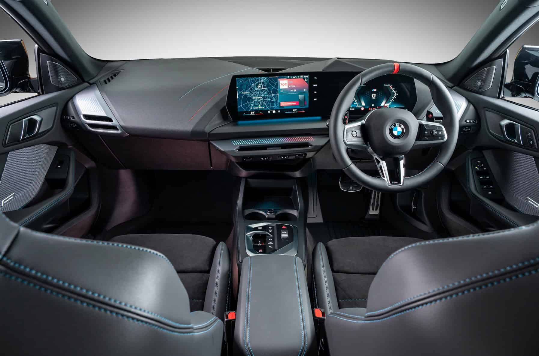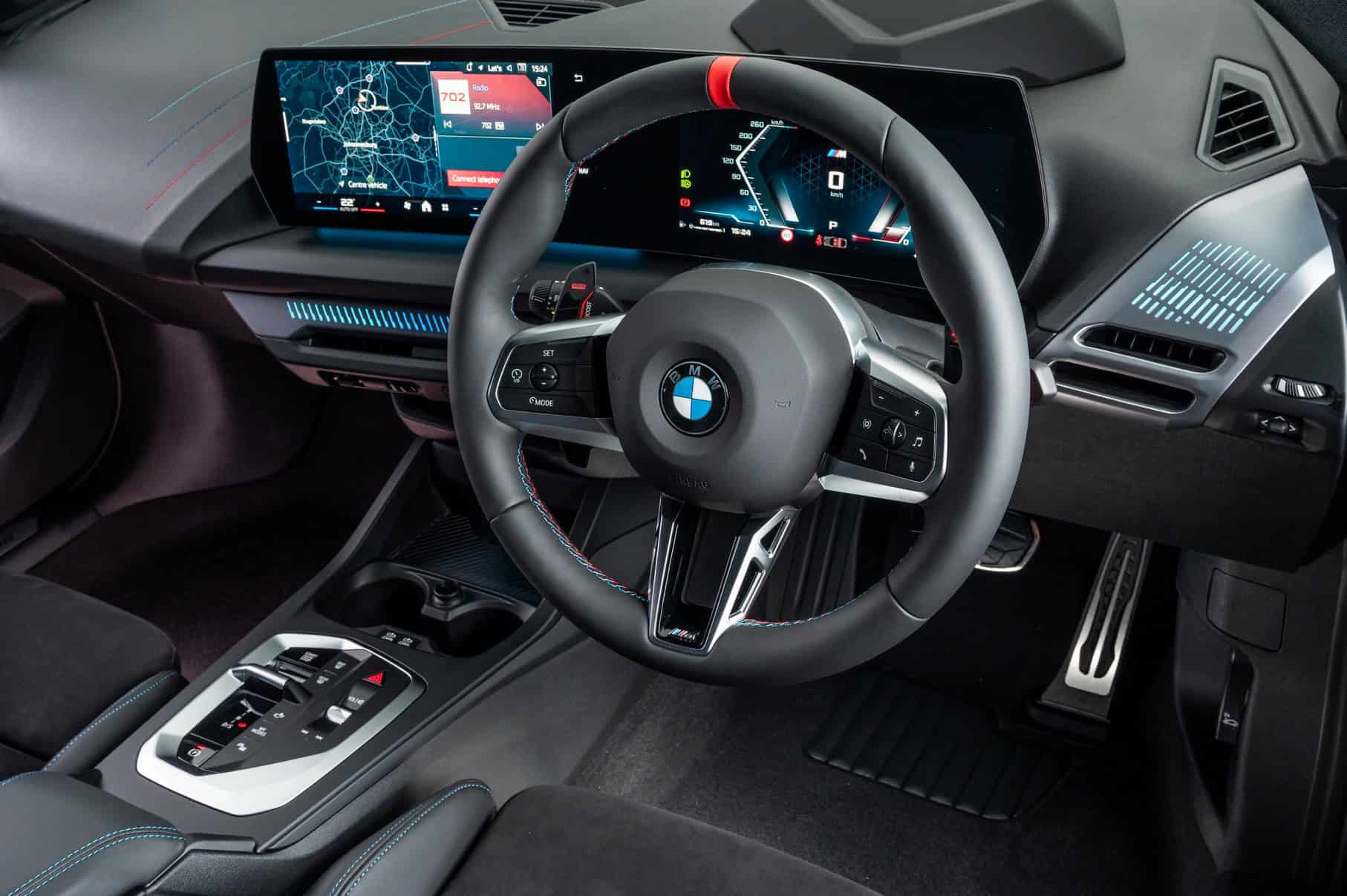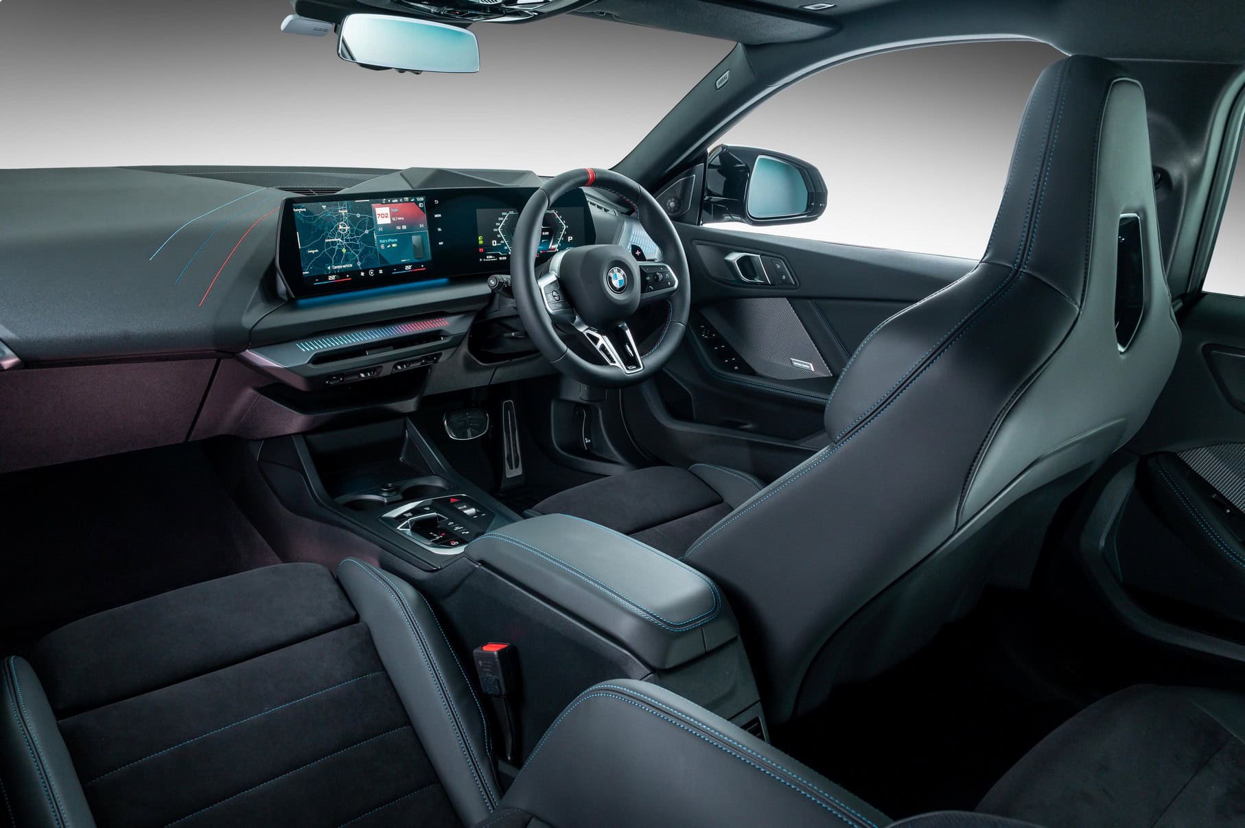 If you’re not a fan of the black Alcantara/Veganza interior, BMW offers a bolder red-and-black alternative in Sensatec (artificial leather). There’s still more plastic than we’d like to see, even in a 1 Series, but it is a 1 Series after all. BMW has confirmed that the iDrive knob is on its way out, and it’s already missing from several models. All of the latest compact cars have dropped it, and upcoming models won’t have it either.