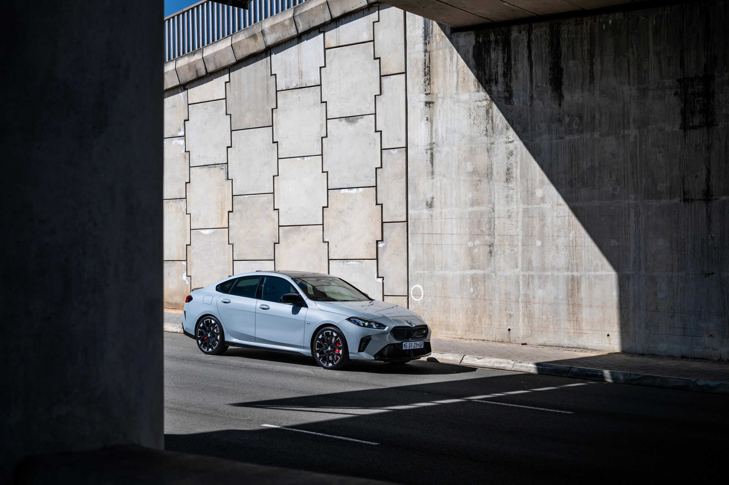 The M235 is one of the two gasoline-powered versions available in South Africa for the 2 Series Gran Coupe “F74.” BMW is showing off its M Performance sedan in Brooklyn Grey, equipped with optional 19-inch wheels. We also spot the M Sport Package Pro, featuring dark Shadowline accents and red brake calipers. Inside, the M Sport seats come with tri-color stitching on the seatbelts.