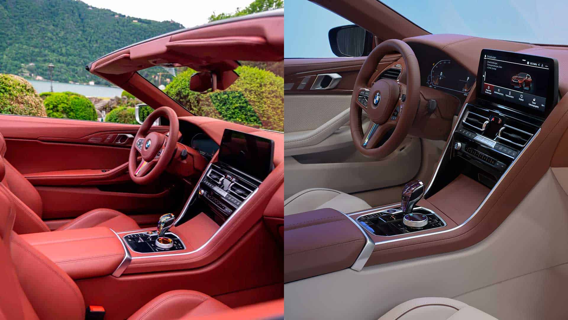 Both BMWs get iDrive 7 and a smaller, split screen setup that we sorely miss from some production models. Upholstery in the BMW Concept Speedtop is a two-tone brown and white, different from the single-color brown we saw in the Skytop Concept. The Concept Speedtop opts for white — a bold choice — for the floormats, door cards, seats, and lower half of the center console. The Speedtop also has cool accent lighting inside that mirrors the roof split design. It likely goes without saying, but the Speedtop will have a bit more cabin space behind the driver and passenger than the open-top model. The leather-covered trunk and bespoke storage areas — designed to fit specific, Schedoni-crafted leather luggage — are also unique to Speedtop.
