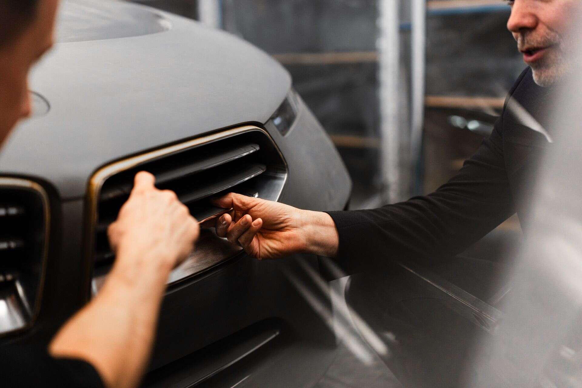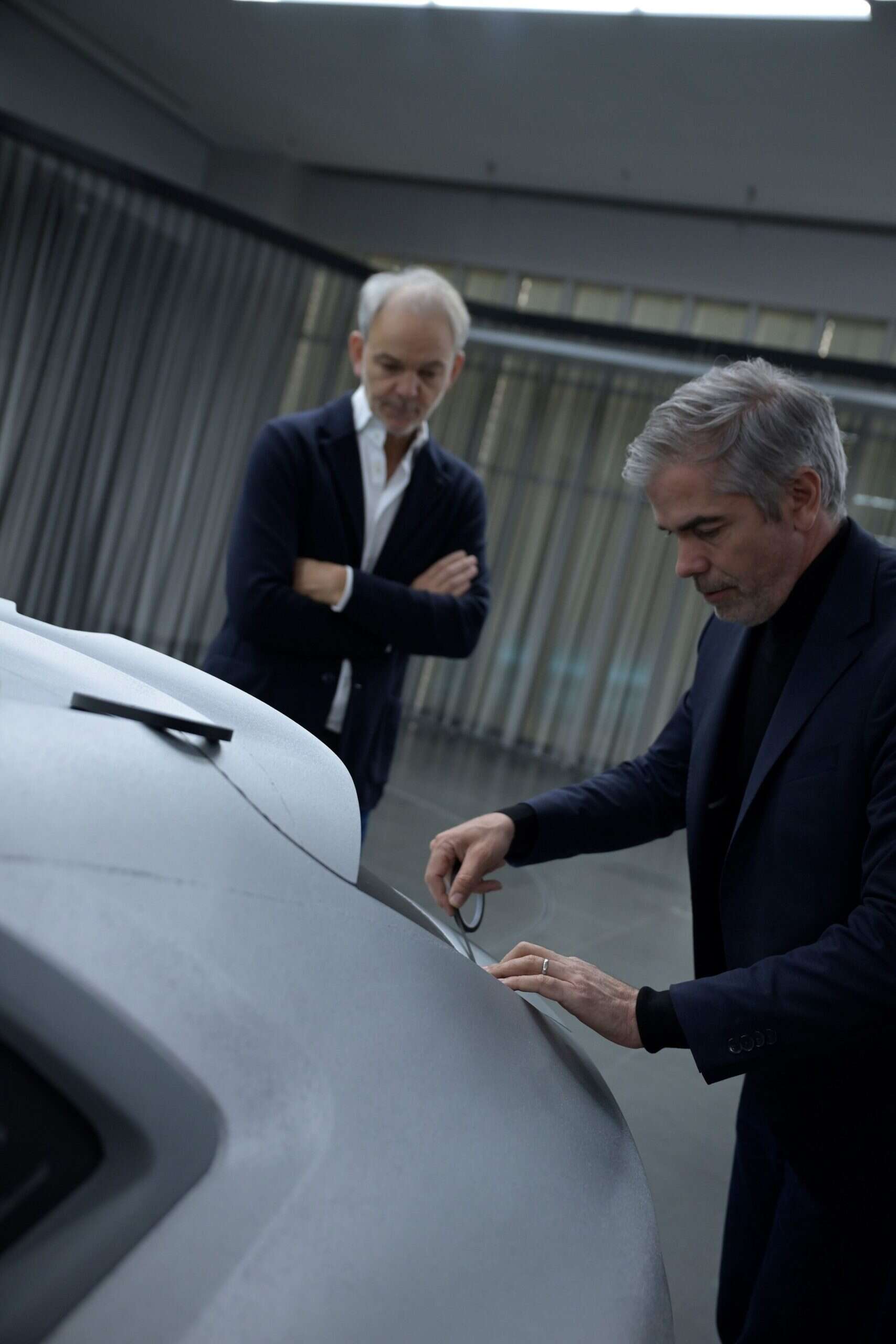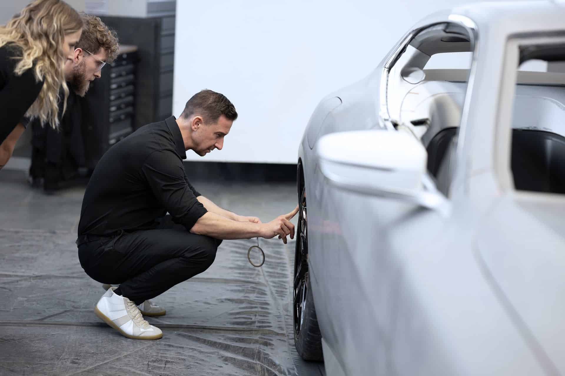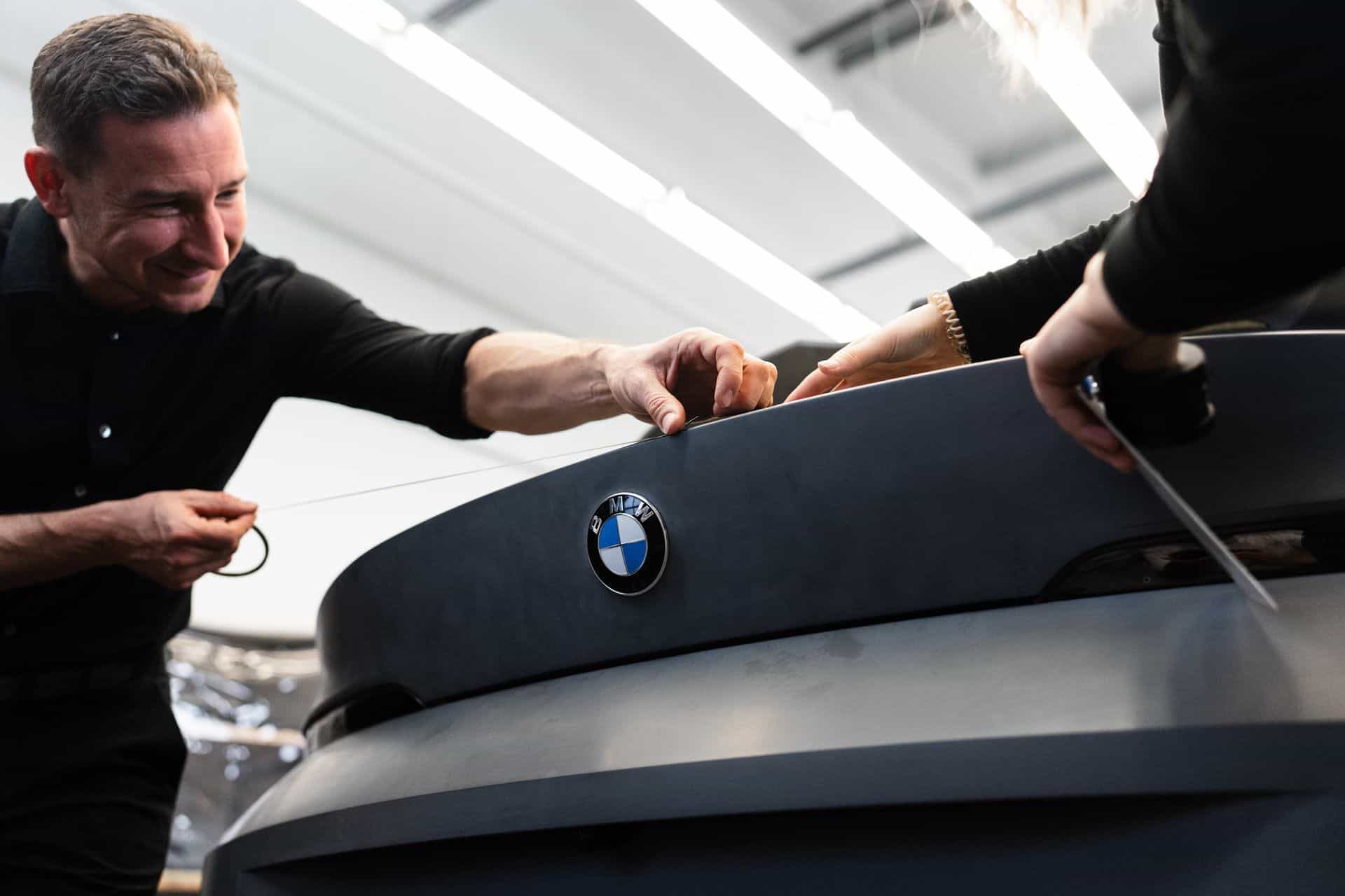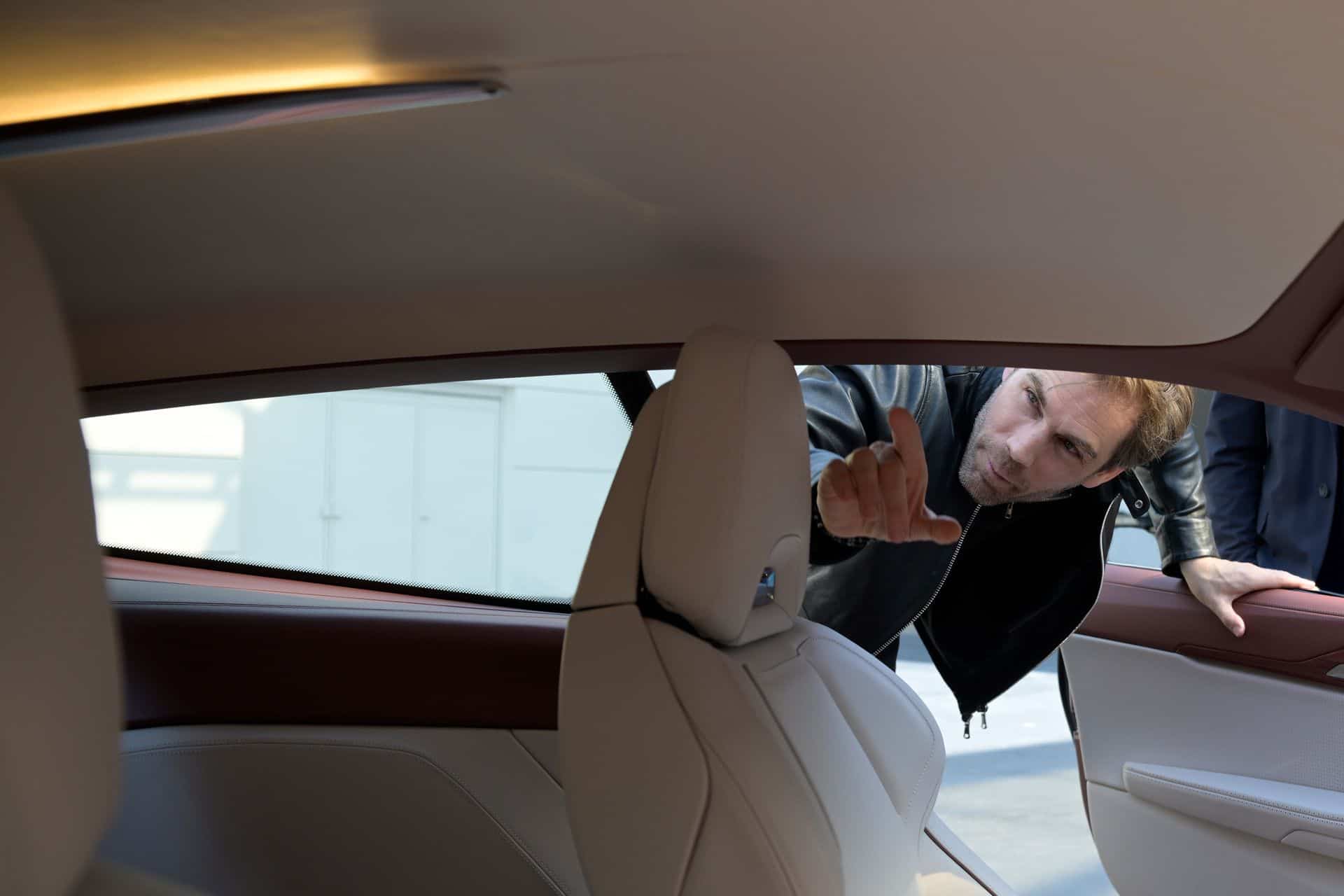 The gently sloping roofline ends with a reasonably large spoiler atop the tailgate, replacing the Skytop’s less practical trunk lid. These special BMWs are also the first to eliminate conventional door handles. They’re no longer where you’d expect them to be after the designers and engineers neatly integrated them into the door shoulders. Tiny winglets, finished in chrome here to match the beltline, will appear on future series production models. We believe the next X5 (G65) will feature them in 2026, followed about a year later by the X7 (G67). Prototypes of both SUVs have already been spotted with the small winglets on all doors.