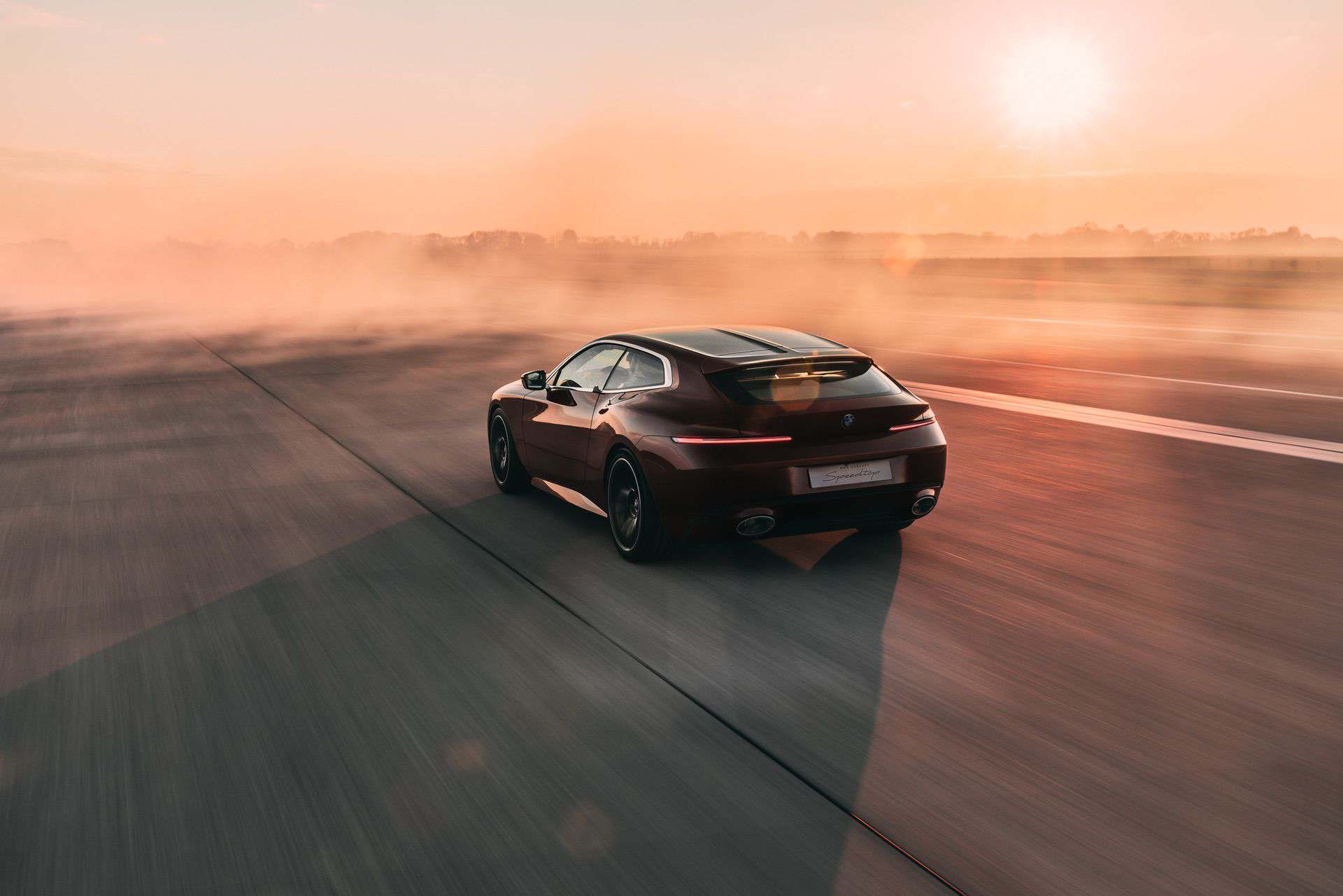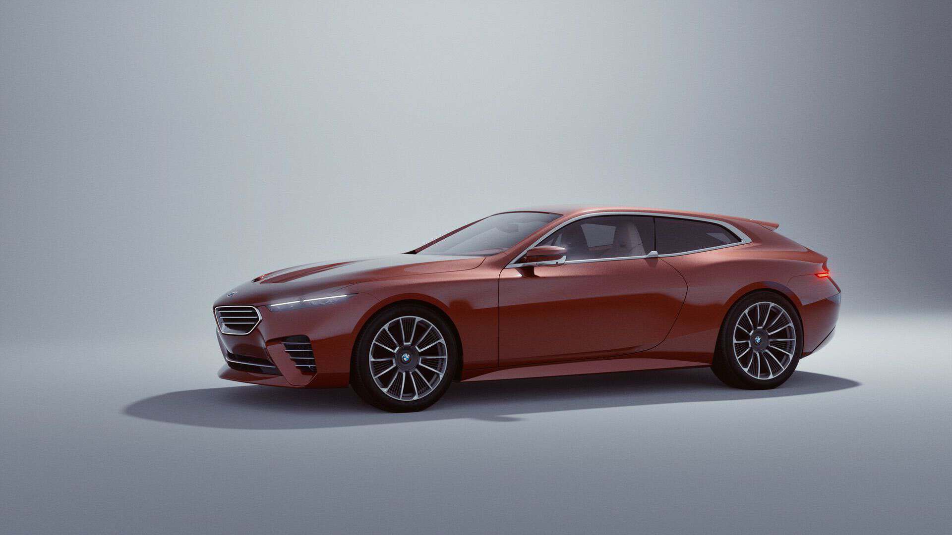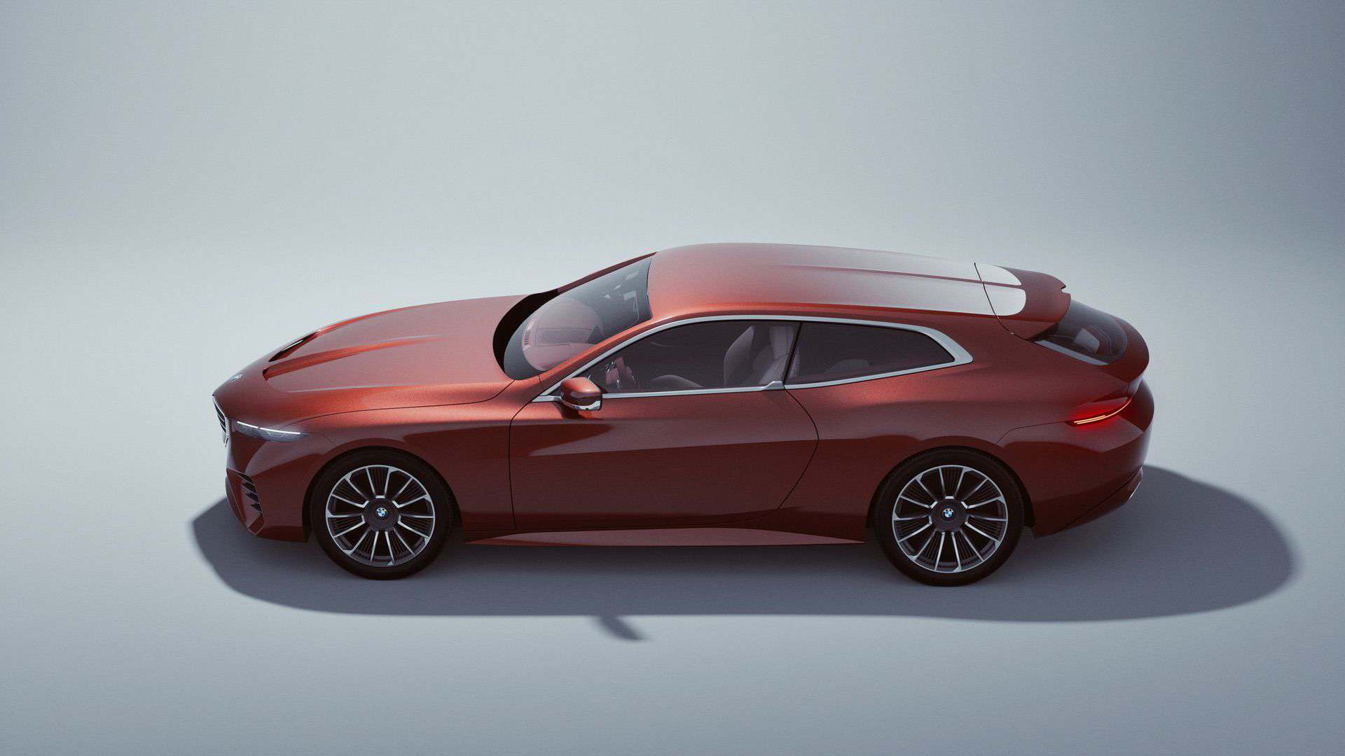 The Speedtop builds upon an already special car: the Skytop. BMW deleted the removable targa panels to install a fixed roof bisected by a prominent central ridge. Much like last year’s convertible, the follow-up wagon uses a color gradient to make an even bigger visual impact. The new roof transitions from Floating Sunset Maroon to Floating Sundown Silver. It’s immediately apparent that the designers retained some of the Skytop’s best elements, such as the shark nose and slim headlights. But from the A-pillars back, the body is entirely new.